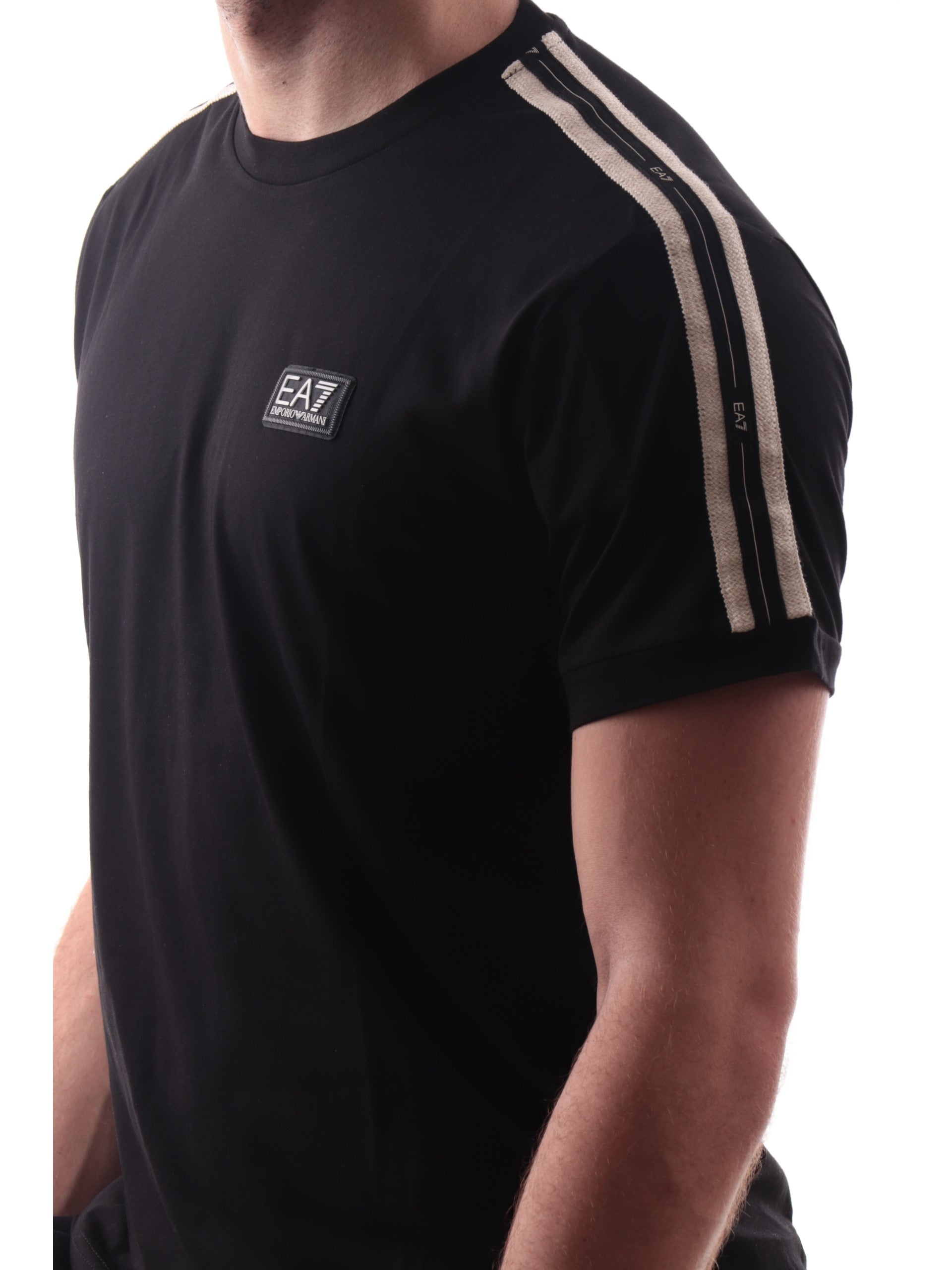 T-shirt Emporio Armani EA7 nera da uomo con bande logate 7M000956AF10375