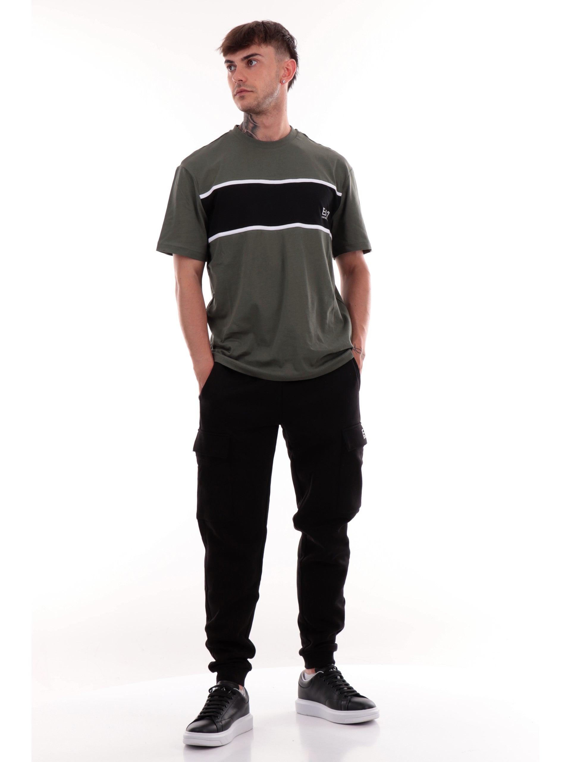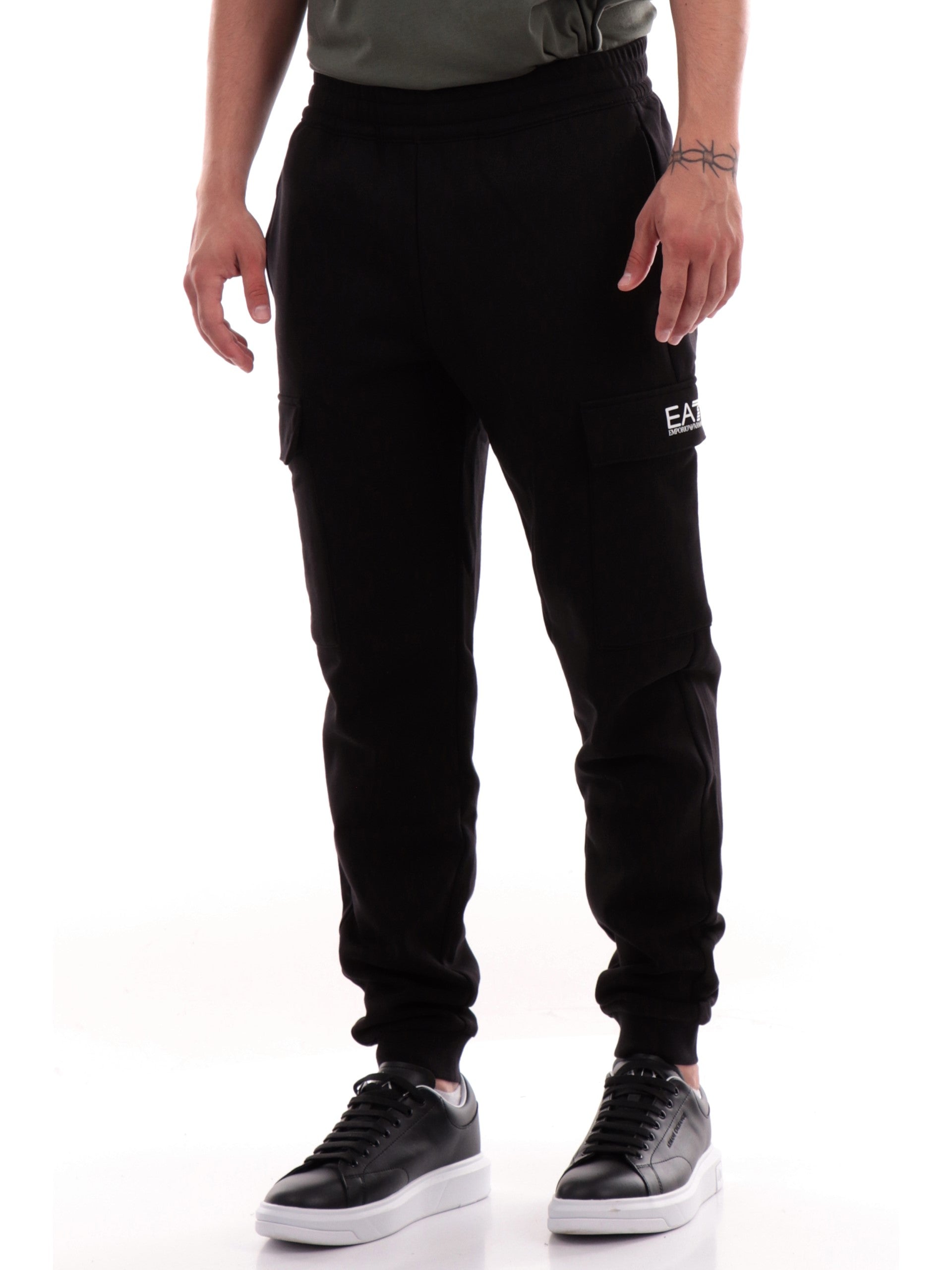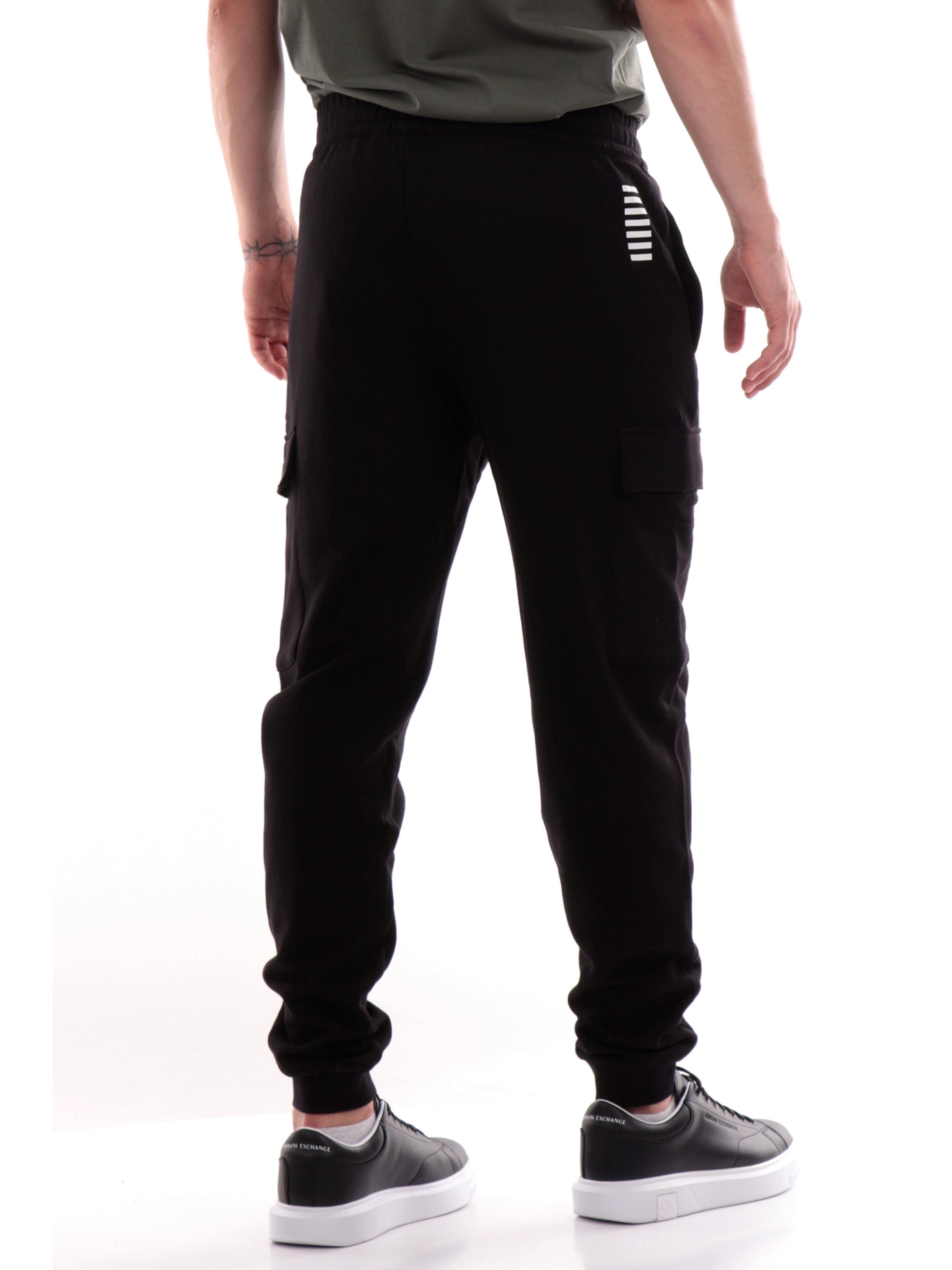 Pantaloni tuta cargo Emporio Armani EA7 neri da uomo con tasconi altezza ginocchio 8NPP68PJVTZ