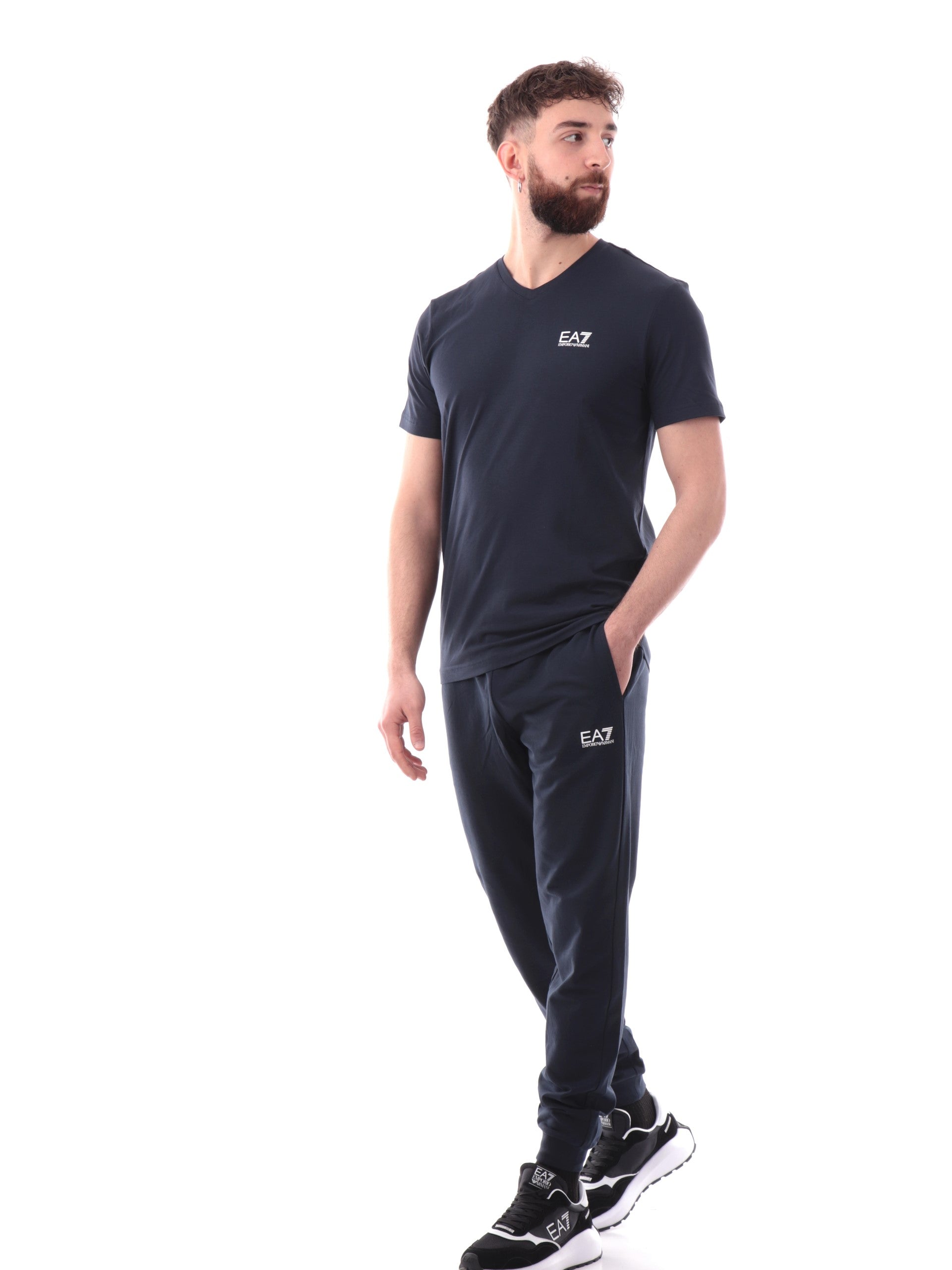 Pantaloni tuta Emporio Armani EA7 blu da uomo logo bianco 8NPP66PJVRZ