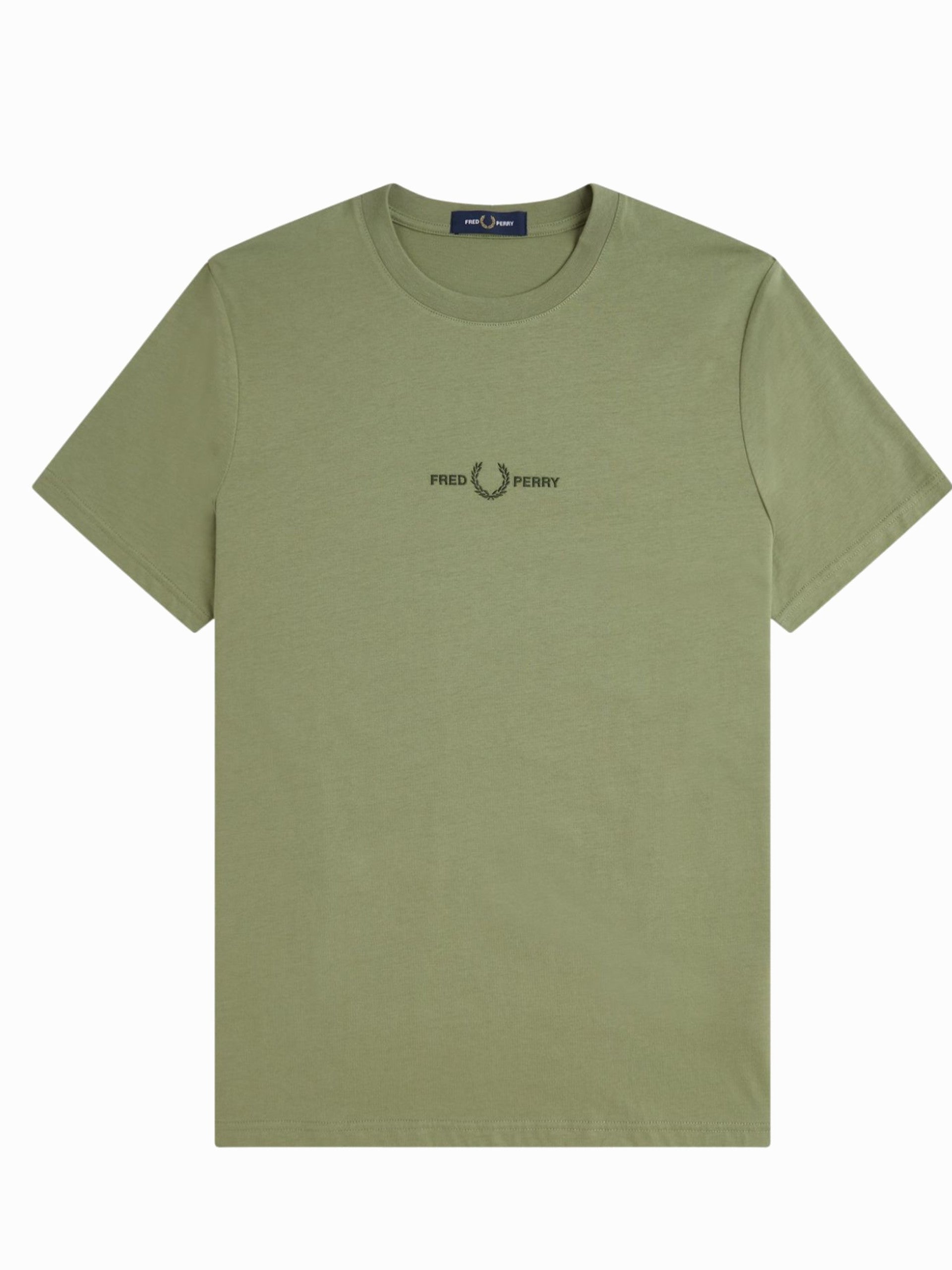 T-shirt Fred Perry verde da uomo con logo ricamato M4580