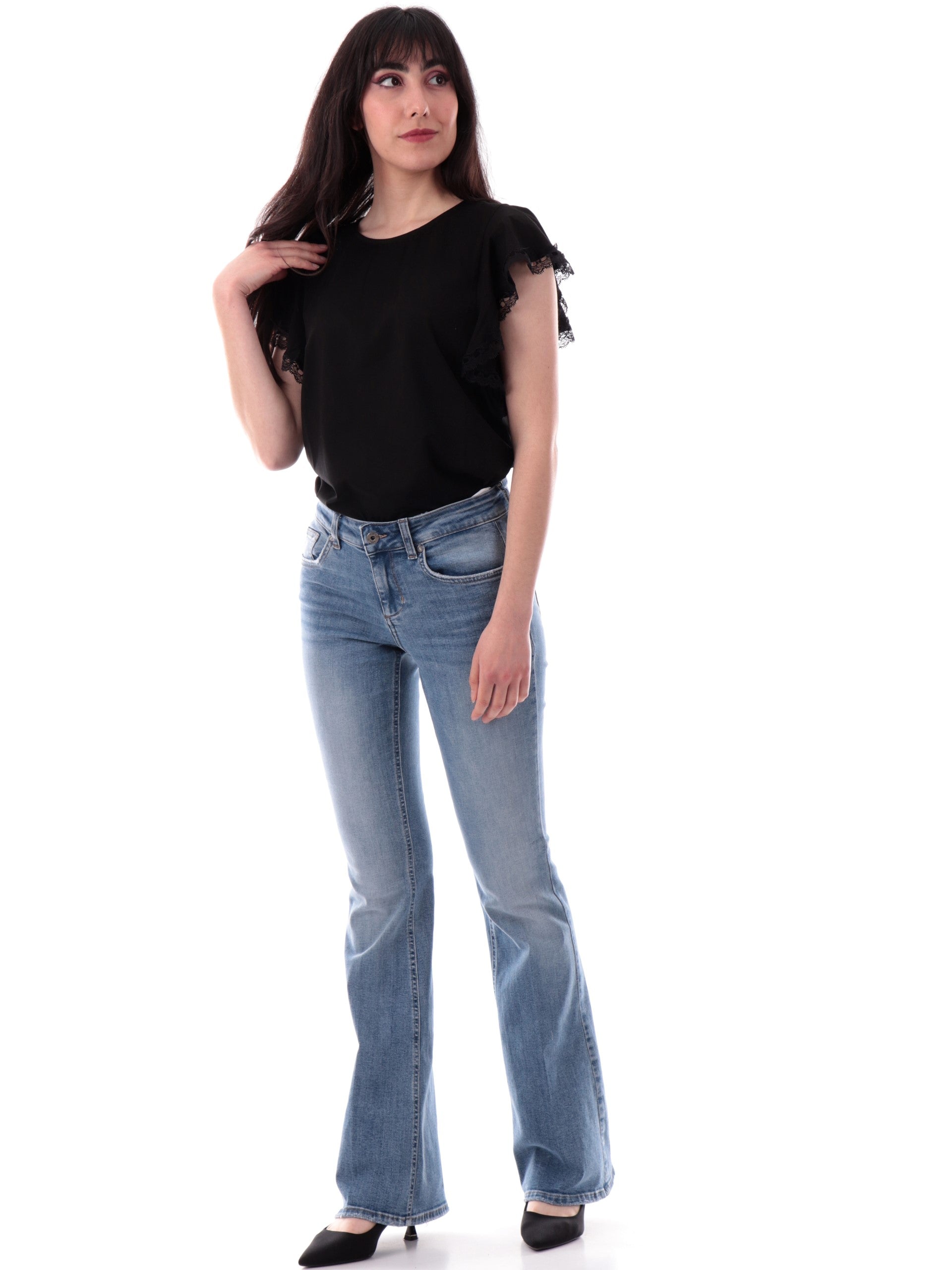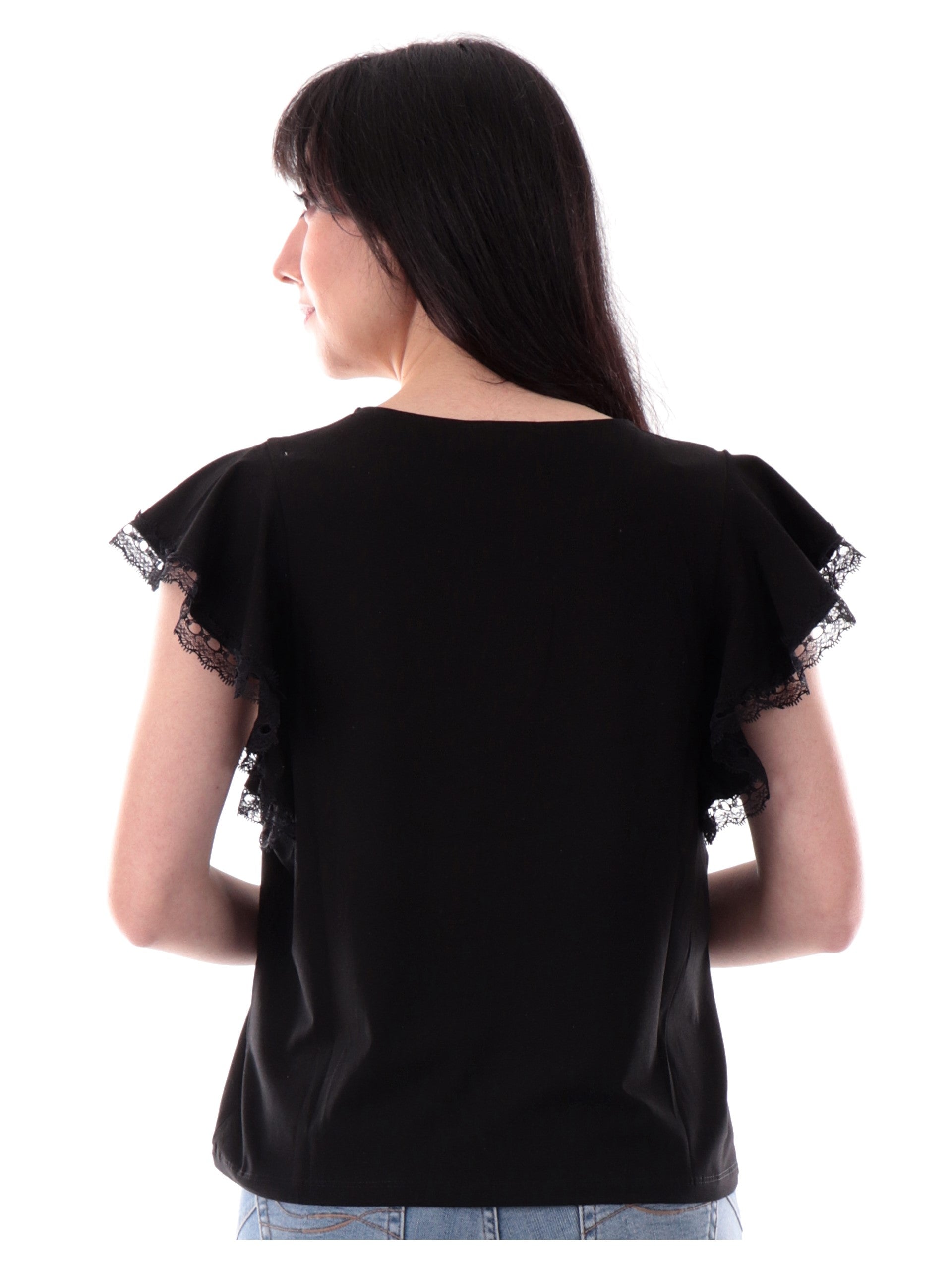 Maglia Molly Bracken nera da donna maniche con balze T2017DP
