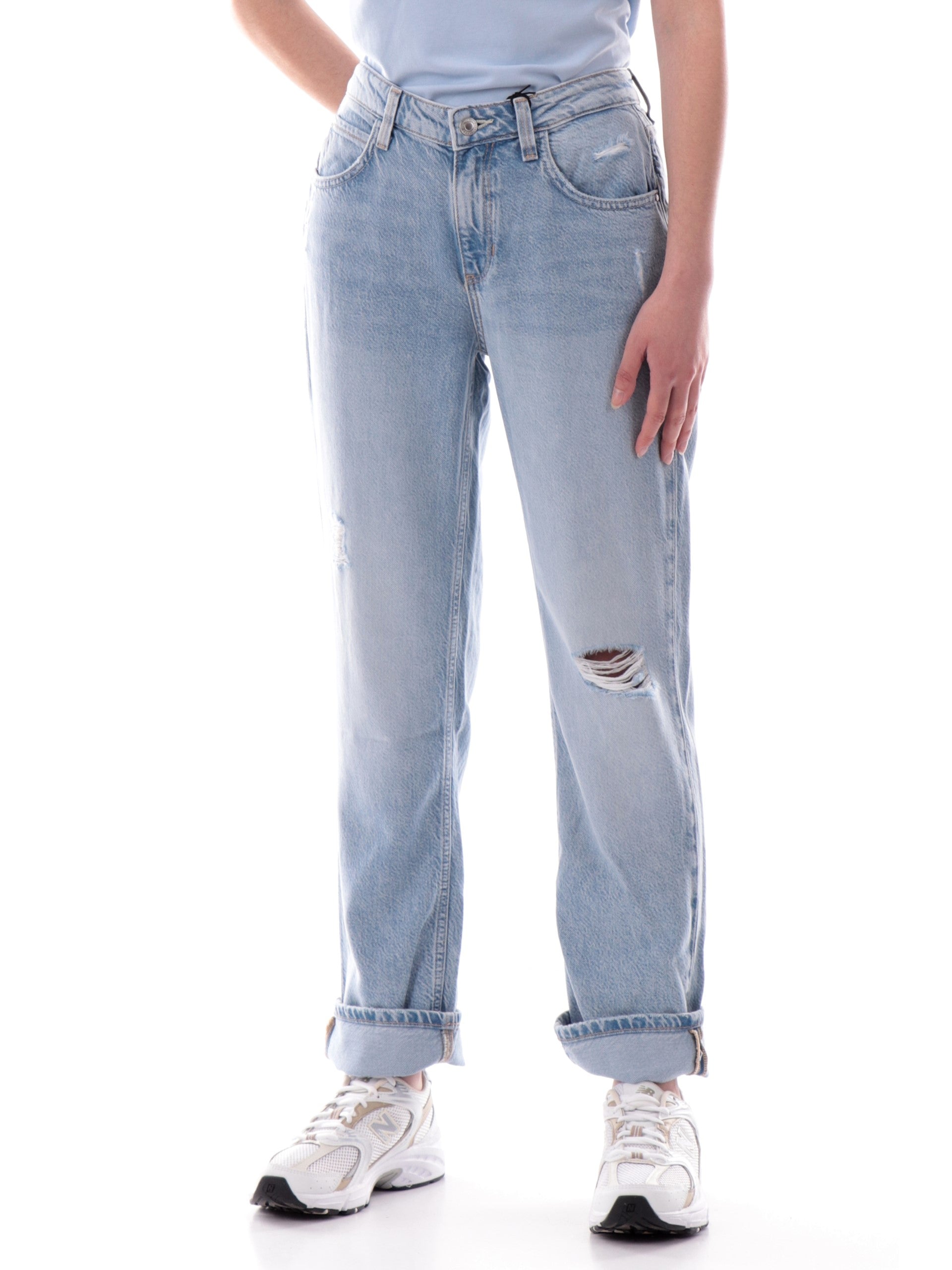 Jeans Guess Celia Boyfriend strappati da donna W5GA0QD5B96. Questi pantaloni jeans Guess blu hanno la chiusura con bottone logato più zip, cinque comode tasche, strappi decorativi e la vestibilità morbida.