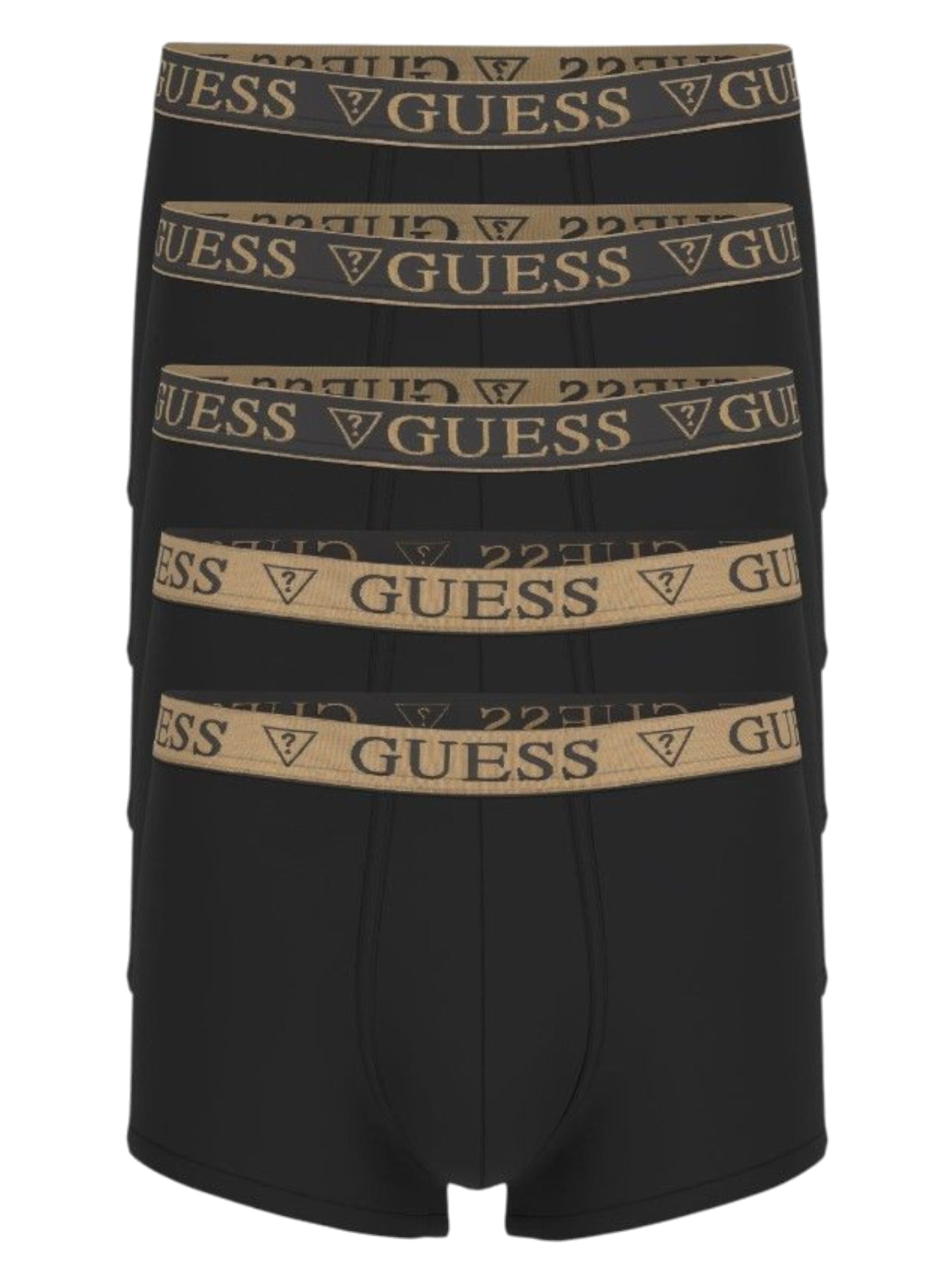 Set boxer Guess neri da uomo x5 Trunk. Queste mutande Guess nere hanno la banda elastica sul punto vita con logo Guess a contrasto colore e sono state realizzate in morbido cotone, che garantisce il massimo comfort durante tutta la giornata.
