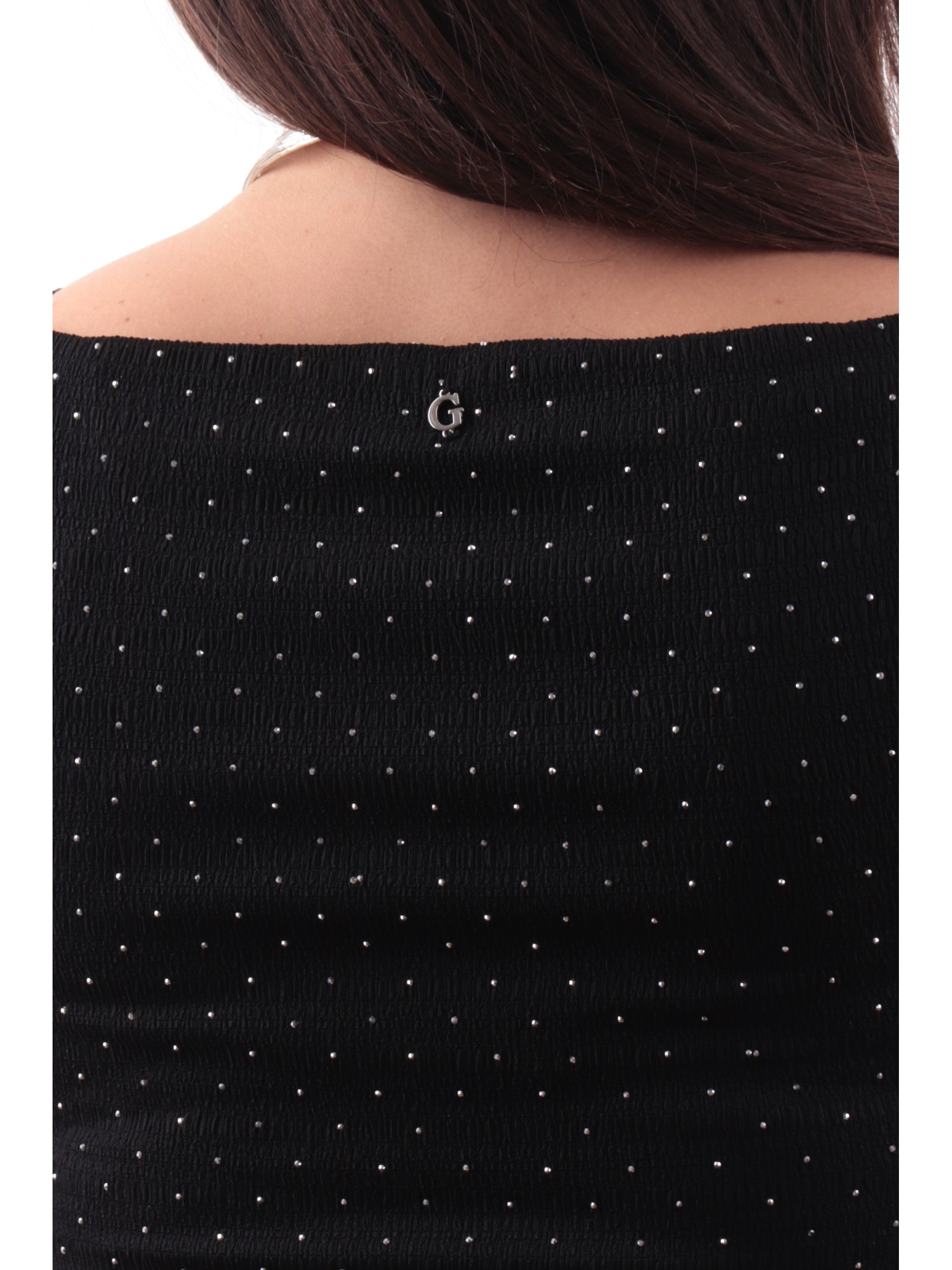 Vestito Guess nero da donna Smock Hotfix Dress con strass all over W6GKA1K3488JBLK