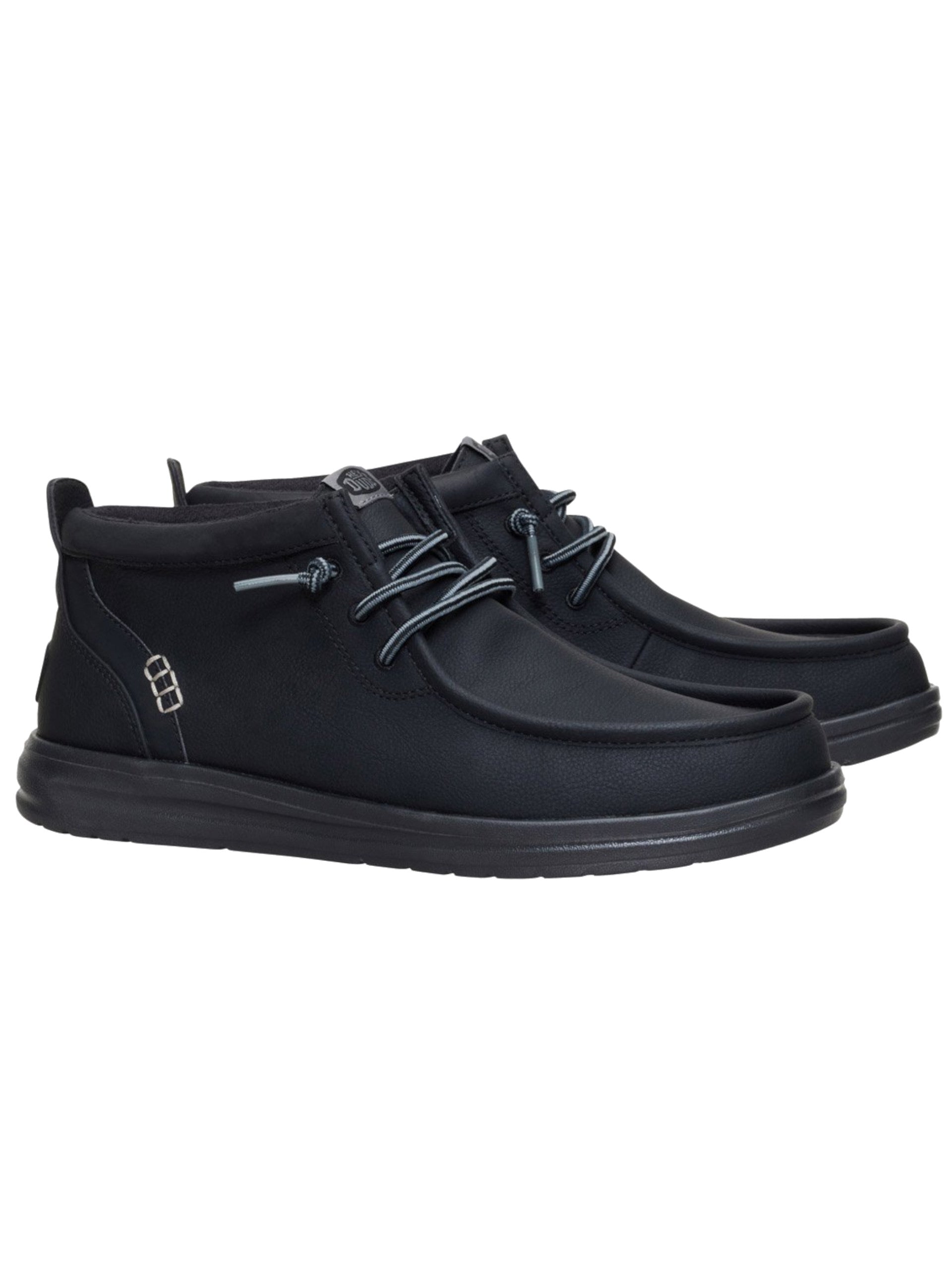 Scarpe Hey Dude nere Wally Mid Gripr Classic da uomo 42051. Queste scarpe Hey Dude nere hanno la tomaia realizzata in ecopelle, la suola in gomma e la soletta in schiuma rimovibile. Sul davanti di queste Hey Dude troviamo la calzata easy-on con lacci e il logo del brand ricamato sulla zona tallonare. Questi mocassini Hey Dude sono perfetti per ogni occasione.