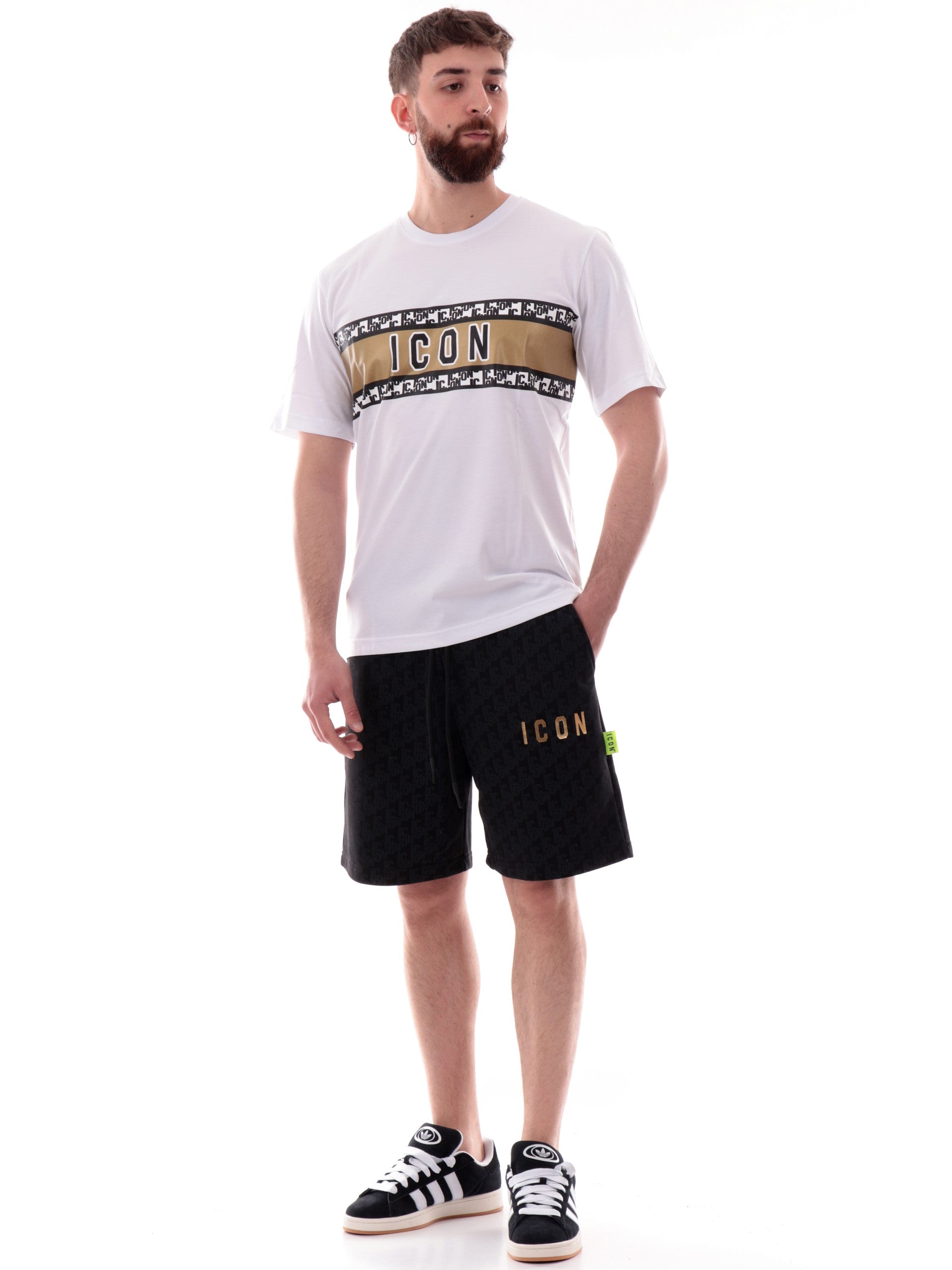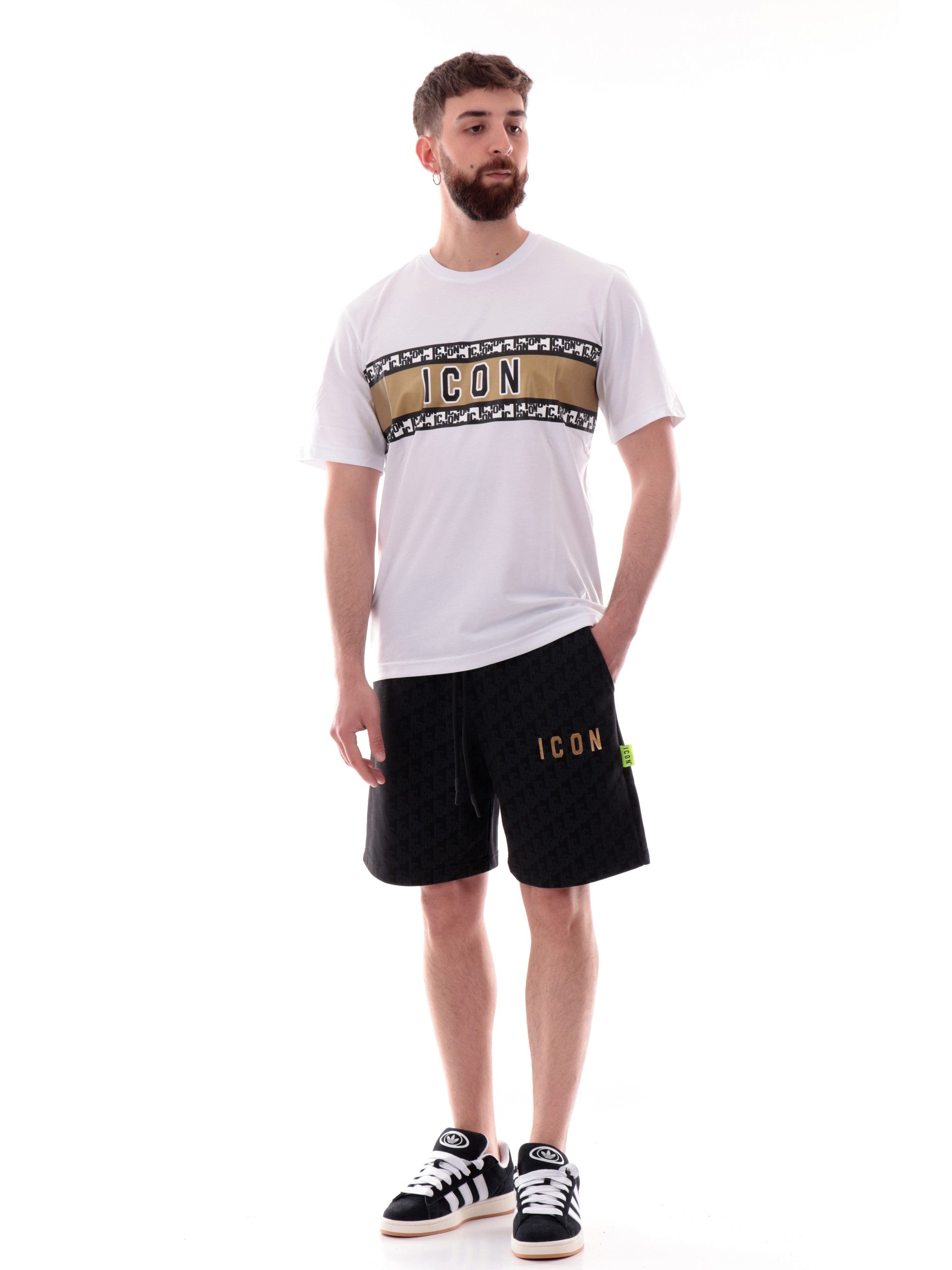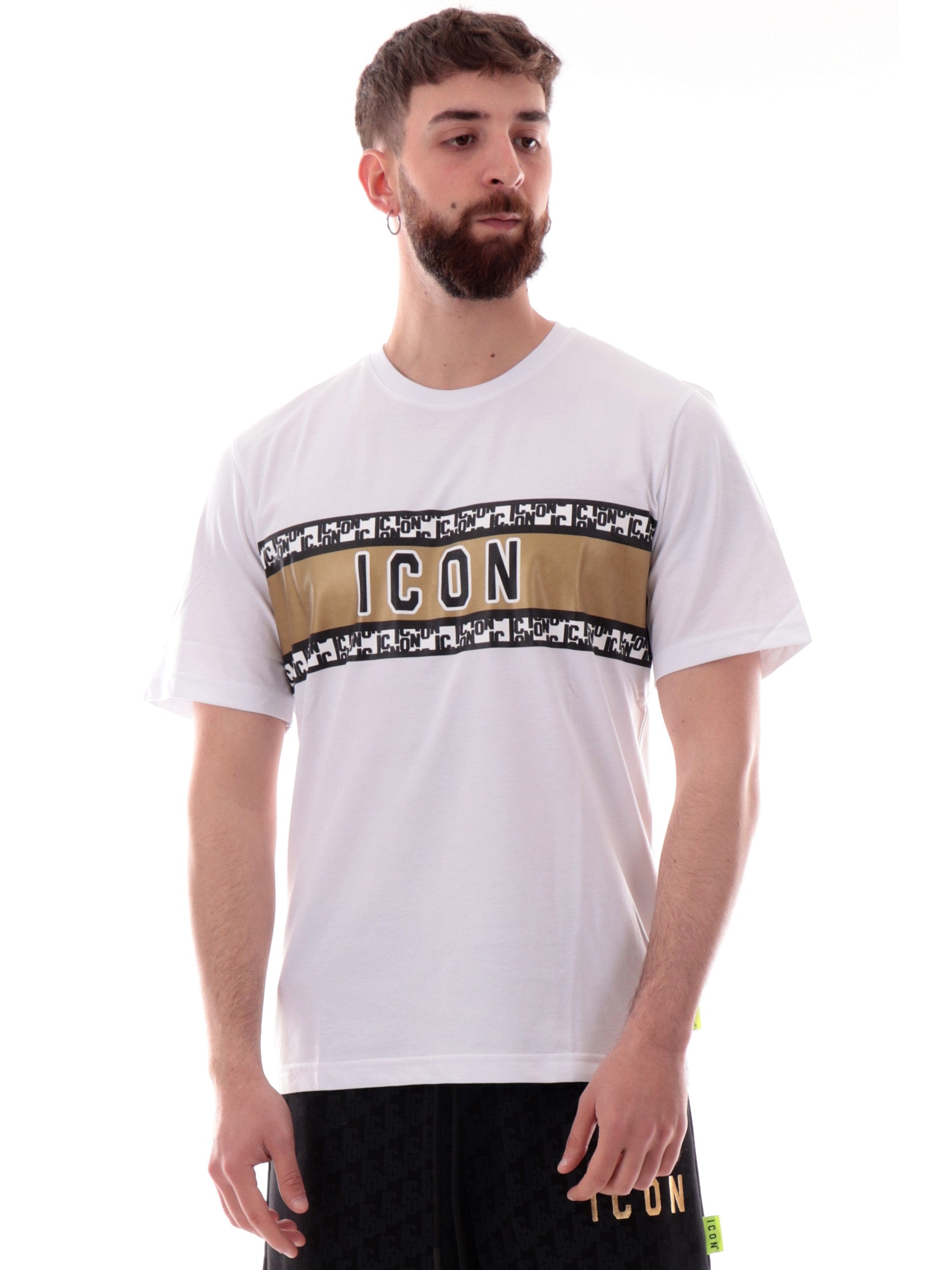 T-shirt Icon bianca da uomo Logo Icon a fascia oro e nera ICUS2S5T051 BIAN