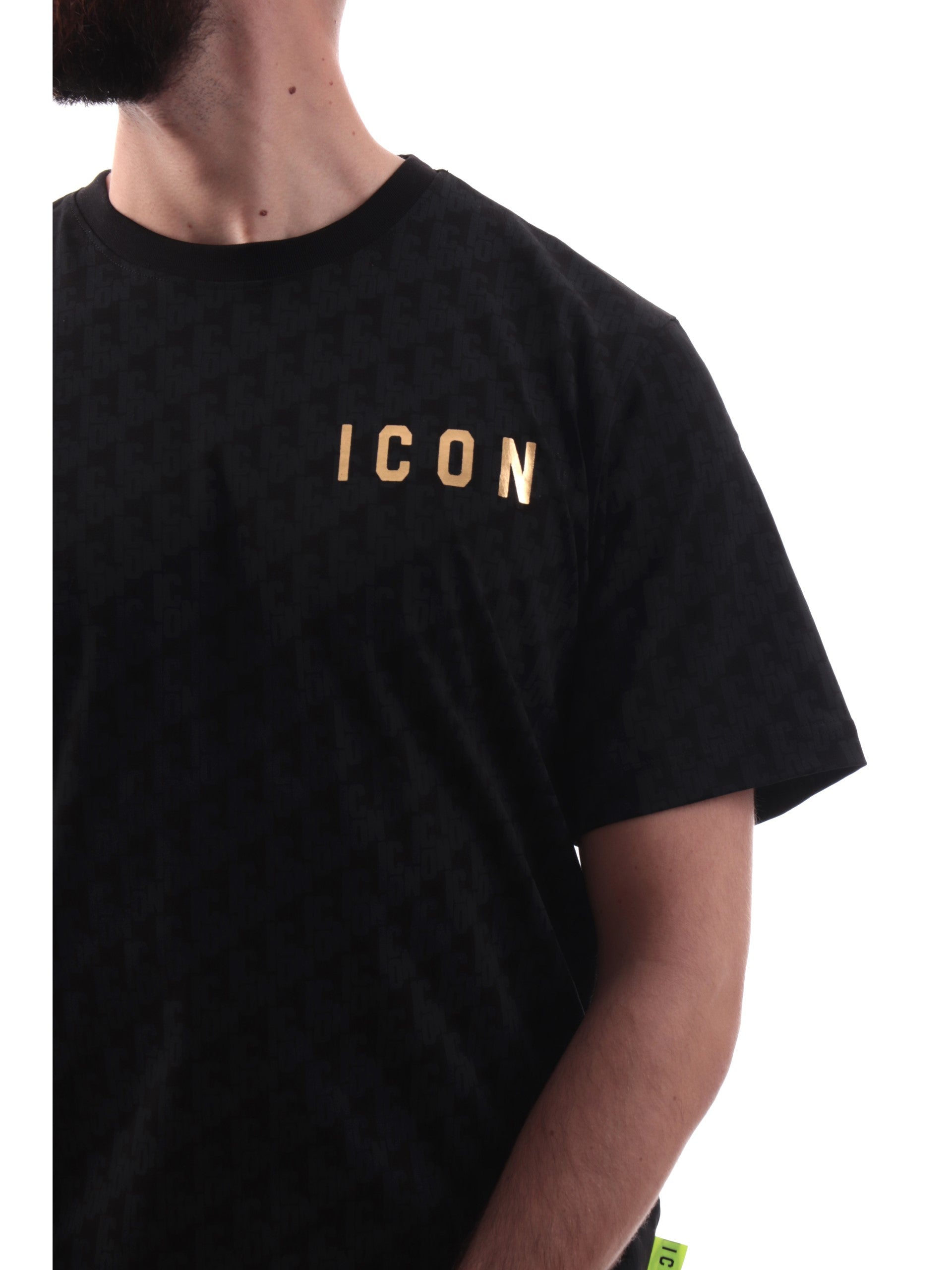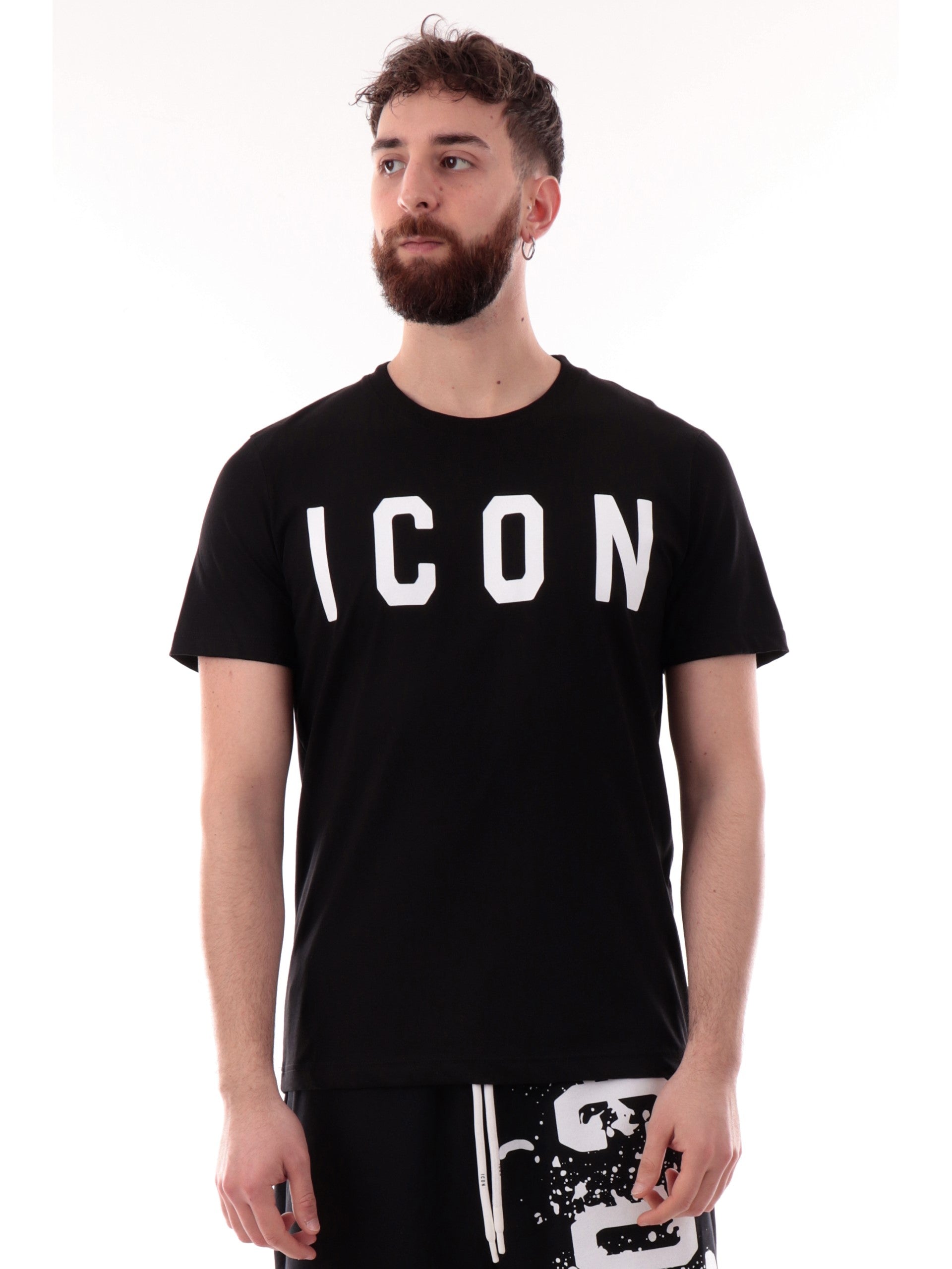 T-shirt Icon Nera da uomo Logo Icon bianco Maxi ICUS2S5T063