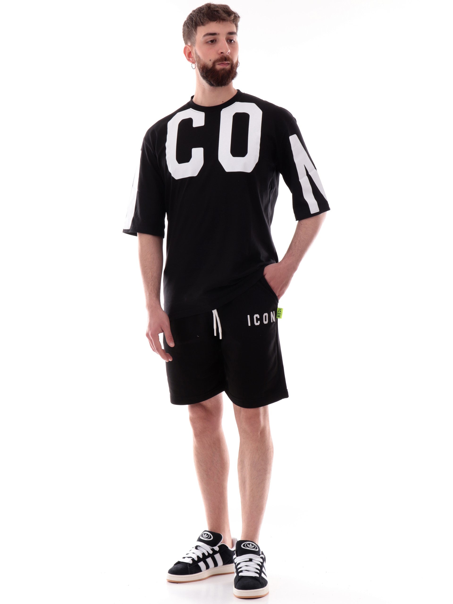 Bermuda Pantaloncini Icon neri da uomo logo piccolo bianco ICUS2S5B002-NERO