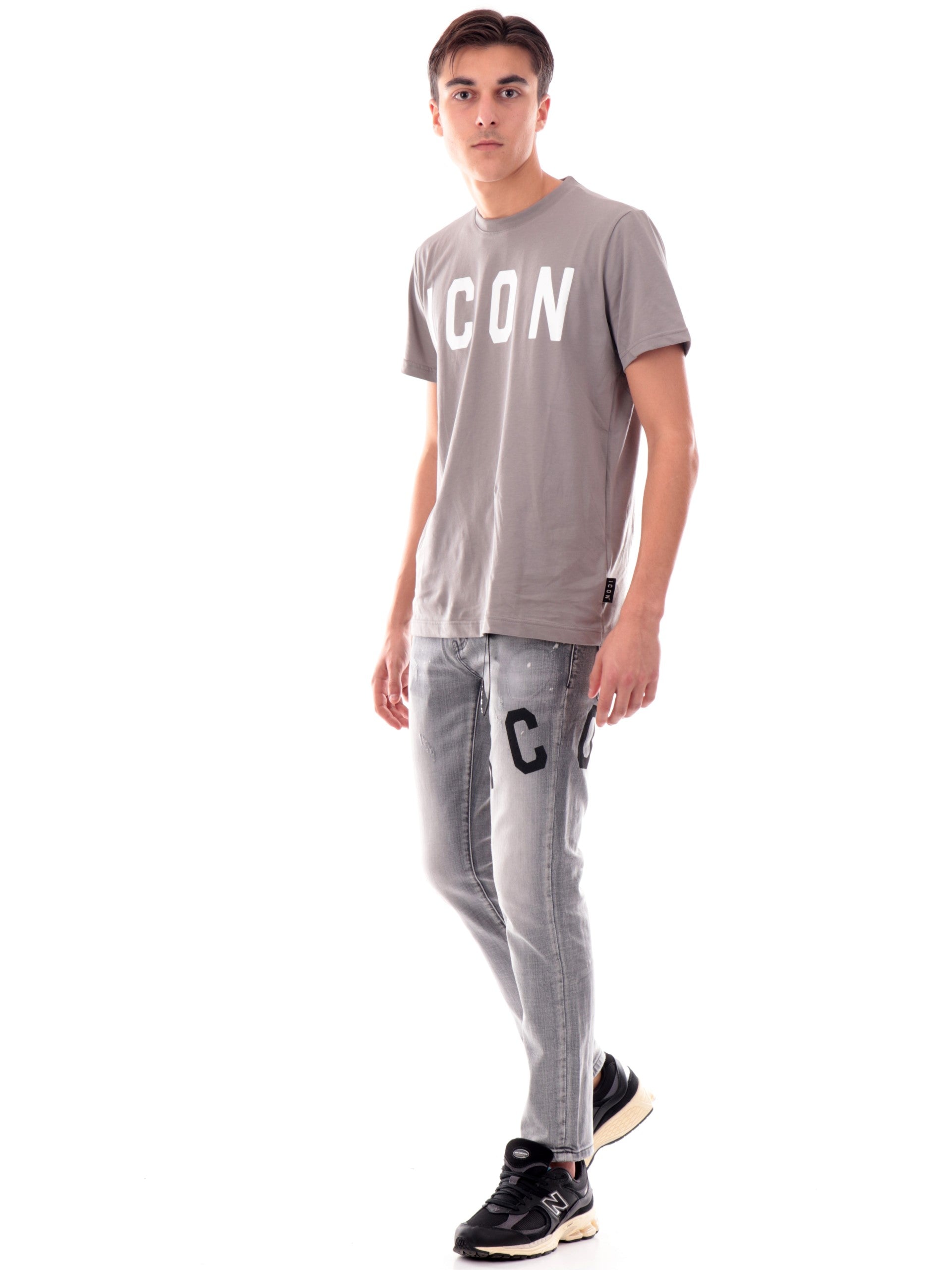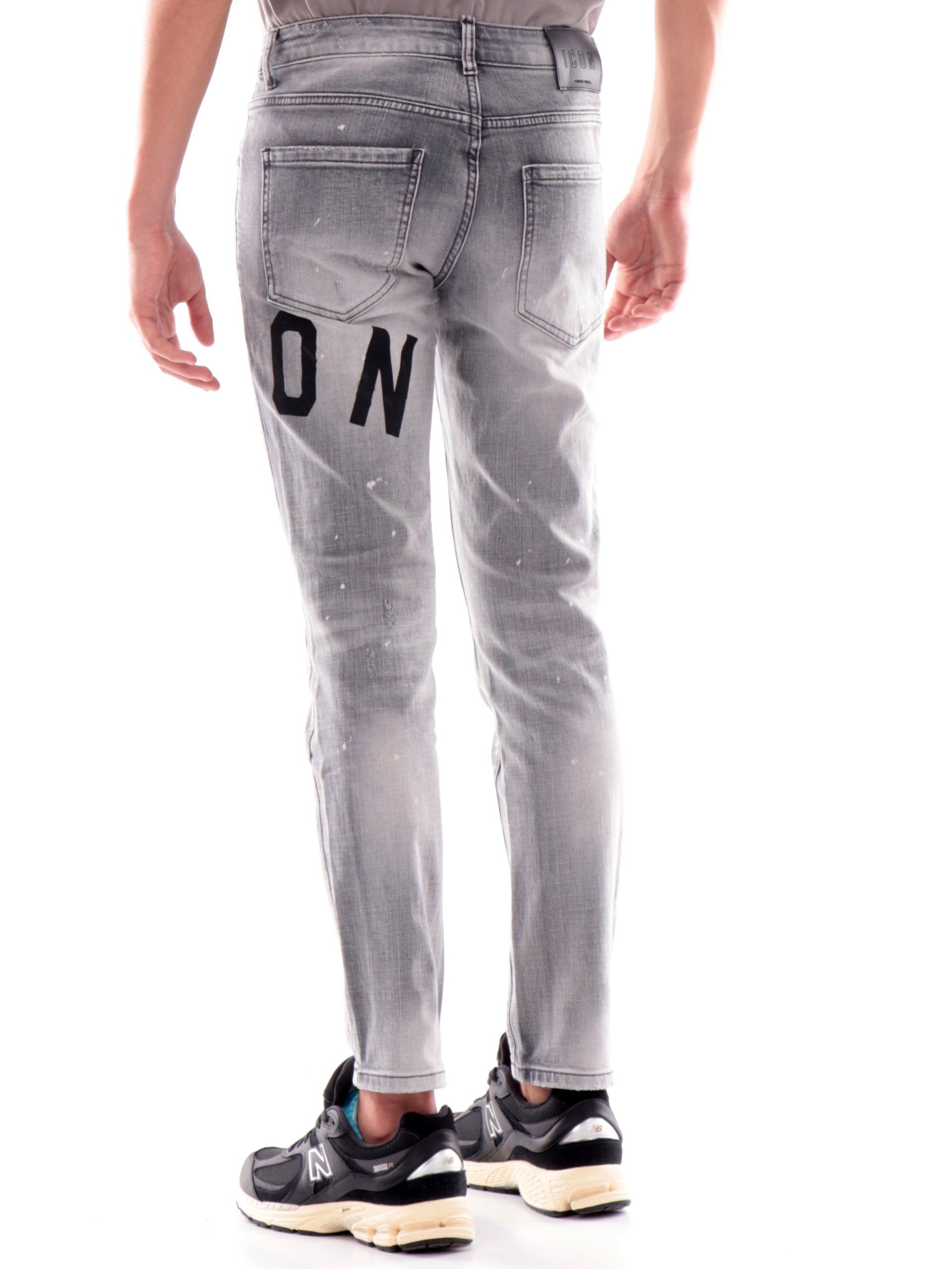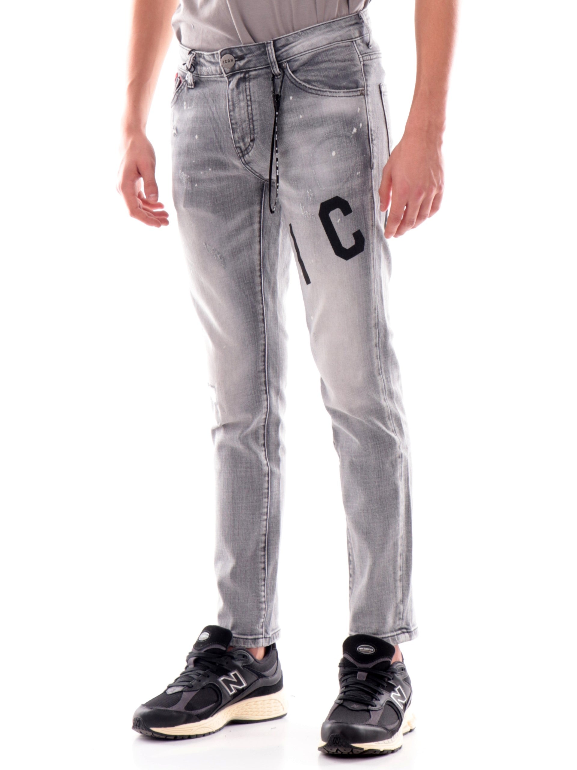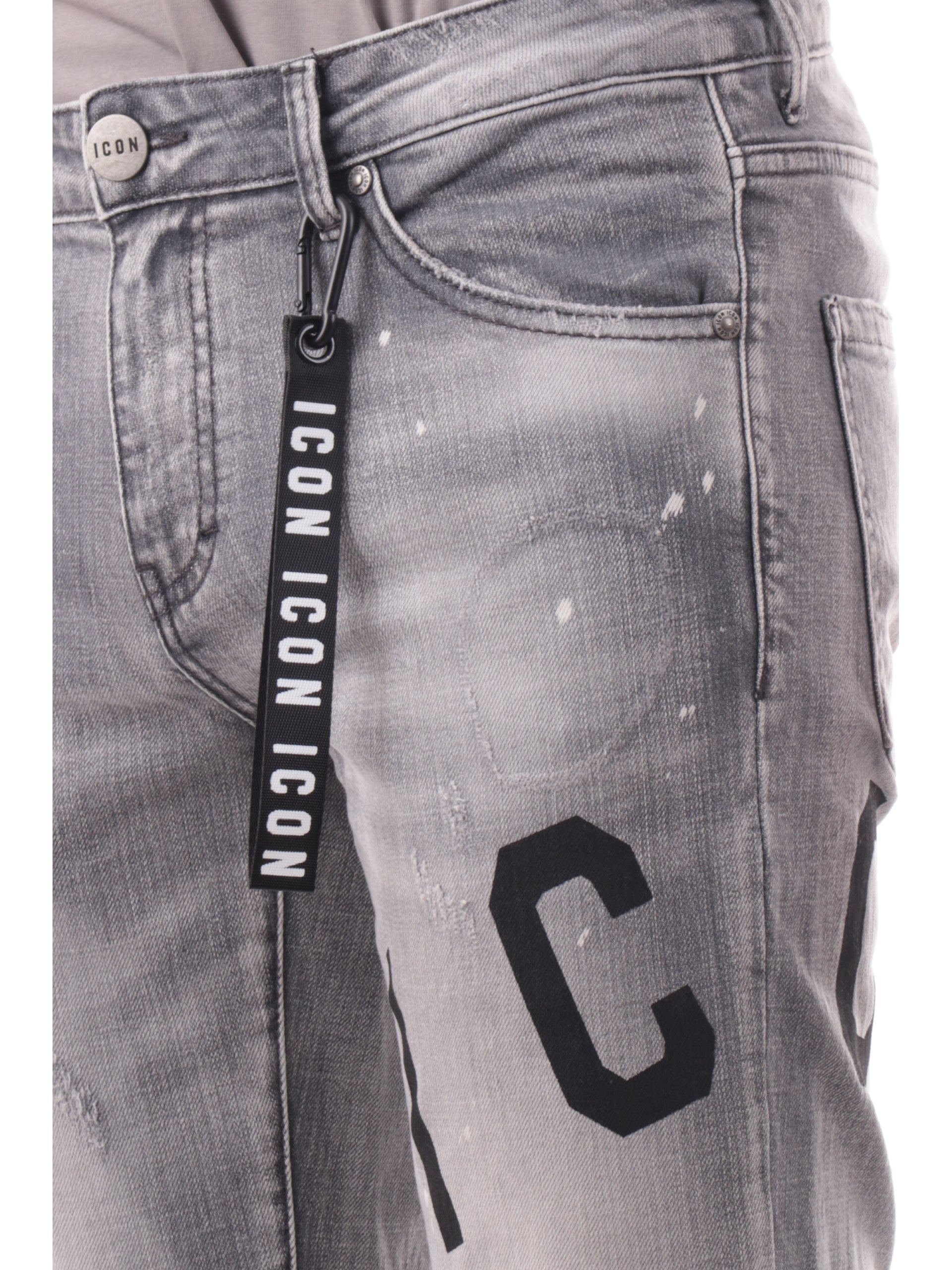 Jeans slim fit grigi Icon strappati da uomo ICUF2W6D002LGREY