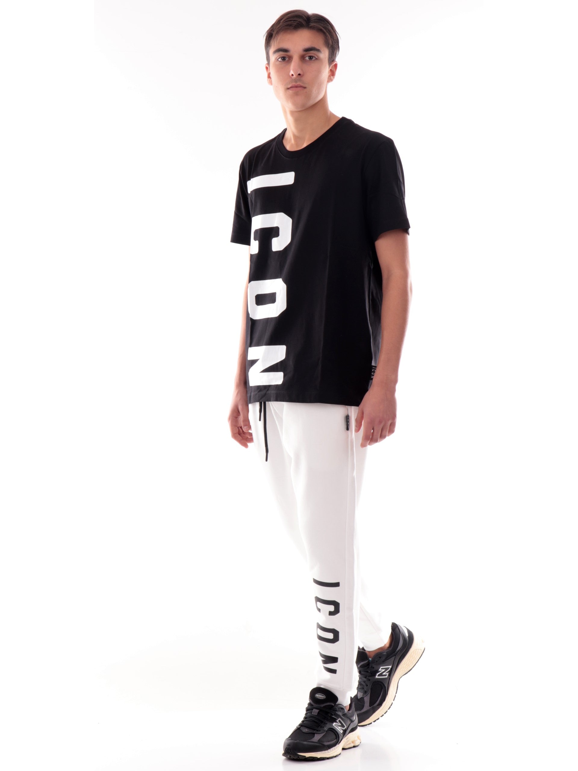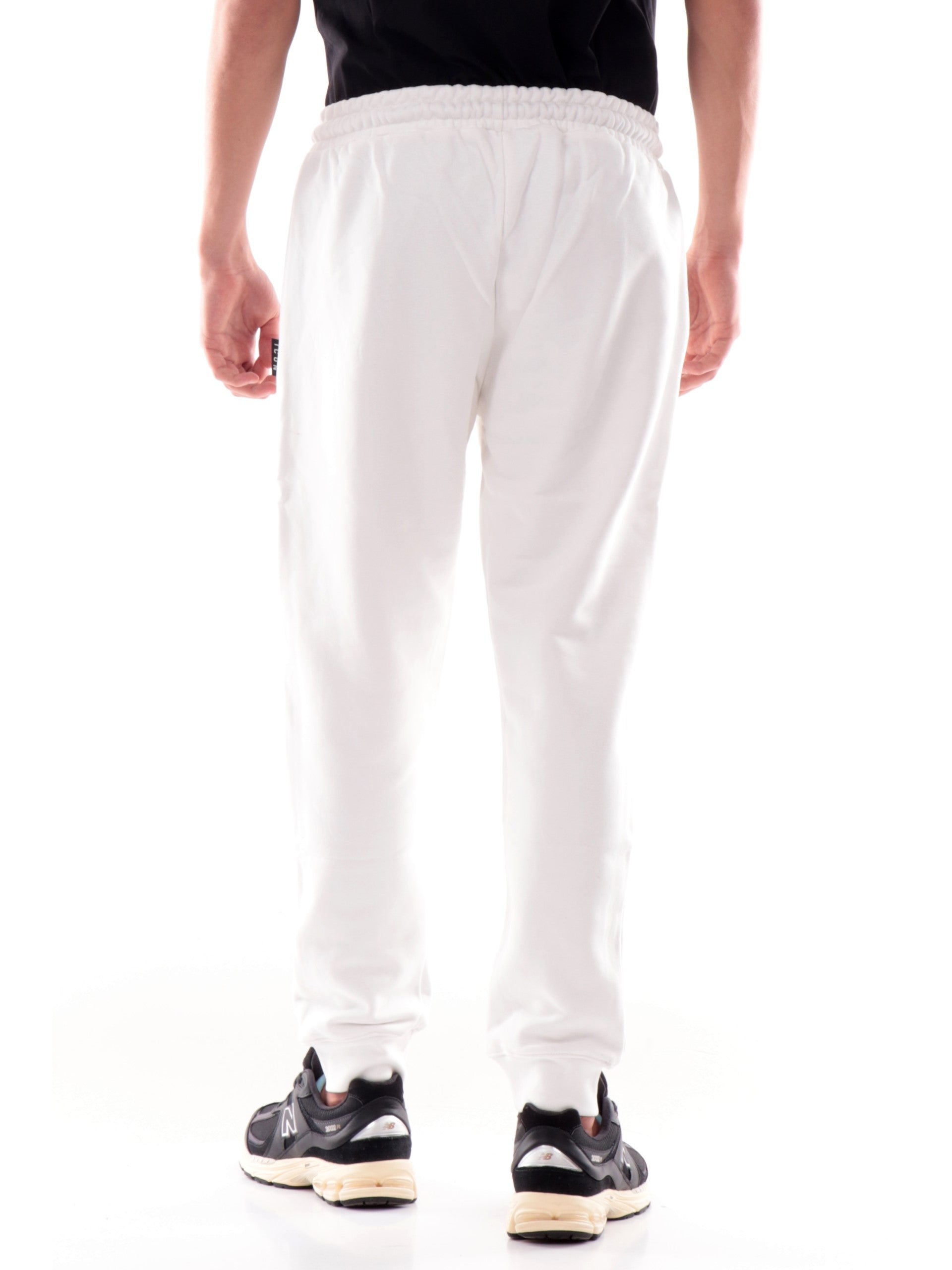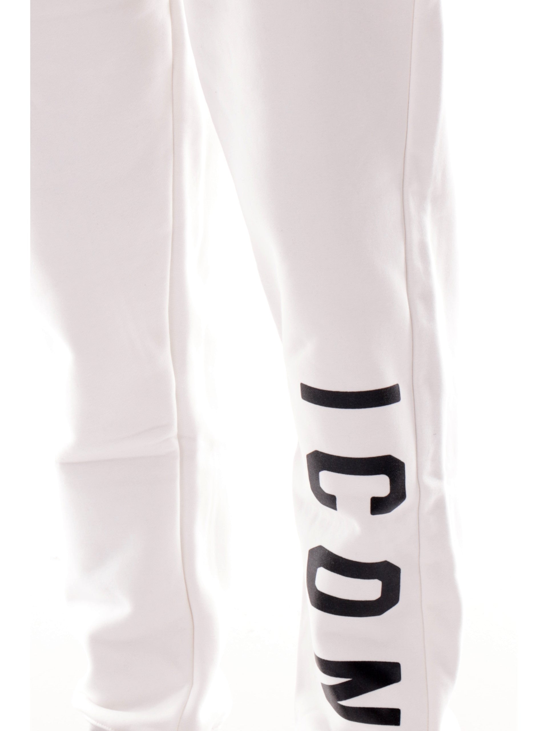 Pantaloni tuta Icon bianchi da uomo con logo. Questi pantaloni Icon sono realizzati da un tessuto caldo, morbido e soffice al tatto. Questi pantaloni Icon tuta bianchi da uomo hanno la banda elasticasul punto vita regolabile con laccetti, due tasche laterali aperte con taglio obliquo, il maxi logo Icon applicato sul fondo e polsini elasticizzati.