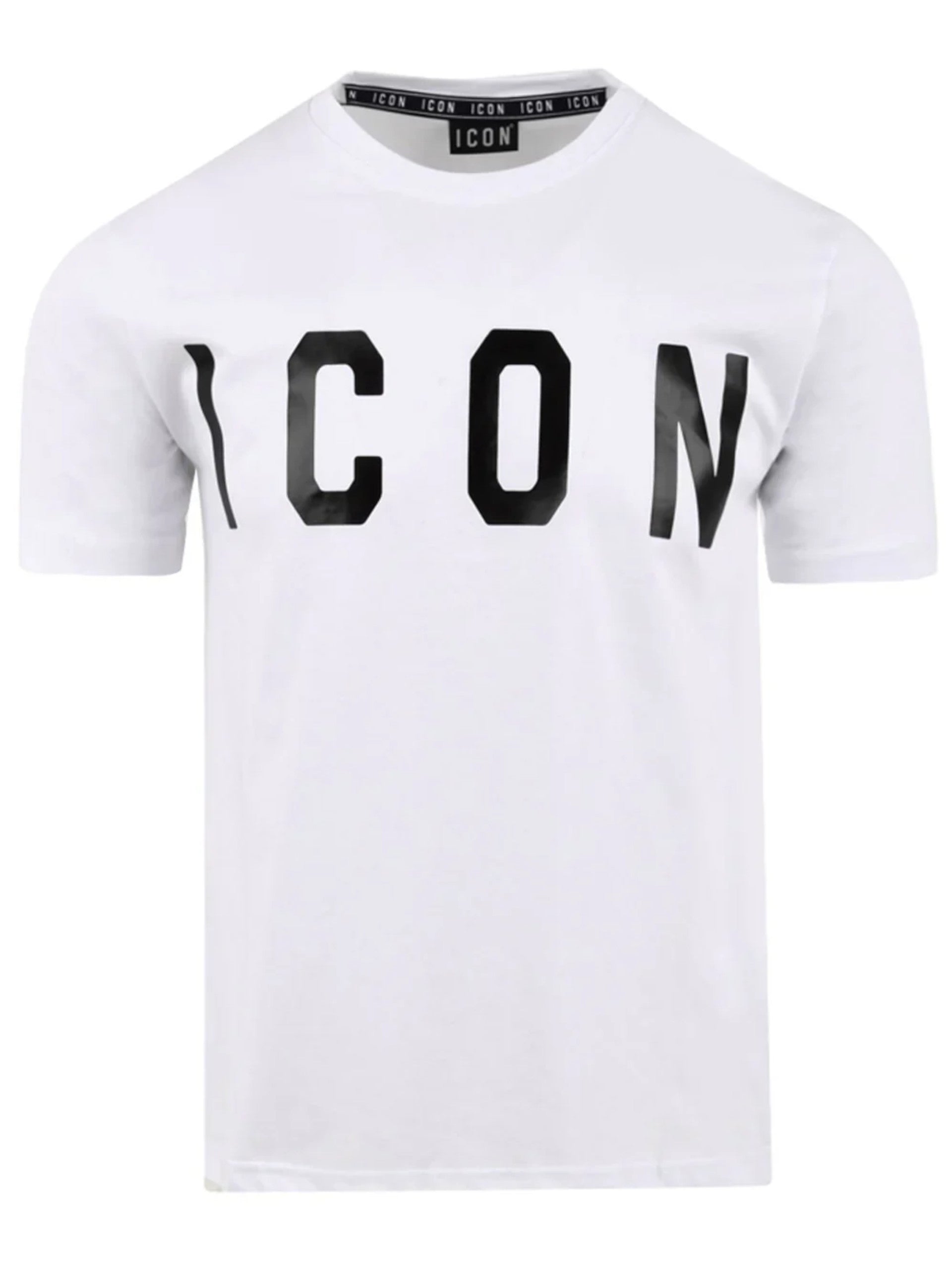 T-shirt bianca Icon bambino maxi logo. Questa maglia Icon bianca girocollo ha le maniche corte e il maxi logo del brand sul davanti, realizzata in 100% puro cotone