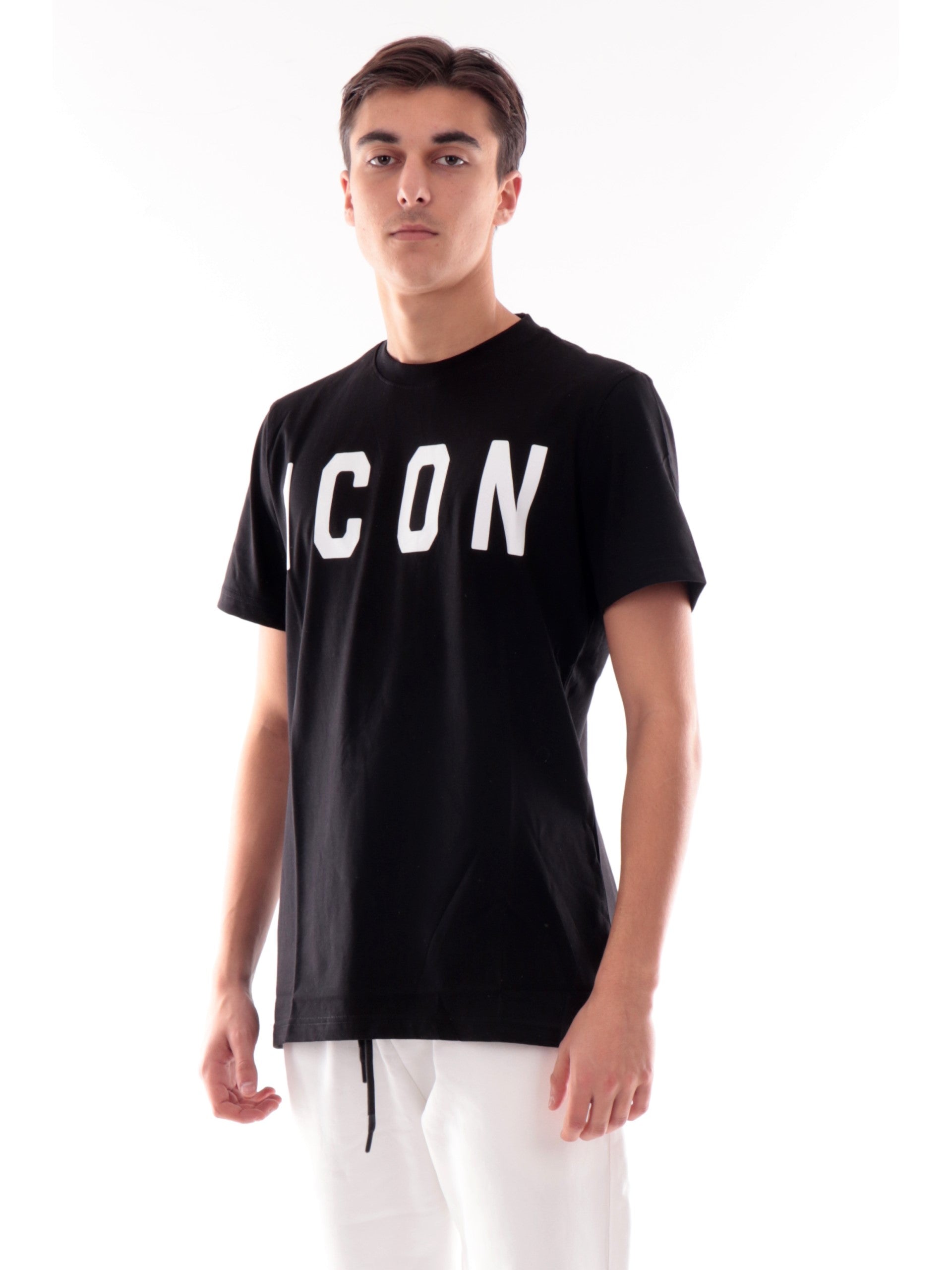 T-shirt Icon nera da uomo maxi logo ICUF2W6T001NERO
