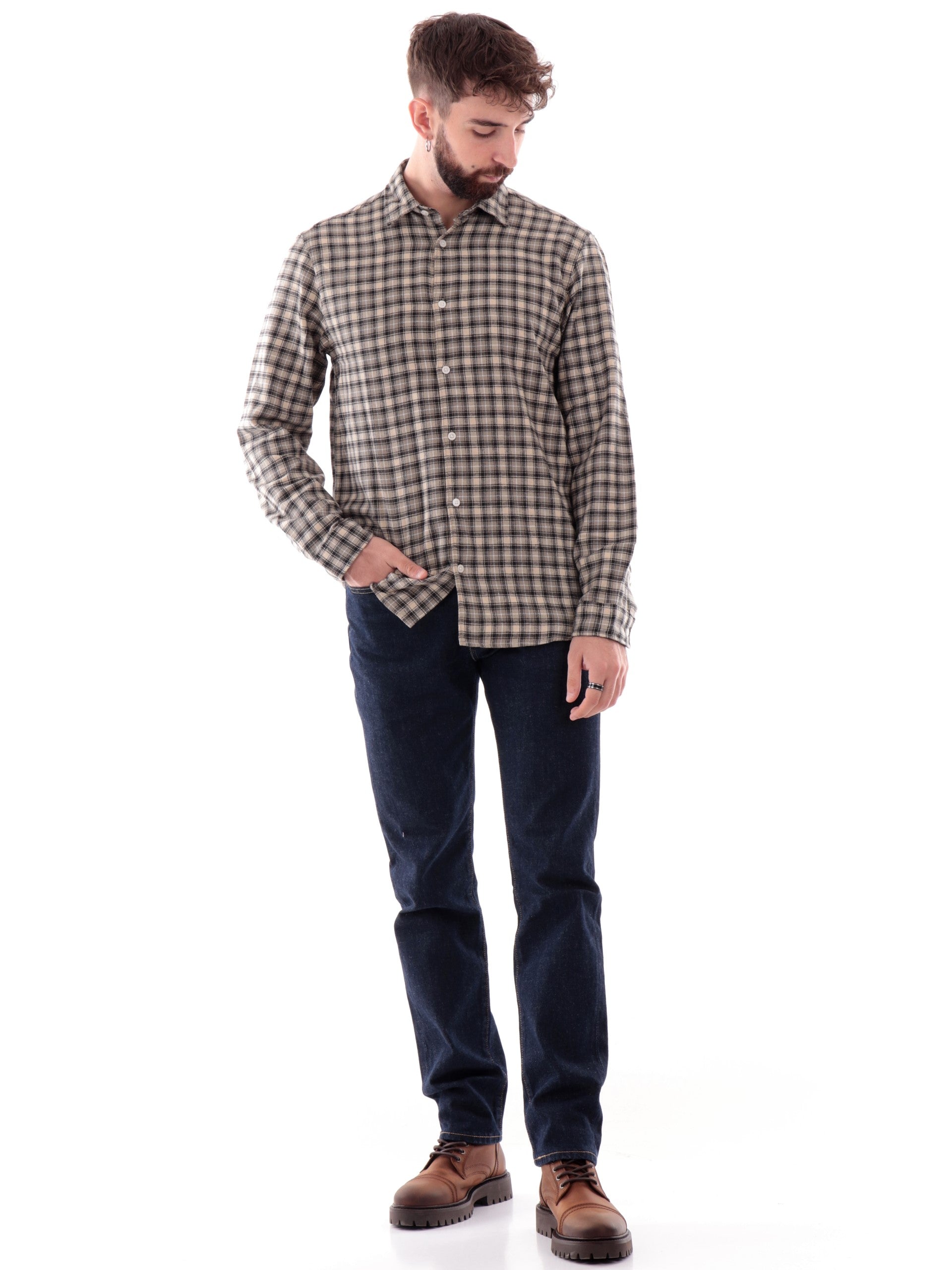 Camicia Jack Jones beige in flanella da uomo a quadri 12260776, realizzata in morbido e caldo cotone. Questa camicia a quadri Jack&Jones ha il colletto alla francese, la chiusura con bottoni, le maniche lunghe con polsini e la fantasia a quadri.