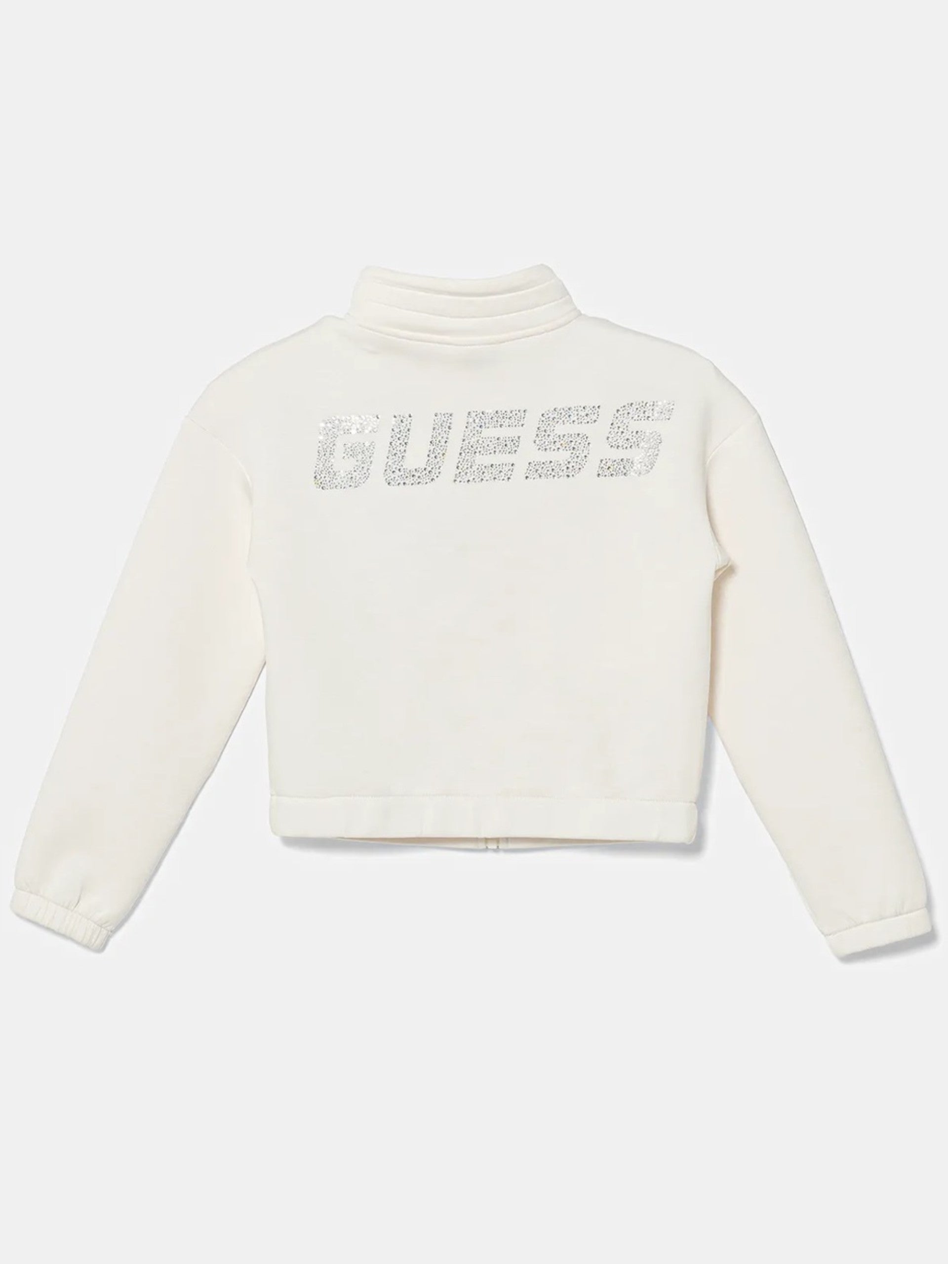 Felpa Guess bianca full zip da bambina logo con strass J5YQ31K7UW2