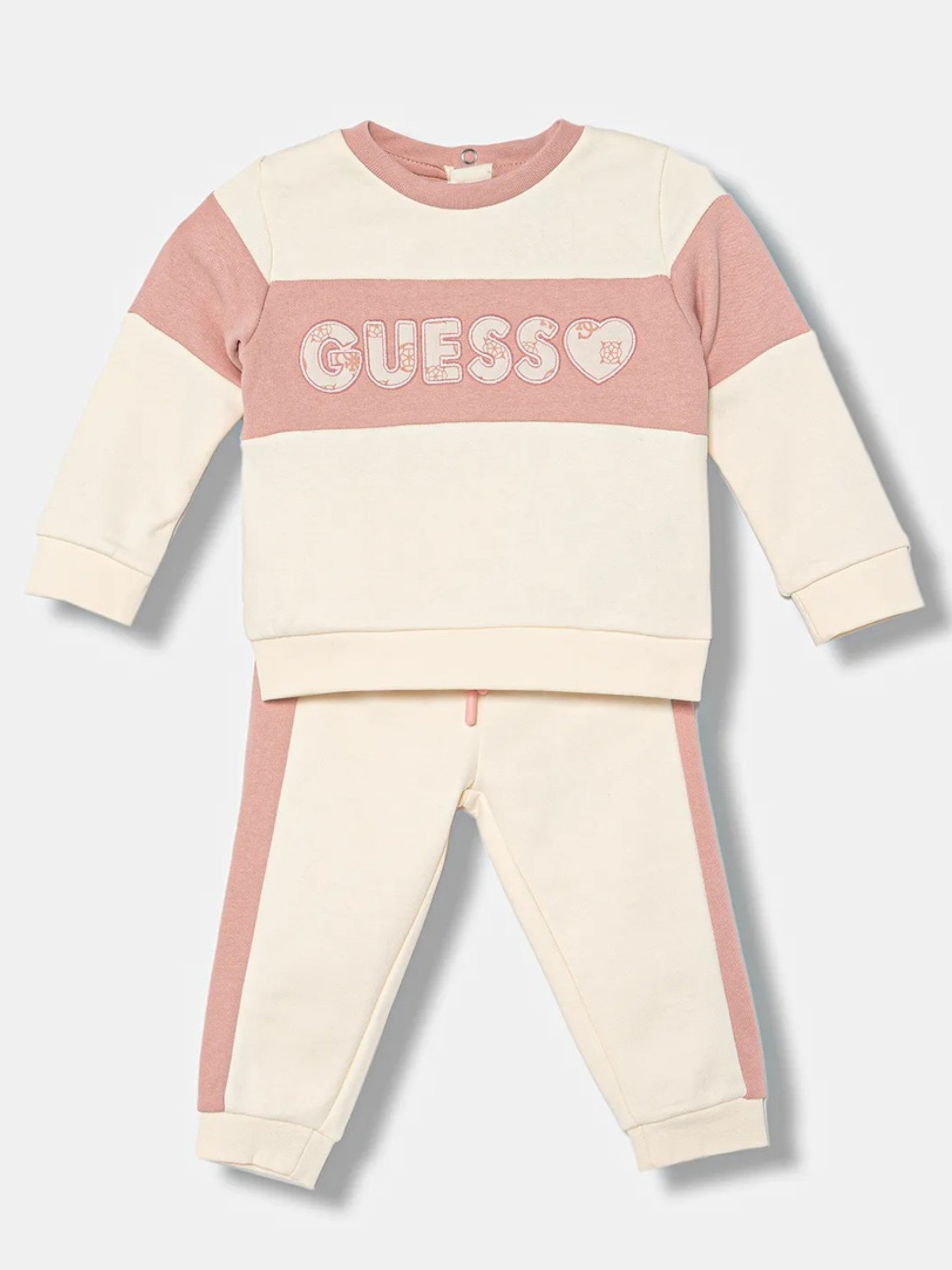 Tuta Guess Bambina rosa e bianca set completo felpa e pantaloni con polsini A5BG11KAV34FTP4