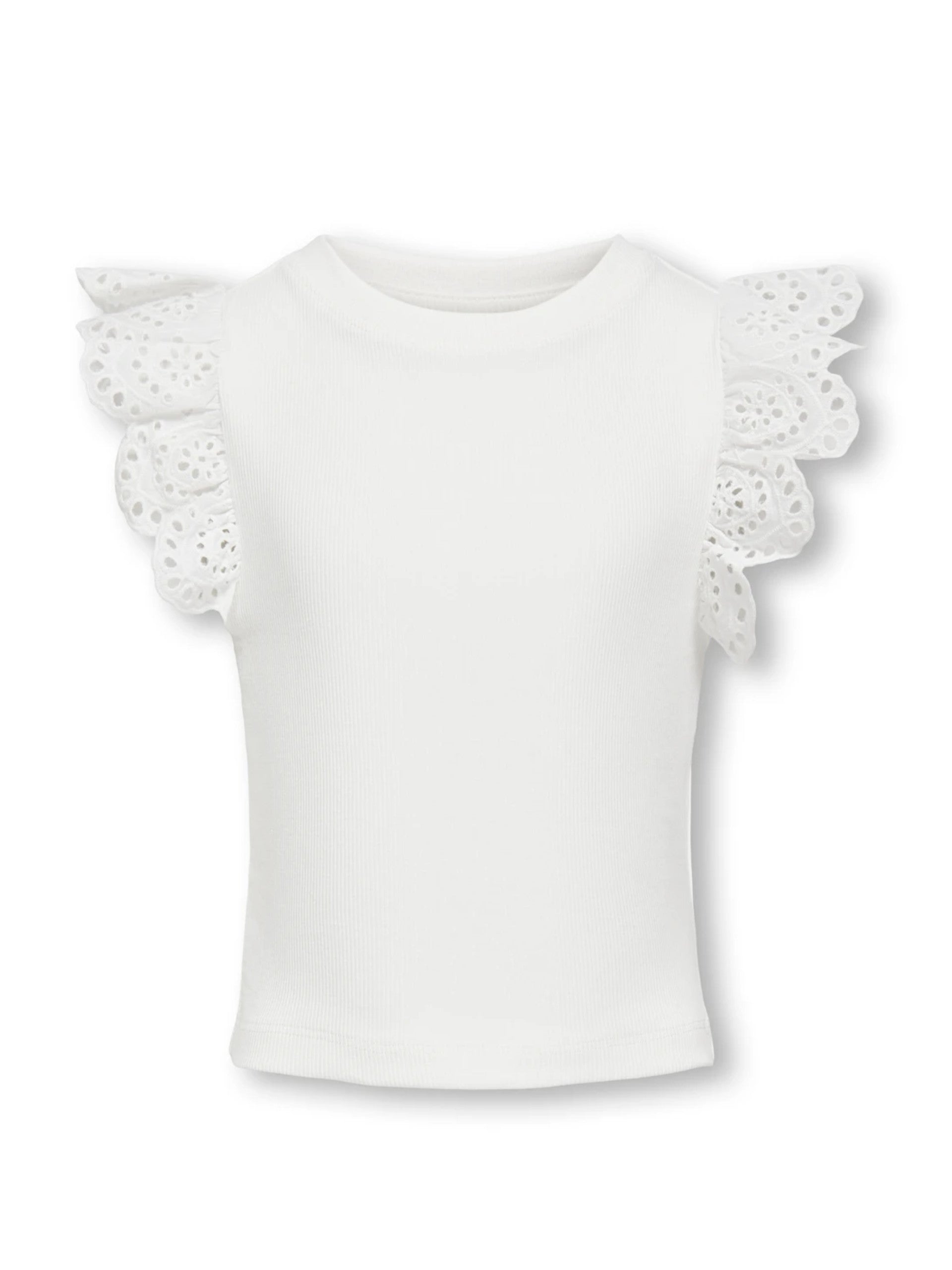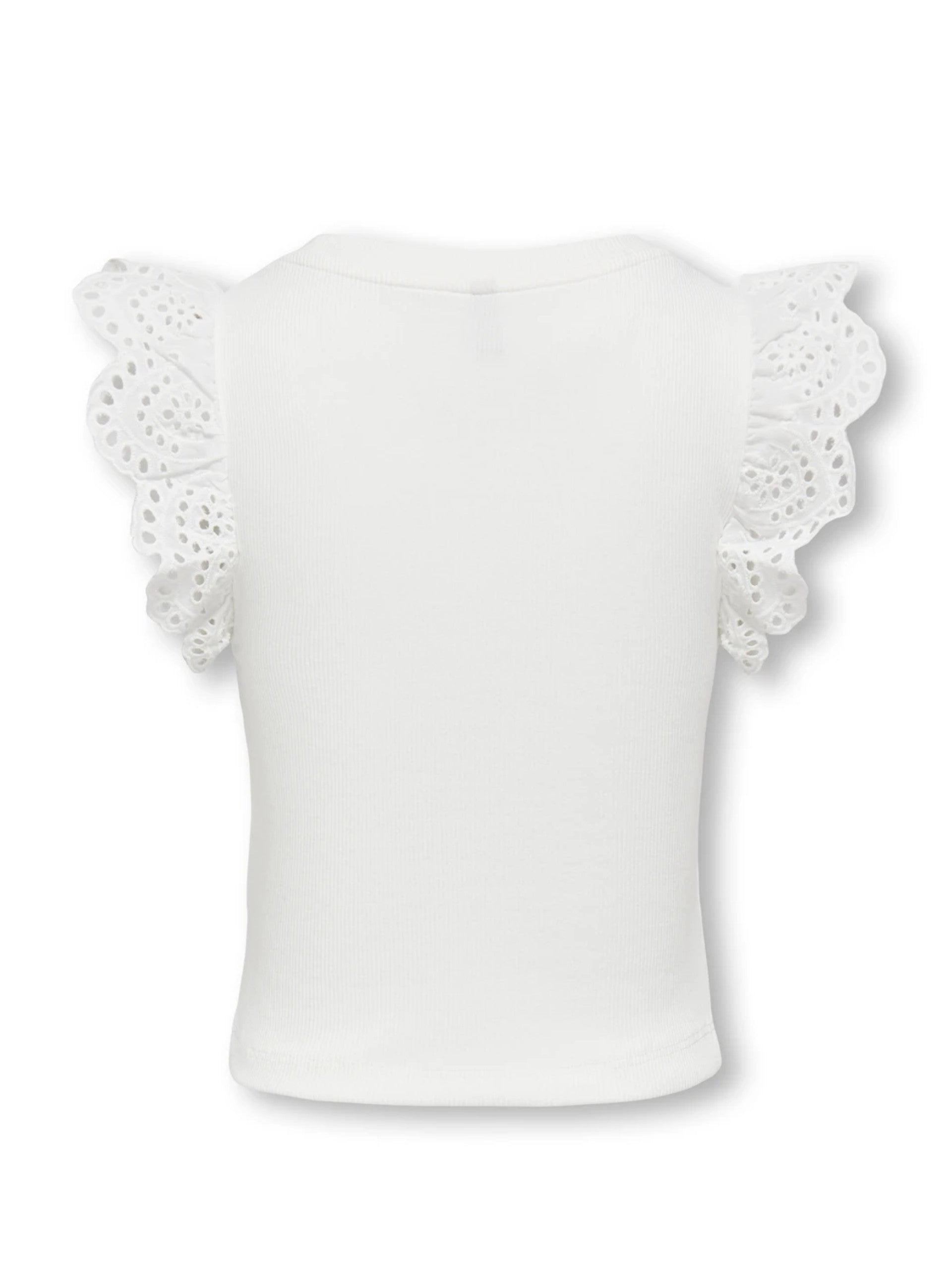 T-shirt Only bianca da bambina a costine maniche con ricami traforati 15325767
