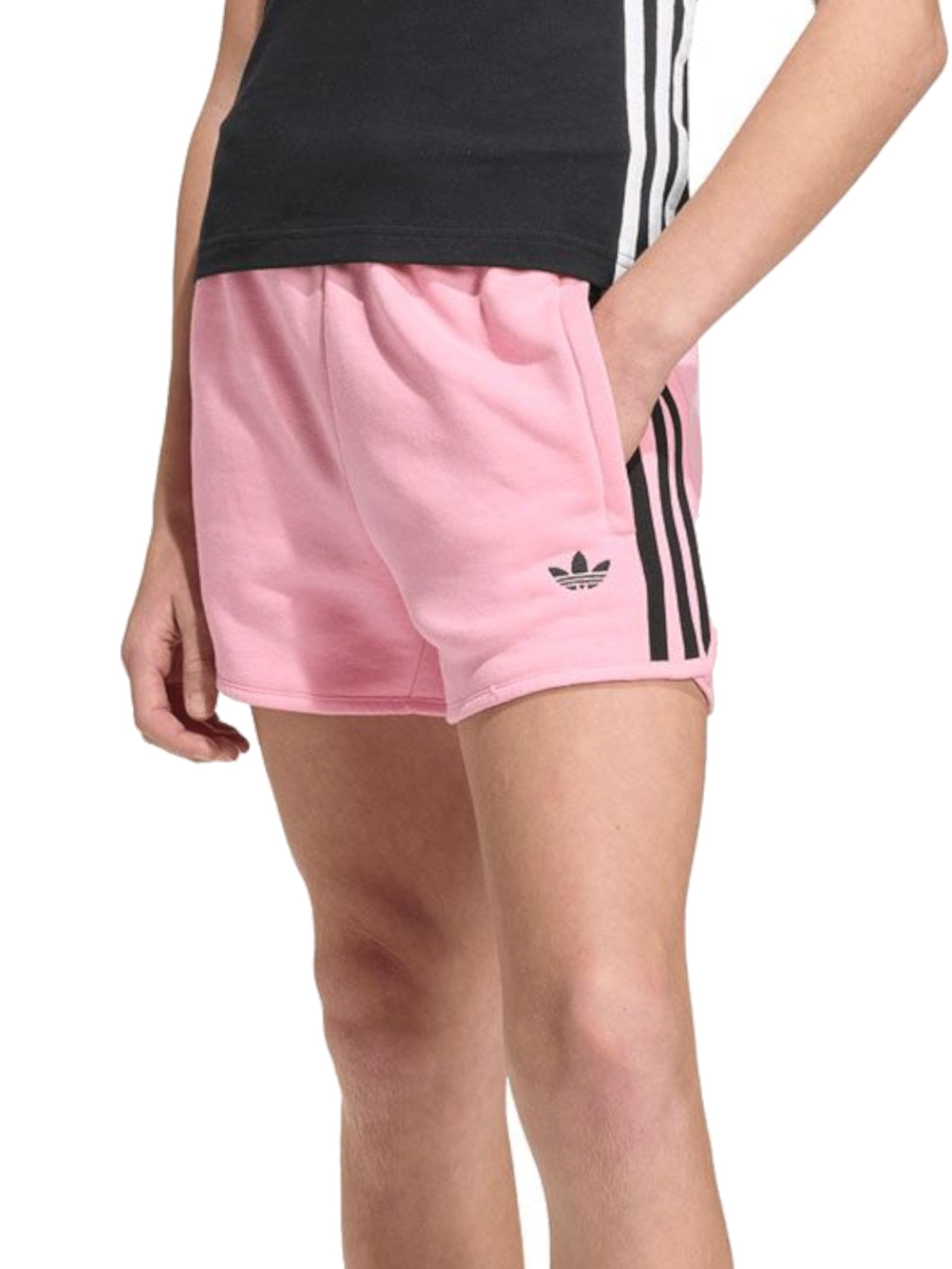 Short Adidas da bambina rosa 3Stripes. Questi Shorts rosa, realizzati in morbido cotone, hanno la banda elastica sul punto vita regolabile con lacci, due tasche laterali con zip, le 3Stripe ambo latie il logo Adidas ricamato in basso a sinistra in nero. Questi short comodi sono perfetti per la stagione estiva