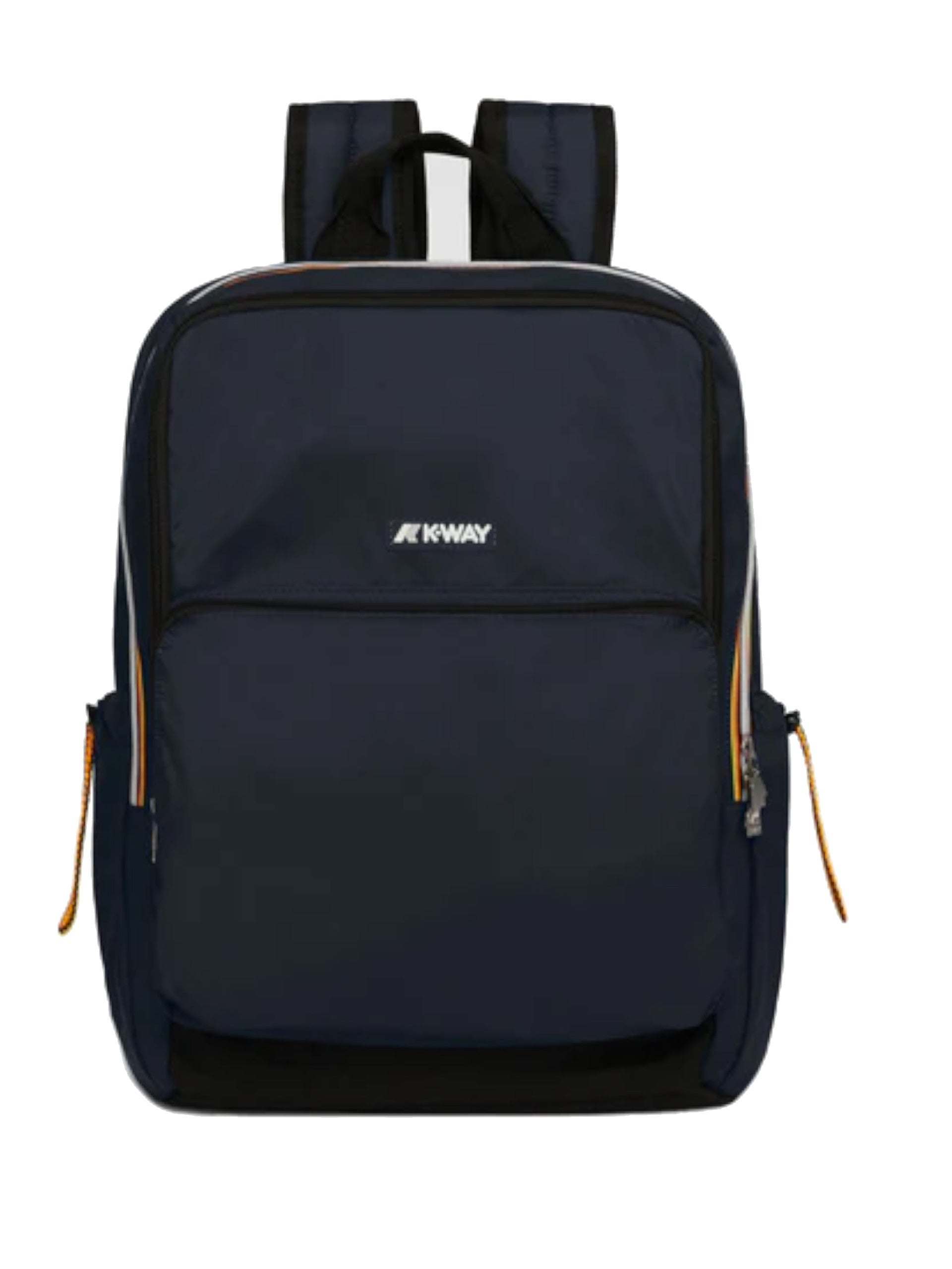Zaino K-Way blu Gizy. Questo zaino K-Way da viaggio, realizzato dal tessuto Ripstop, impermeabile, idrorepellente e antivento, è strutturato con doppio scomparto interno e tasche funzionali sul fronte e sui lati. Lo schienale imbottito assicura massimo comfort, mentre le parti rinforzate proteggono il contenuto e aumentano la resistenza. All'interno di questo zaino, nel primo scomparto molto ampio troviamo delle tasche piccole aperte, una tasca grande con zip e un gancetto, nel secondo scomparto troviamo un unico scomparto grande dove riporre qualiasi cosa. Sul davanti di questa pochette troviamo una tasca frontale con zip, il logo K-Way e spallacci imbottiti regolabili