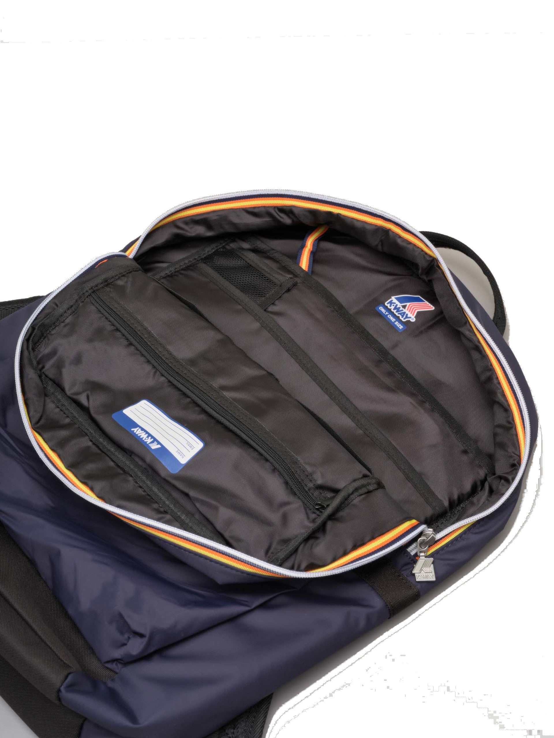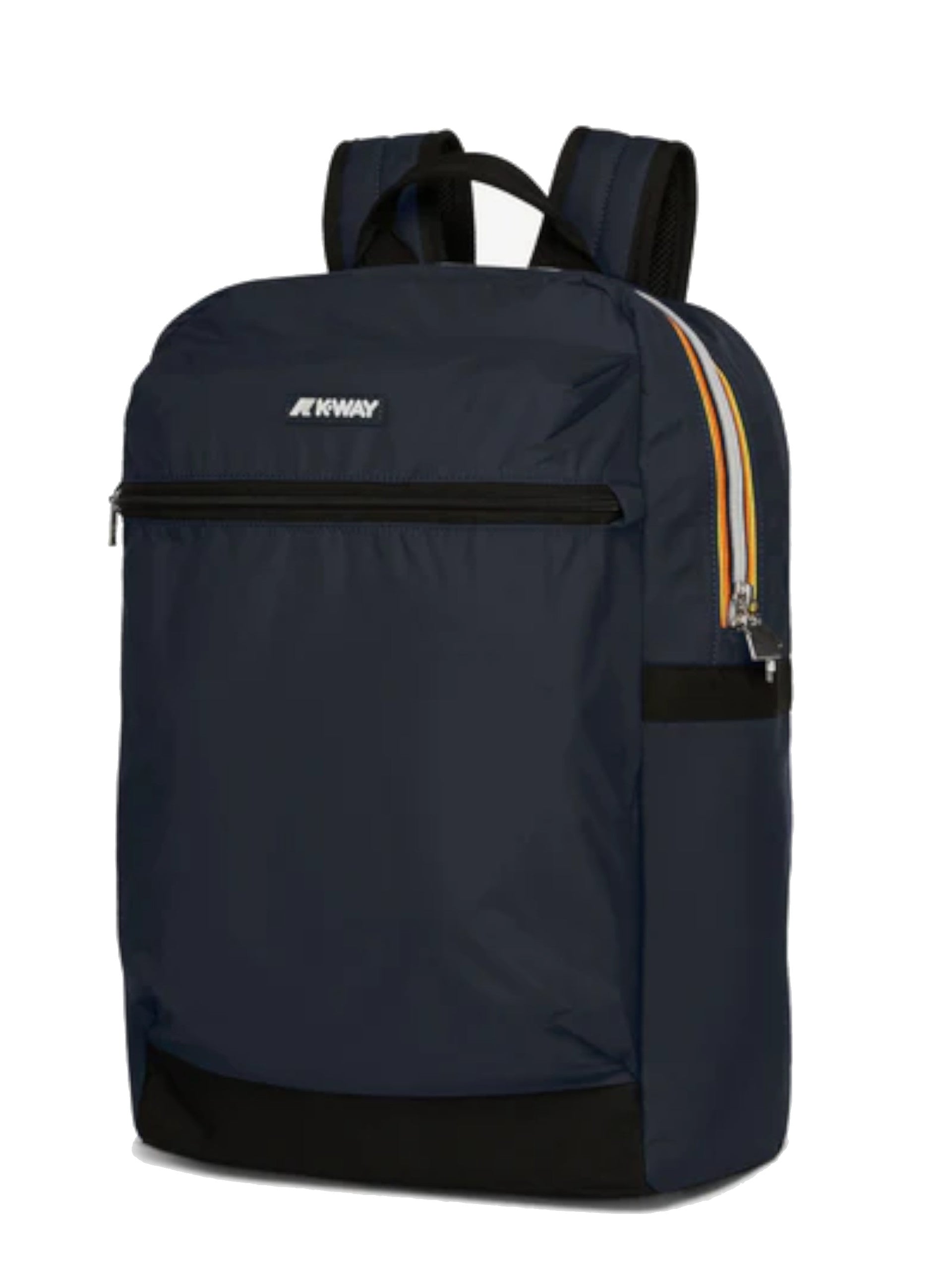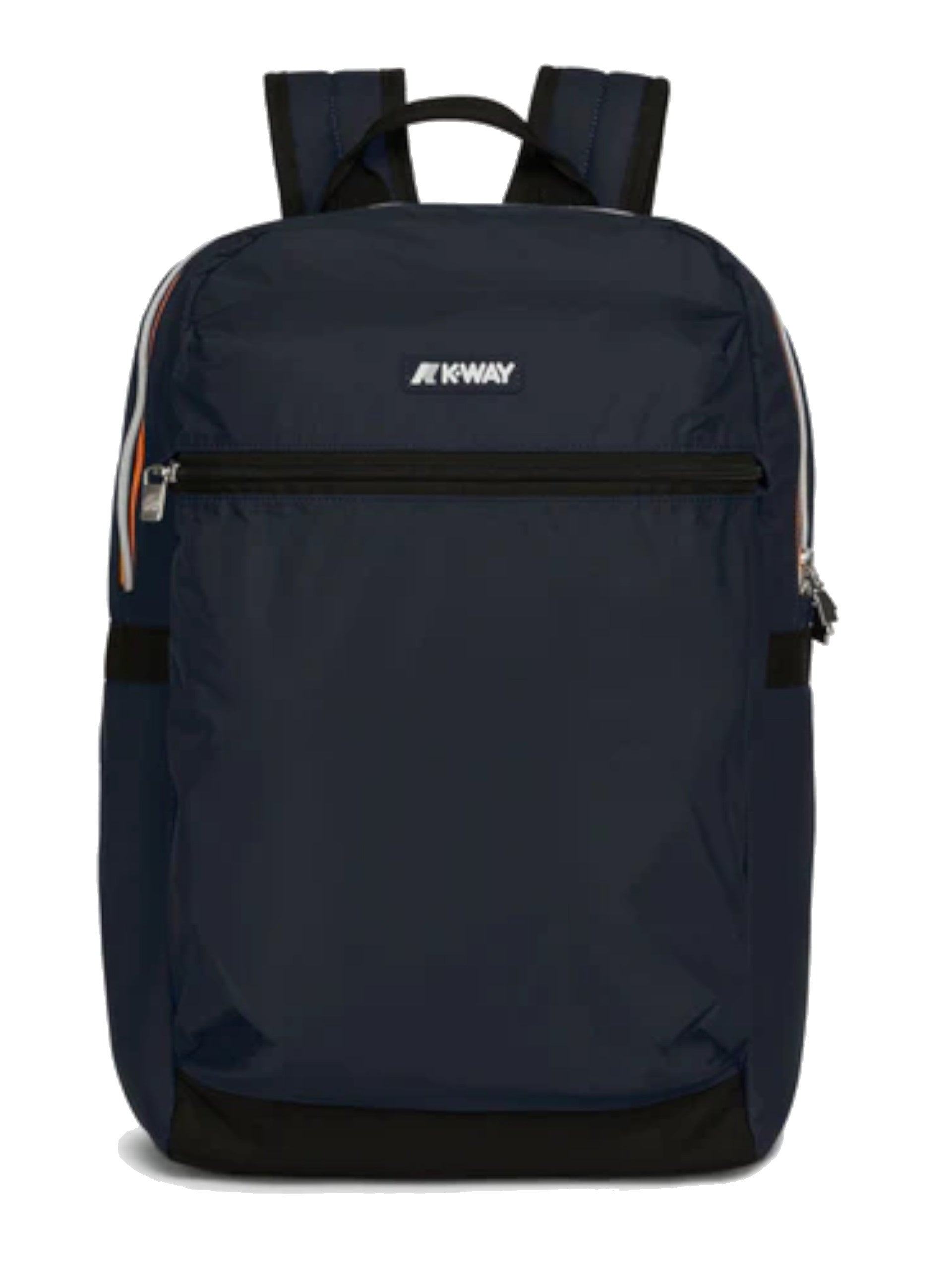 Zaino K-Way blu Laon. Questo zaino K-Way da viaggio, realizzato dal tessuto Ripstop, impermeabile, idrorepellente e antivento, è strutturato con un scomparto grande e presenta una tasca frontale per riporre piccoli oggetti da tenere a portata di mano. Lo schienale imbottito assicura massimo comfort, mentre le parti rinforzate proteggono il contenuto e aumentano la resistenza. All'interno di questo zaino, nel primo scomparto molto ampio troviamo delle tasche aperte, una tasca grande con zip e un gancetto, nel secondo scomparto troviamo un unico scomparto grande dove riporre qualiasi cosa. Suldavanti troviamo il logo K-Way e su retro spallacci imbottiti regolabili