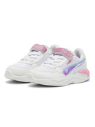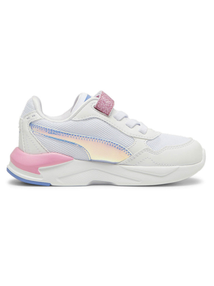 Scarpe Puma bianche e rosa da bambina X-Ray Speed Lite Deep 39656. Queste sneakers Puma bianche hanno la tomaia in mesh con inserti in tessuto traspirante, la suola in gomma e la soletta removibile. Sul davanti di queste Puma X-Ray Speed troviamo la chiusura con velcro glitterata, le bande ambo i lati e il logo del brand a contrasto colore.