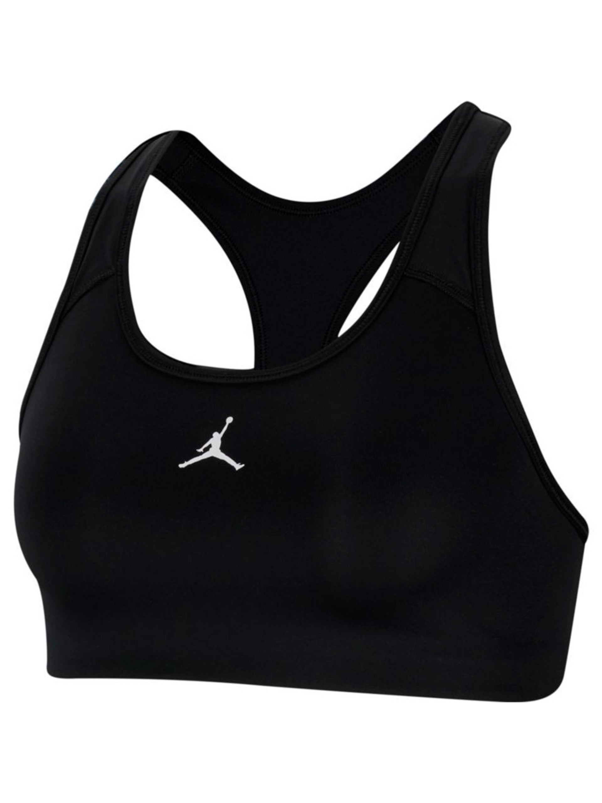 Crop Top Jordan nero bambina Jumpman Bra, realizzato in morbido tessuto. Questo crop top Jordan ha le spalline intrecciate dietro e il logo del brand stampato sul davanti.