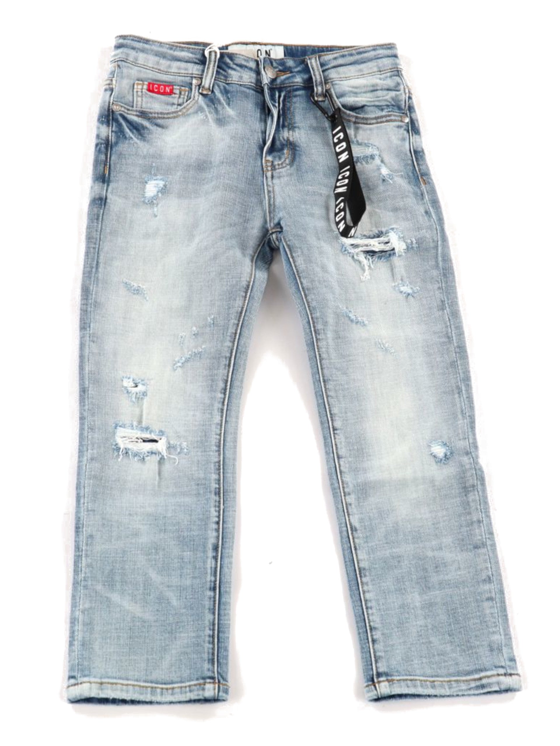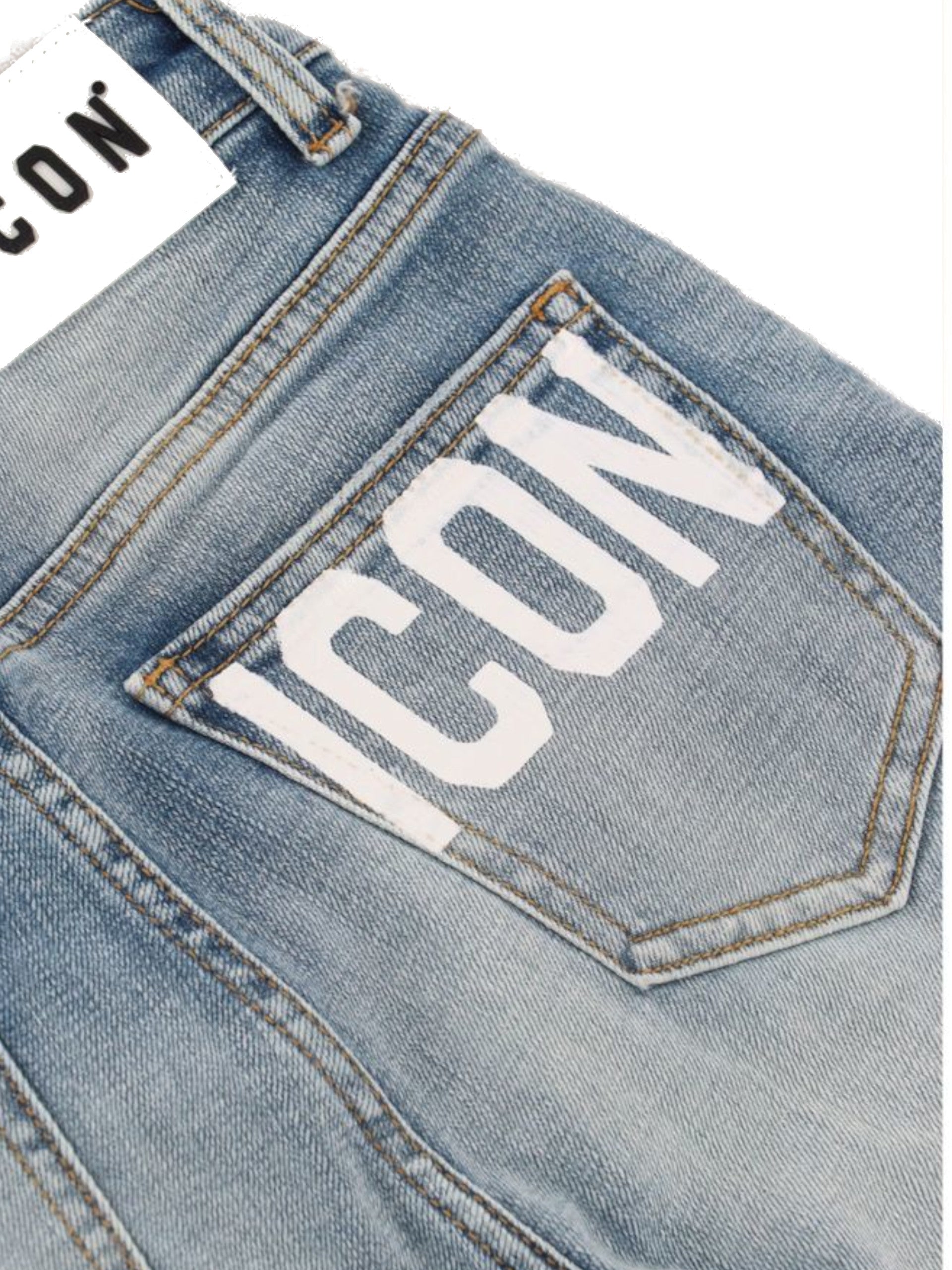 Jeans pantaloni da bambino Icon, realizzati in cotone. Questi pantaloni jeans Icon hanno la chiusura con bottone più zip, cinque comode tasche, maxi scritta del brand sul retro, inserti in tessuto strappato e la vestibilità slim. Questi Jeans pantaloni Icon sono caratterizzati da un laccio con moschettone removibile e sono perfetti su un look casual e sportivo