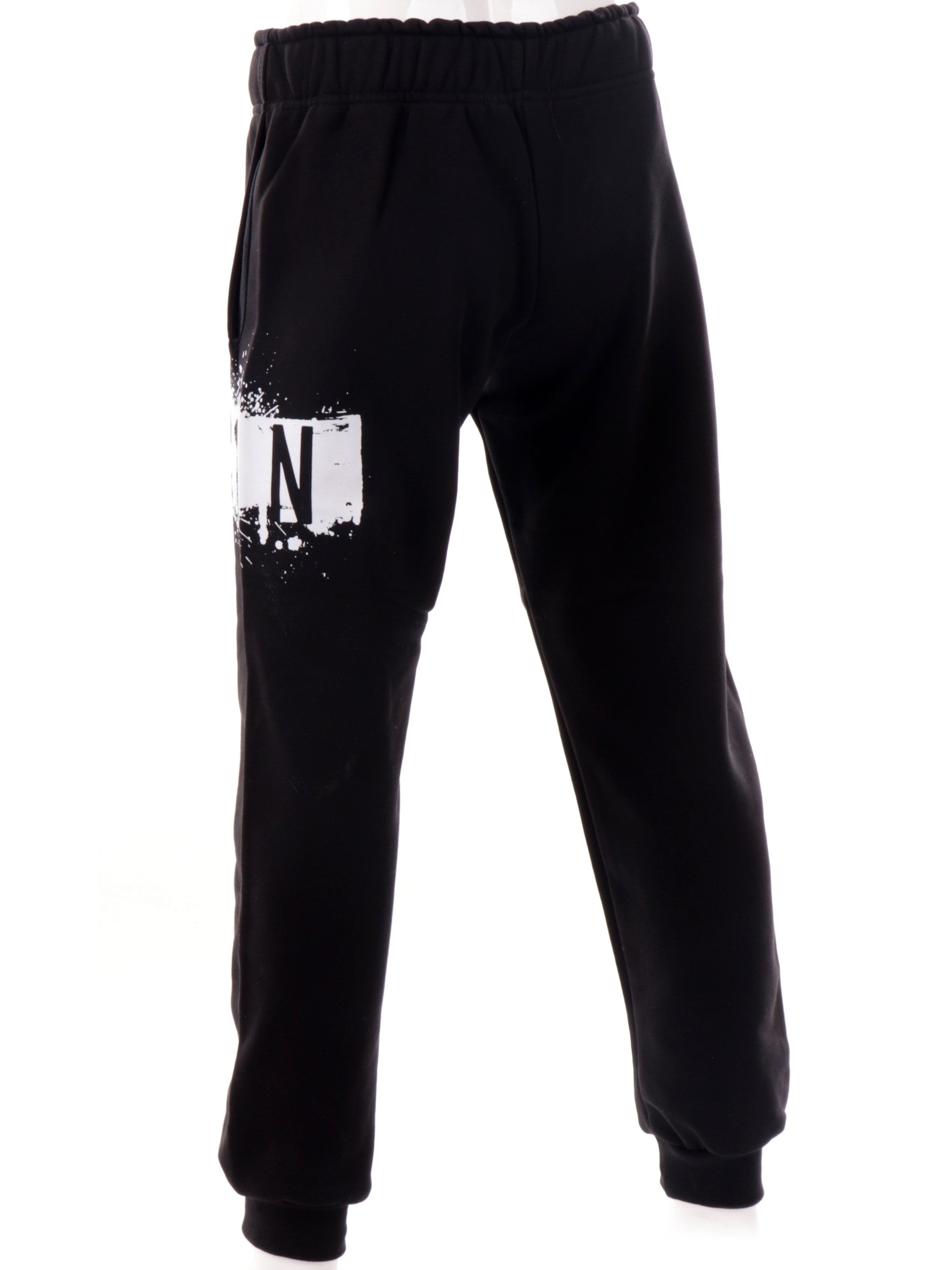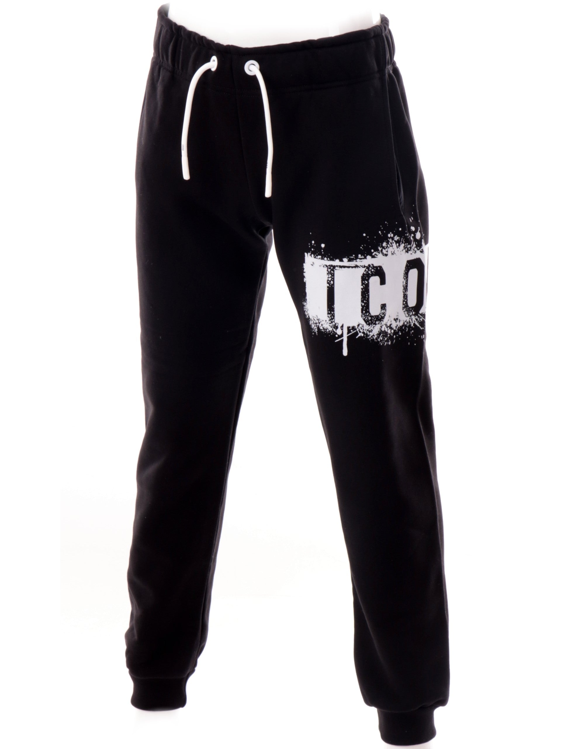 Pantaloni tuta Icon neri bambino. Questi pantaloni tuta Icon sono caratterizzati da cotone felpato con elastico in vita regolabile con lacci, polsini sul fondo, con maxi logo con scritta bianca stampata sul lato.