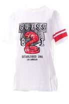 T-shirt Guess bianca da bambino maxi patch Slub Jersey J5RI06K6XN4, realizzata in 100% puro cotone. Questa maglia Guess bianca girocollo ha le maniche corte e il maxi patch del brand sul davanti a contrasto colore.