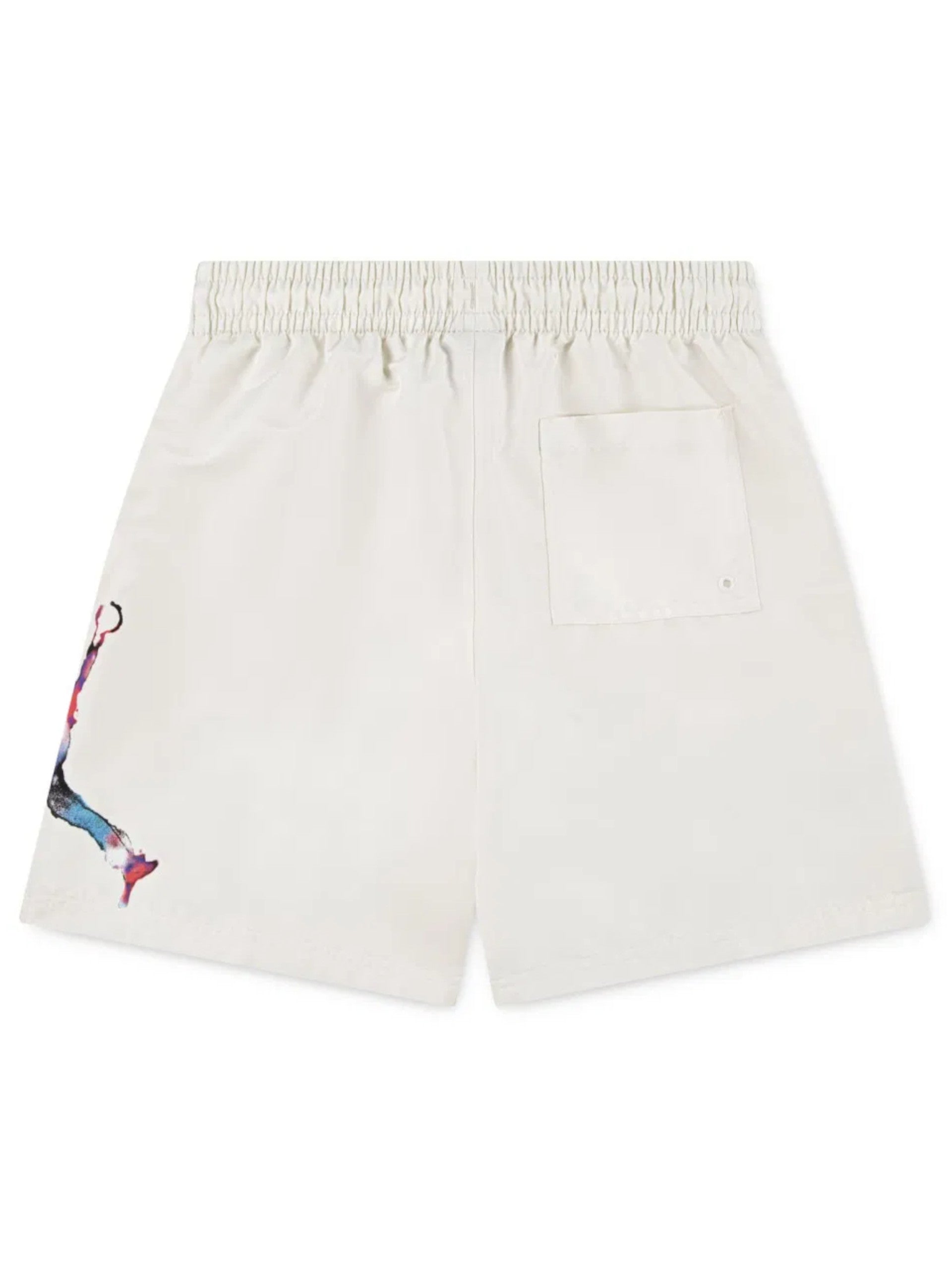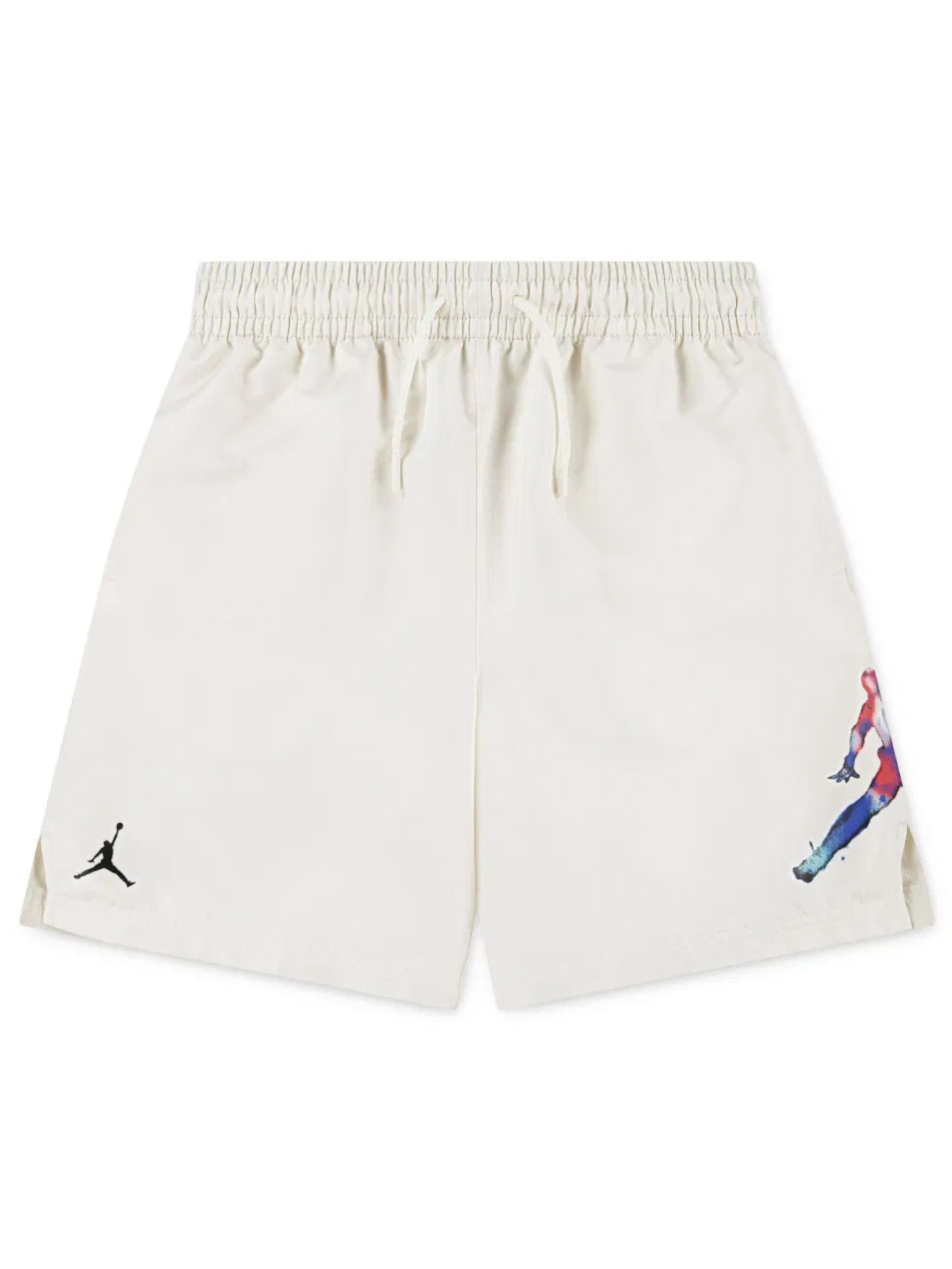 Costume mare Jordan bianco panna da bambino Poolside 95D856. Questo costume Jordan bianco ha la banda elastica sul punto vita regolabile con laccetti, la retina interna traforata, due tasche lateraliaperte, una tasca posteriore e la maxi stampa Jordan.