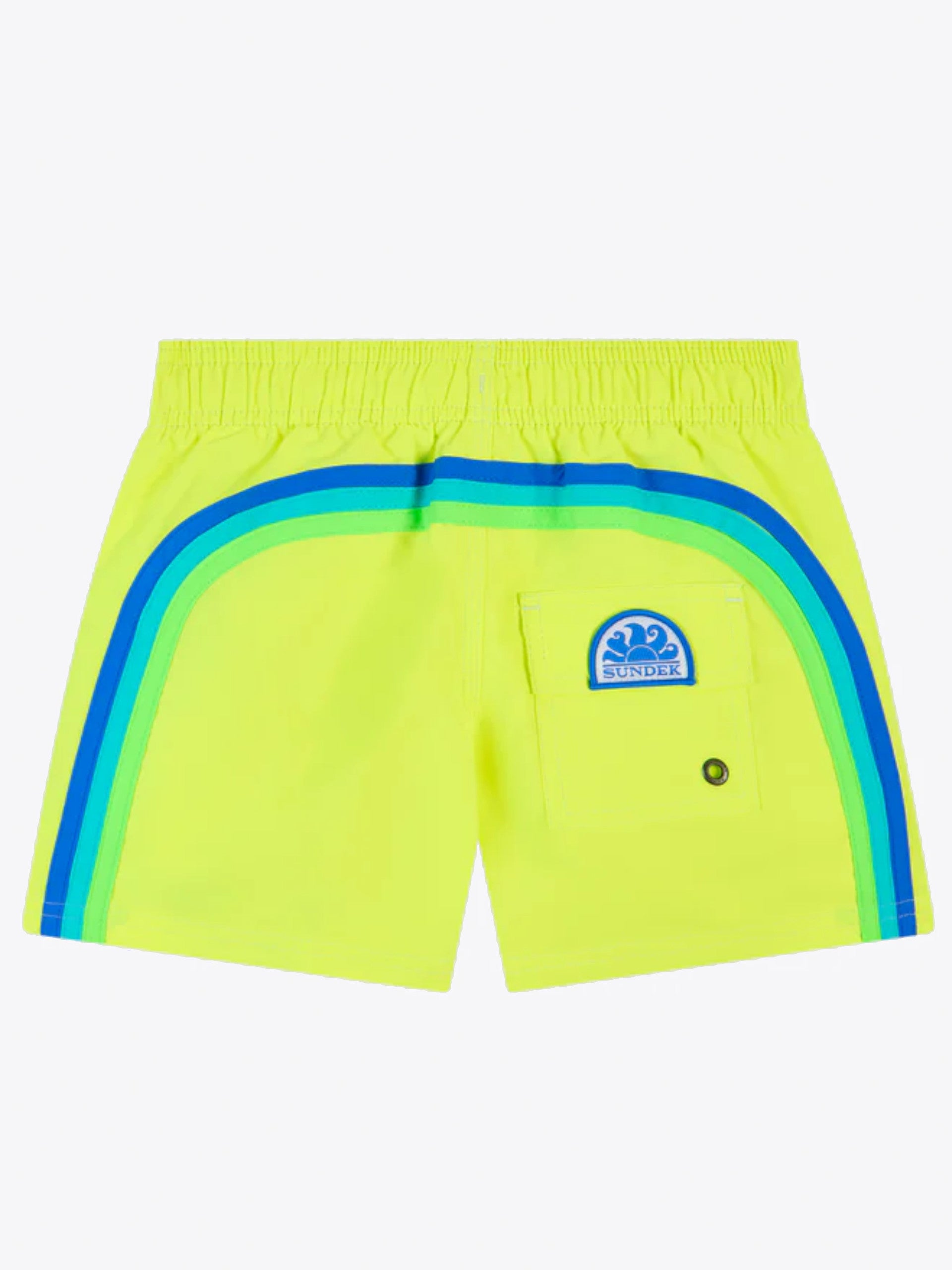 Costume mare Sundek giallo da bambino Boardshort B504BDTA100230, è l'iconico boxer mare con arcobaleno sul retro del brand. Questo costume bambino Sundek è caratterizzato da cuciture a contrasto e tessuto nylon.