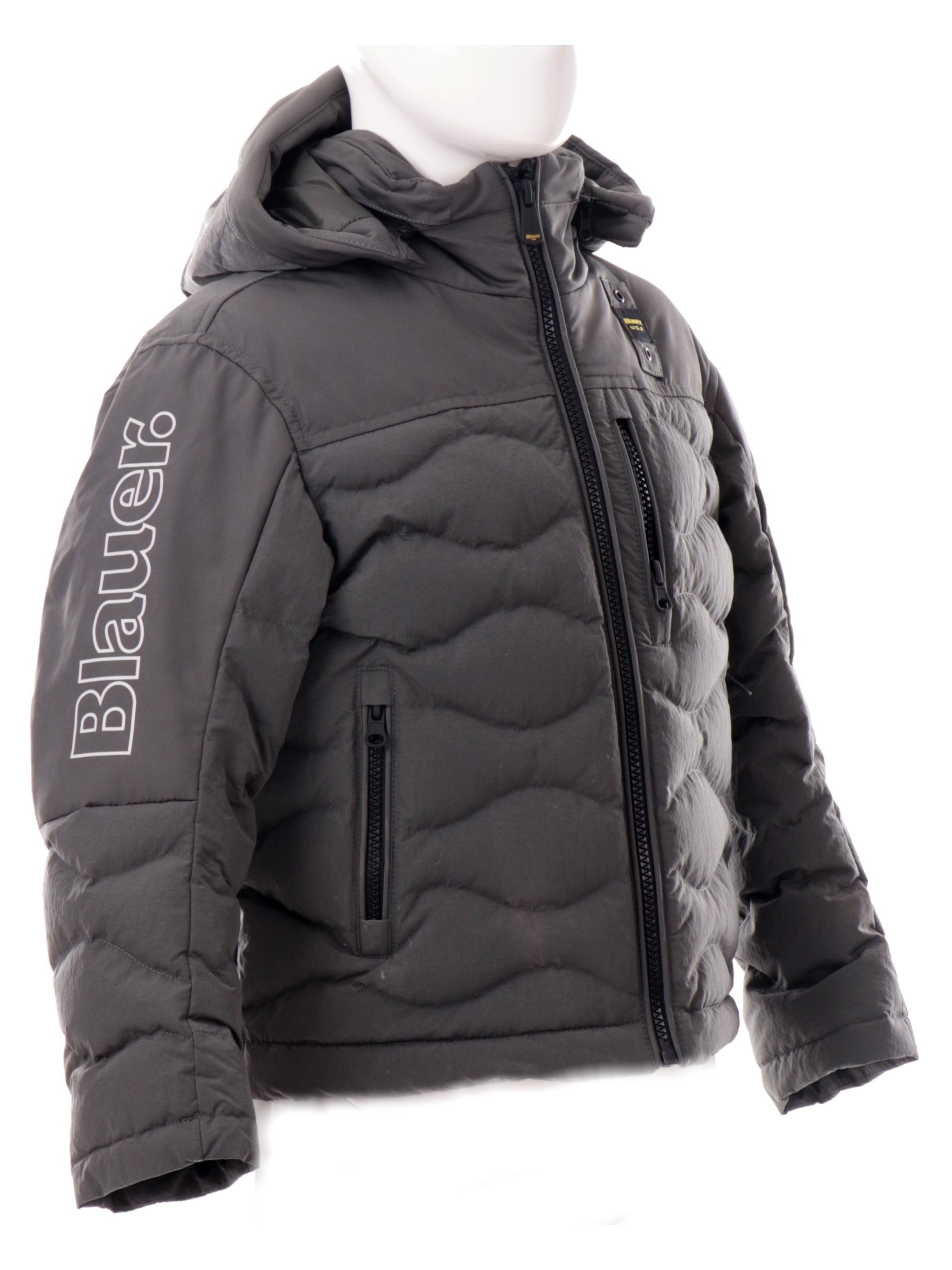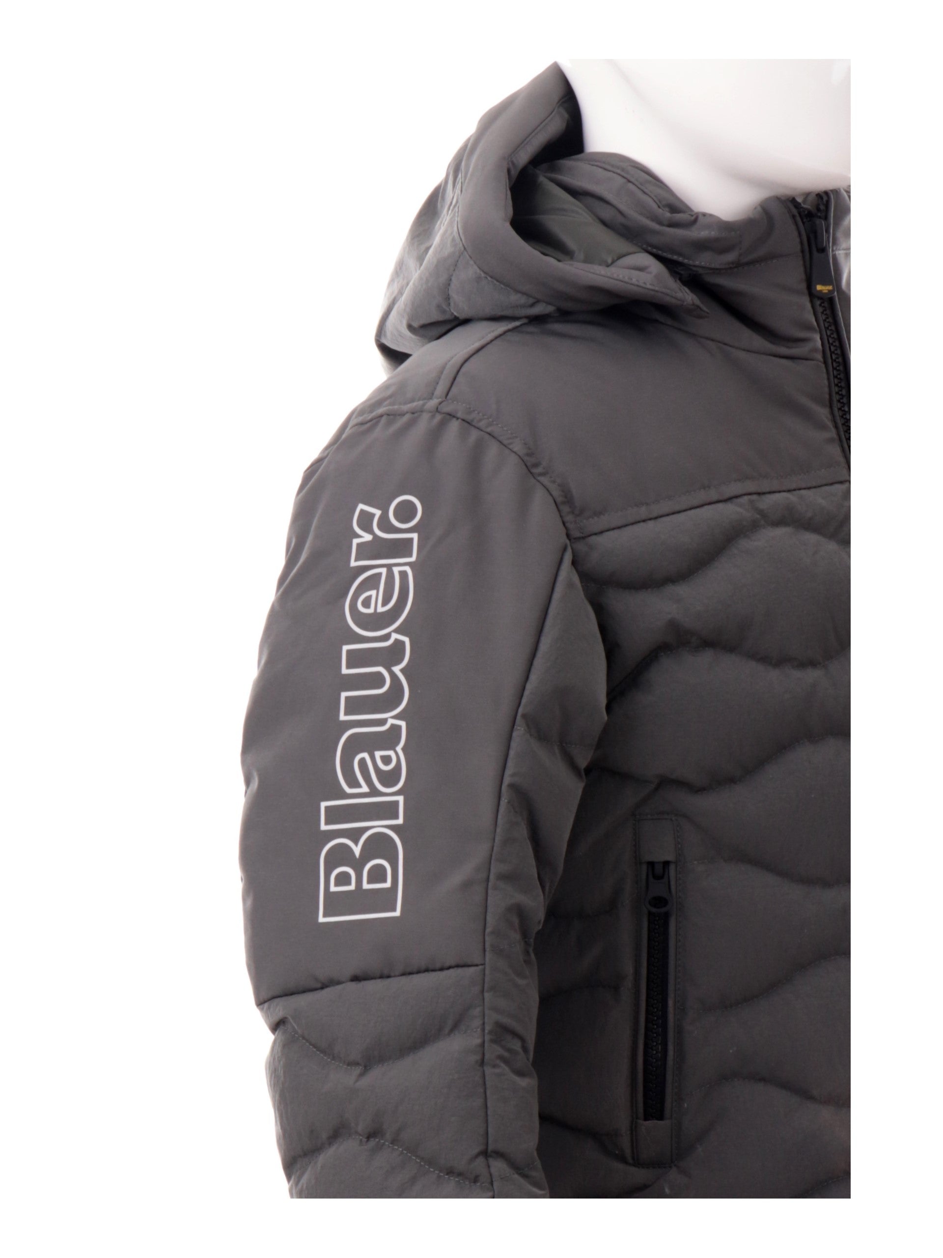 Blauer a onde da bambino grigio Ferwoo con cappuccio removibile. Questo giubbino Blauer grigio è composto da un imbottitura in ovatta,è caratterizzato da un cappuccio removibile, chiusura a zip, scritta Blauer sulla manica destra, due tasche laterali, una tasca a zip sul lato sinistro e due tasche interne,