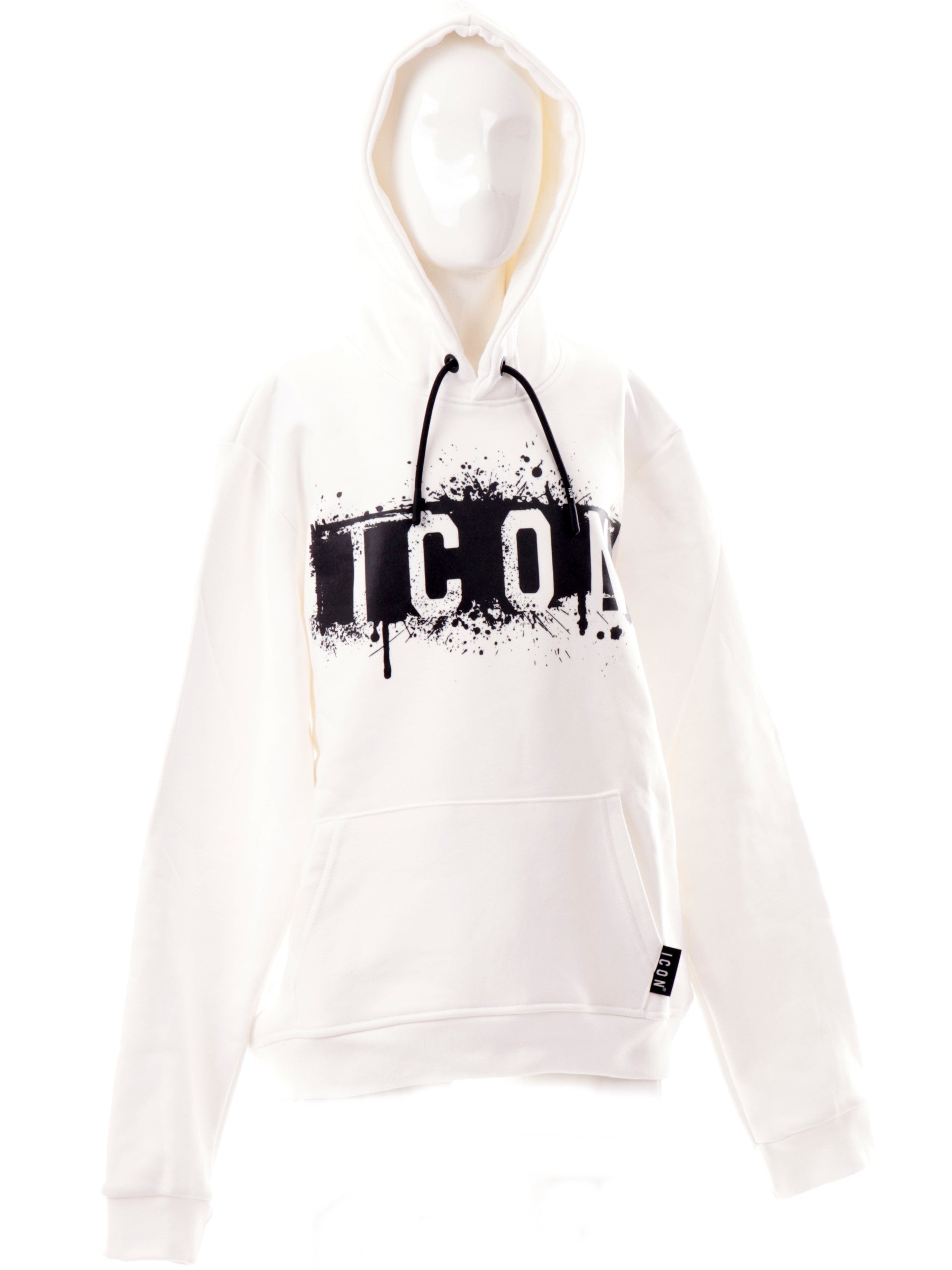 Felpa Icon bianca bambino con cappuccio. Questa felpa Icon bianca è realizzata da un tessuto caldo esoffice al tatto, caratterizzata da un maxi logo nero sul davanti e tasche a marsupio. Quets afelpa è adatta per qualsiasi outfit invernale