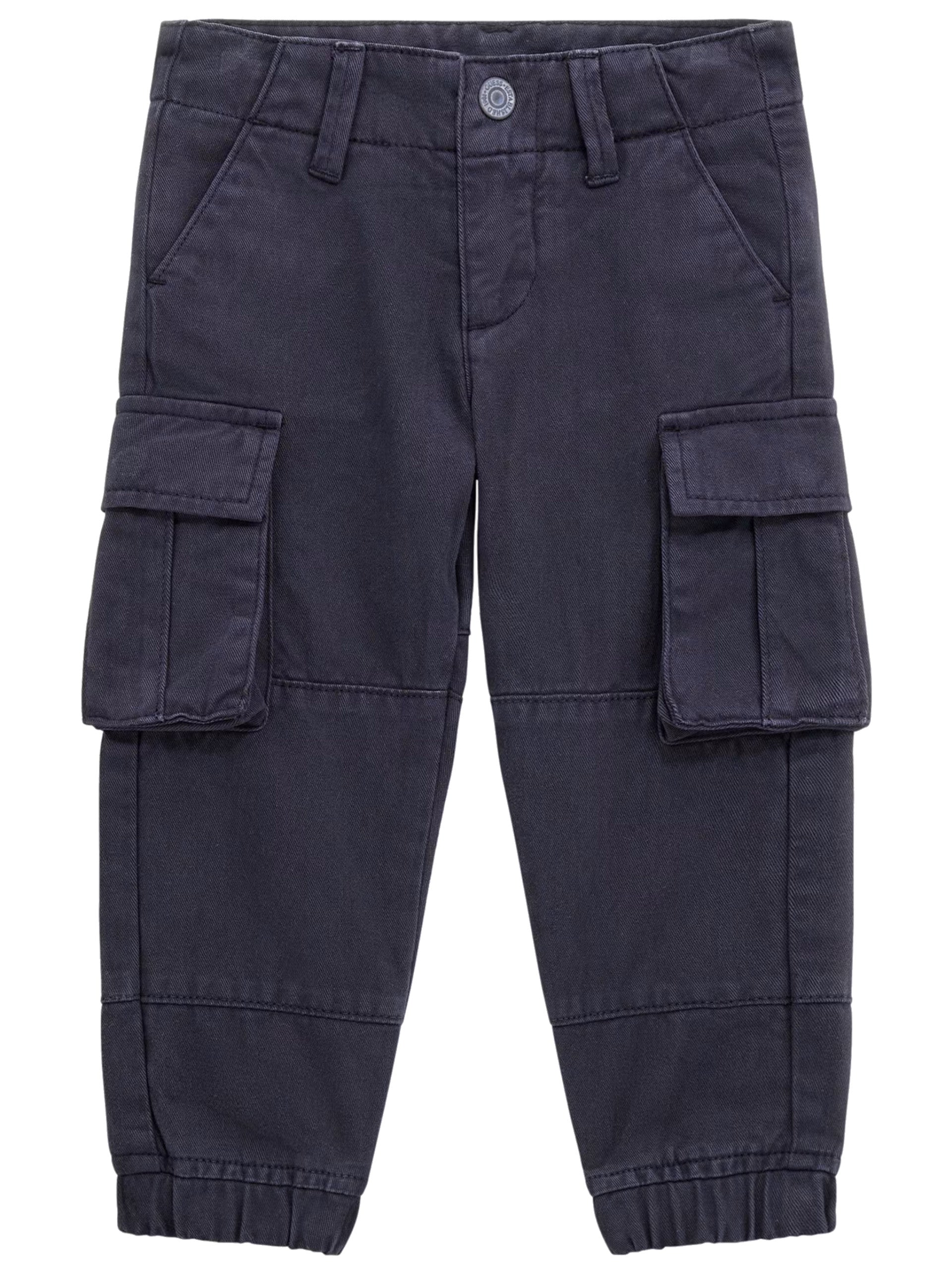 Pantaloni cargo Guess blu da bambino Gabardine con tasconi L3YB04WE1L0, realizzati in 100% puro cotone. Questi cargo Guess blu hanno la chiusura con bottone più zip, due tasche laterali aperte, due tasconi altezza ginocchio con patta, due tasche posteriori e polsini elasticizzati.