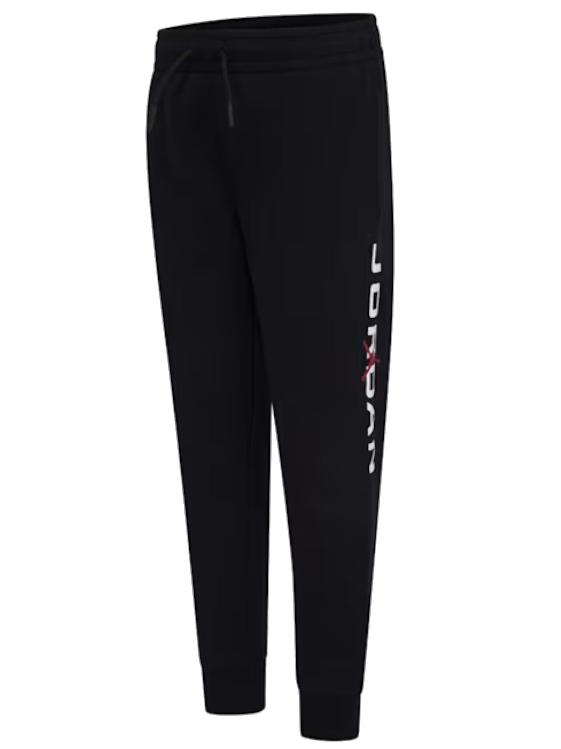 Pantaloni tuta Jordan neri da bambino felpati. Questi pantaloni tuta neri sono realizzati da un tessuto caldo, morbido ed avvolgente al tatto, realizzati un morbido e caldo cotone. Questi pantalo Jordan da bambino hanno la banda elastica in vita con i lacci, due tasche laterali aperte, la maxi scritta Jordan applicata sulla gamba sinistra e il fondo elasticizzato