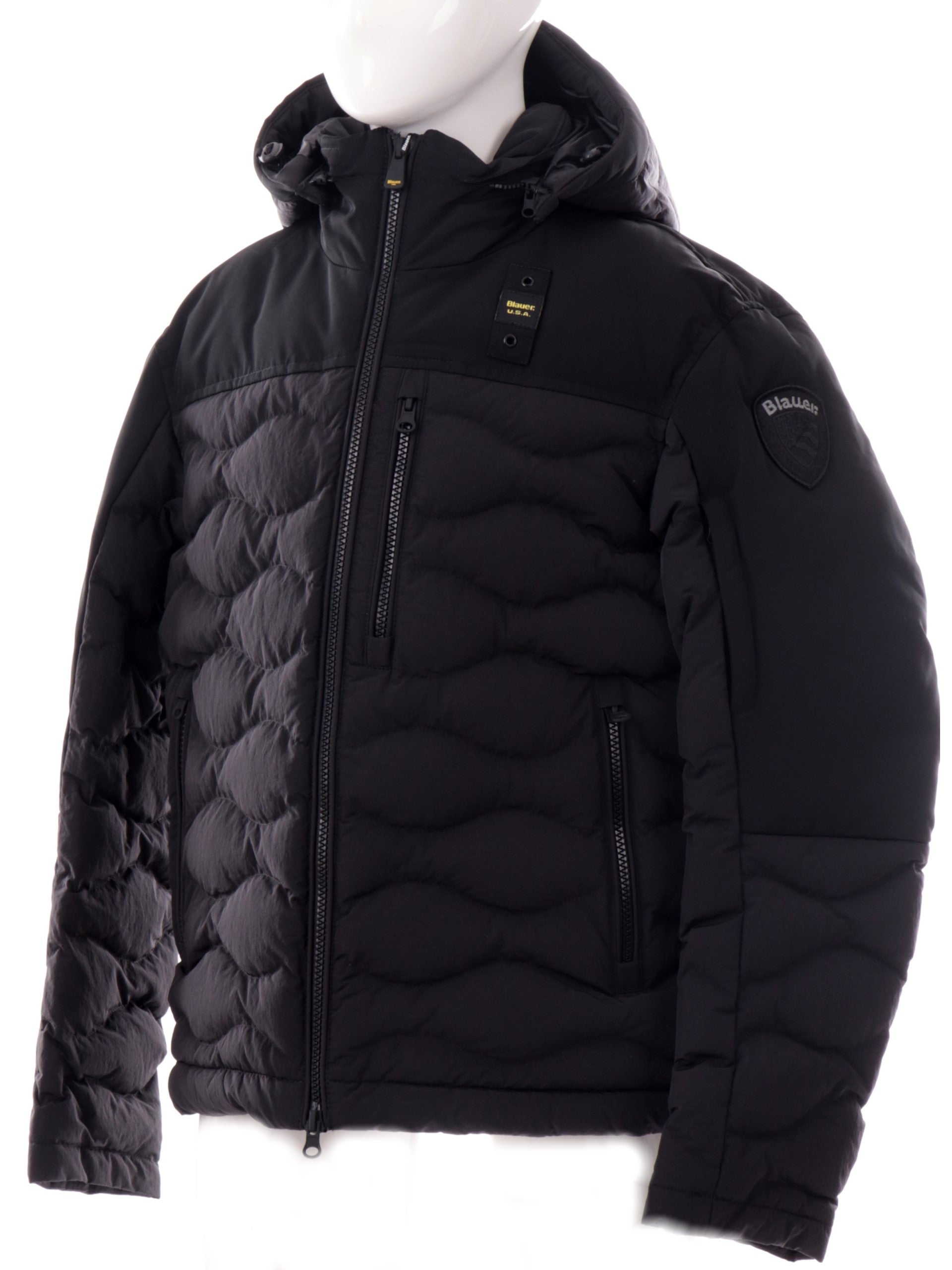 Piumino a onde Blauer nero cappuccio removibile bambino C02451007287999