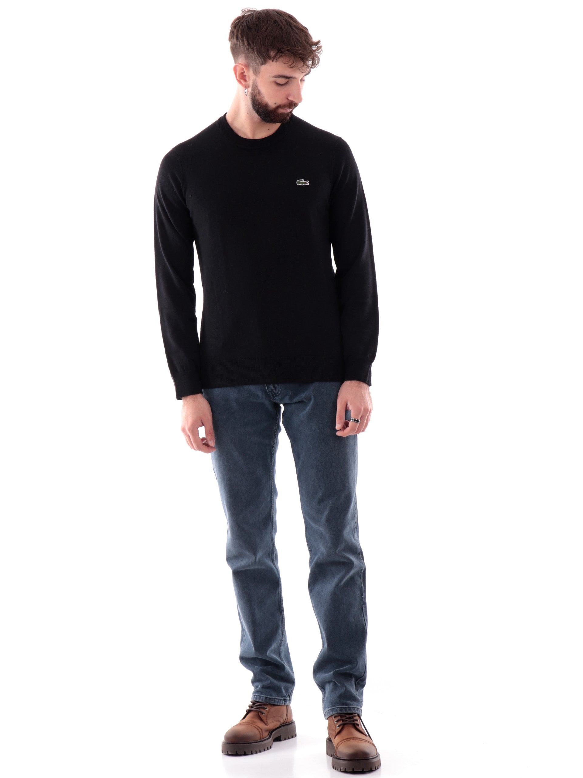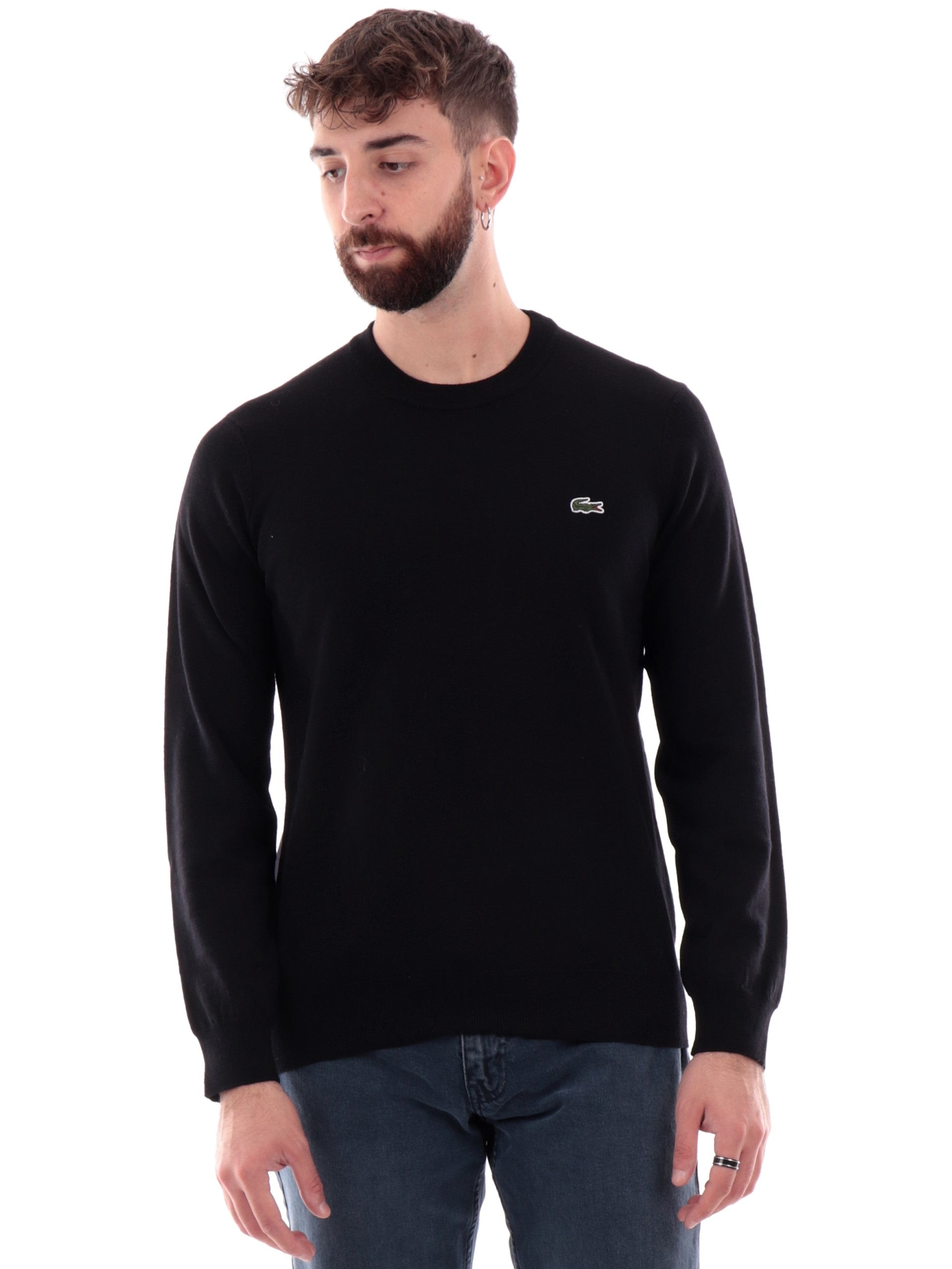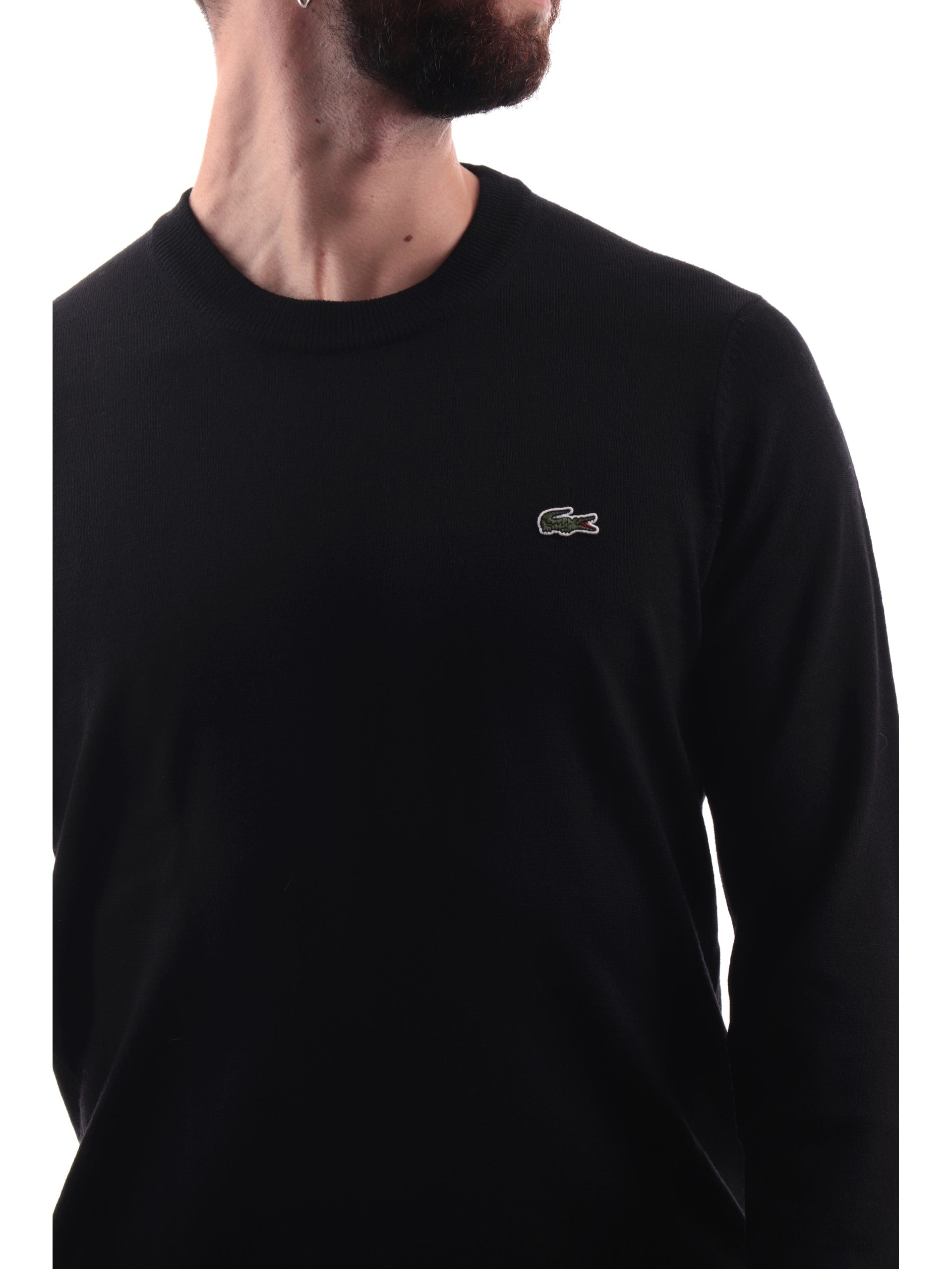Pullover Lacoste nero da uomo in maglia AH3225