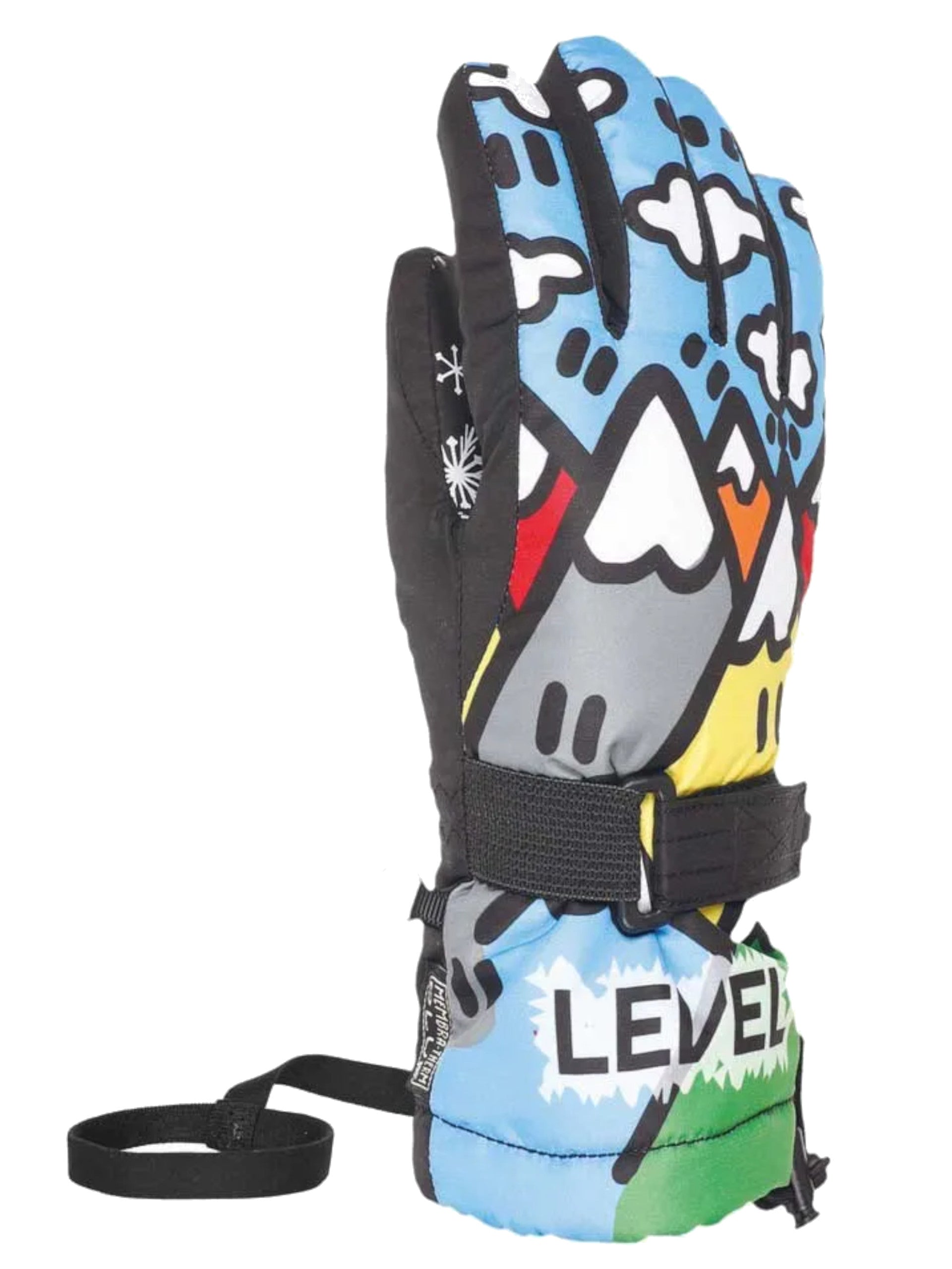 Guanti da sci Level nero da bambino. Questi guanti sono realizzati da starti interni con Membra-therm Plus massimizzano il calore e l'impermeabilità. Questo modello è perfetto per ogni condizione atmosferica e può resistere a temperature bassissime, all'interno di questi guanti troviamo un tessuto felpato e sono caratterizzati da paesaggi di montagna stampati sul dorso della mano, rendendo questiguanti la scelta perfetta