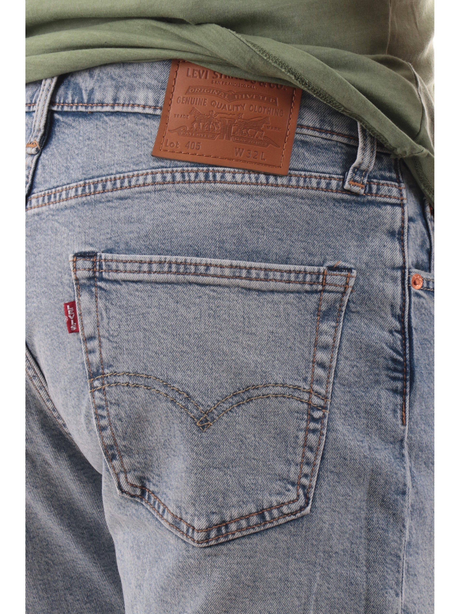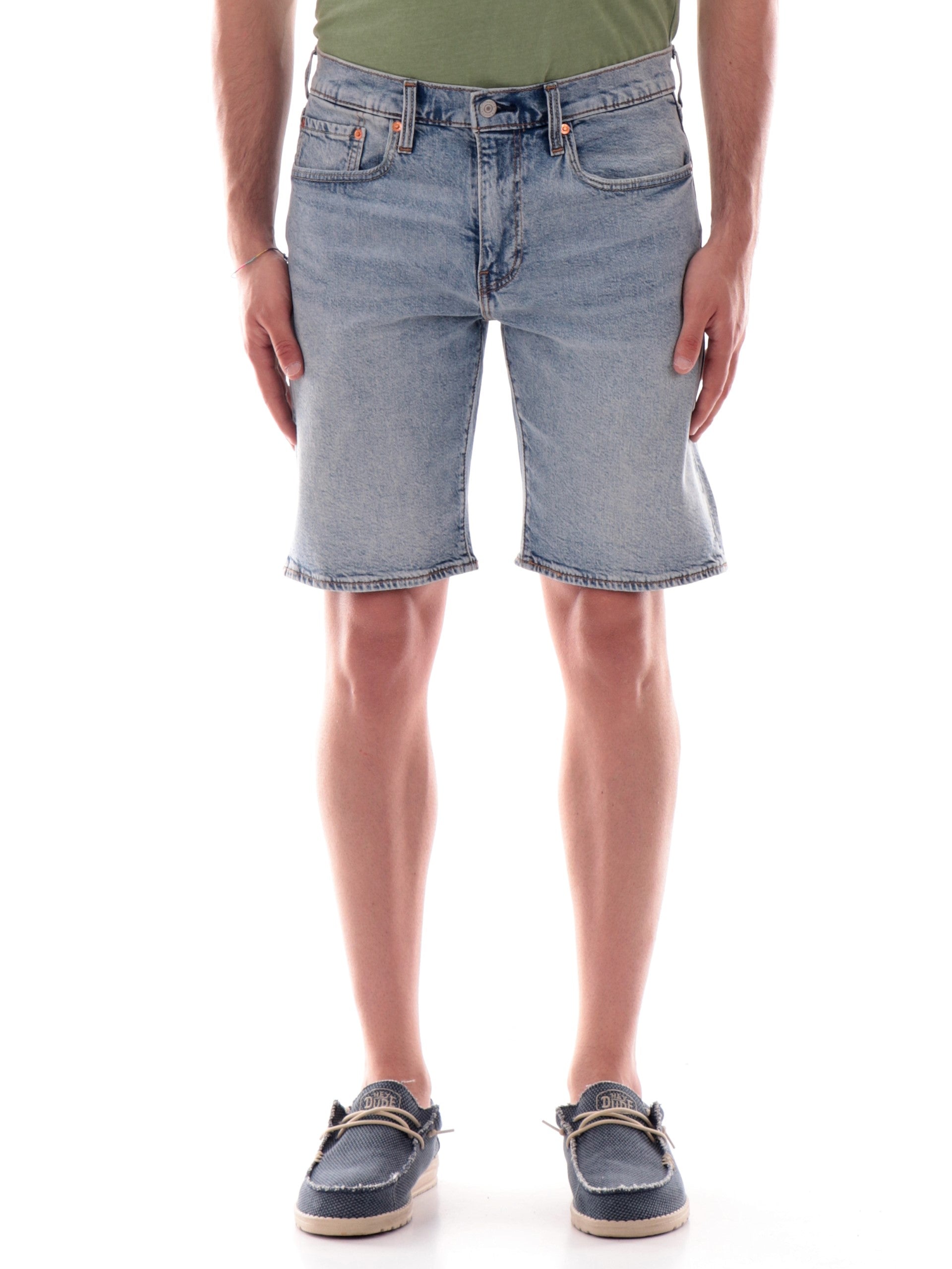 Bermuda jeans Levis 405 Standard blu chiaro da uomo 3986401. Questi bermuda Levi's jeans hanno la chiusura con bottone più zip, il fondo regolare, due tasche laterali aperte sul davanti di cui la destra con taschino e due tasche a filo sul retro.