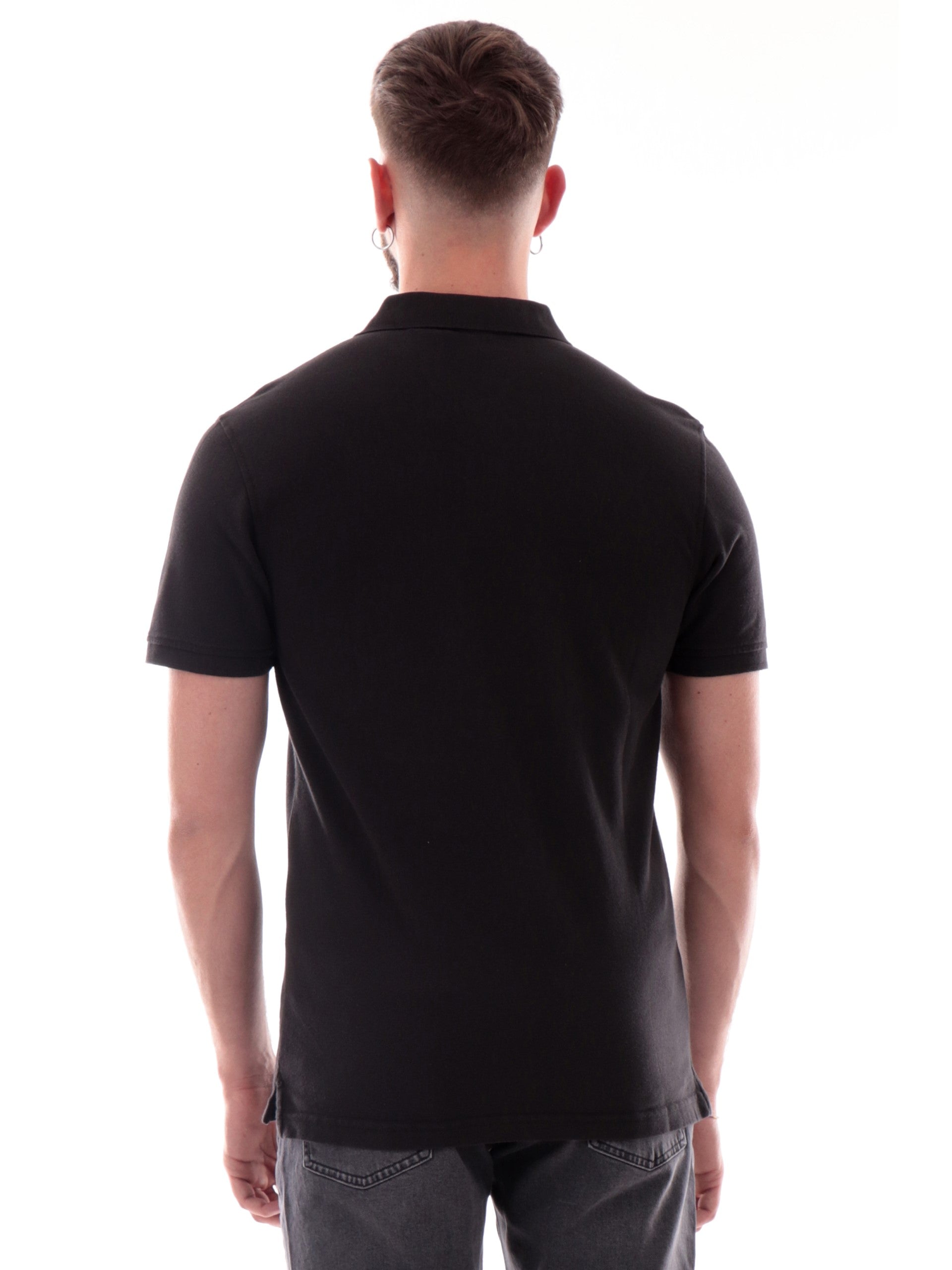 Polo Levis nera da uomo Standard Fit 3588300, realizzata in 100% puro cotone. Questa polo uomo Levis ha il colletto alla francese, la chiusura con bottoni e il patch Levis cucito lato cuore.