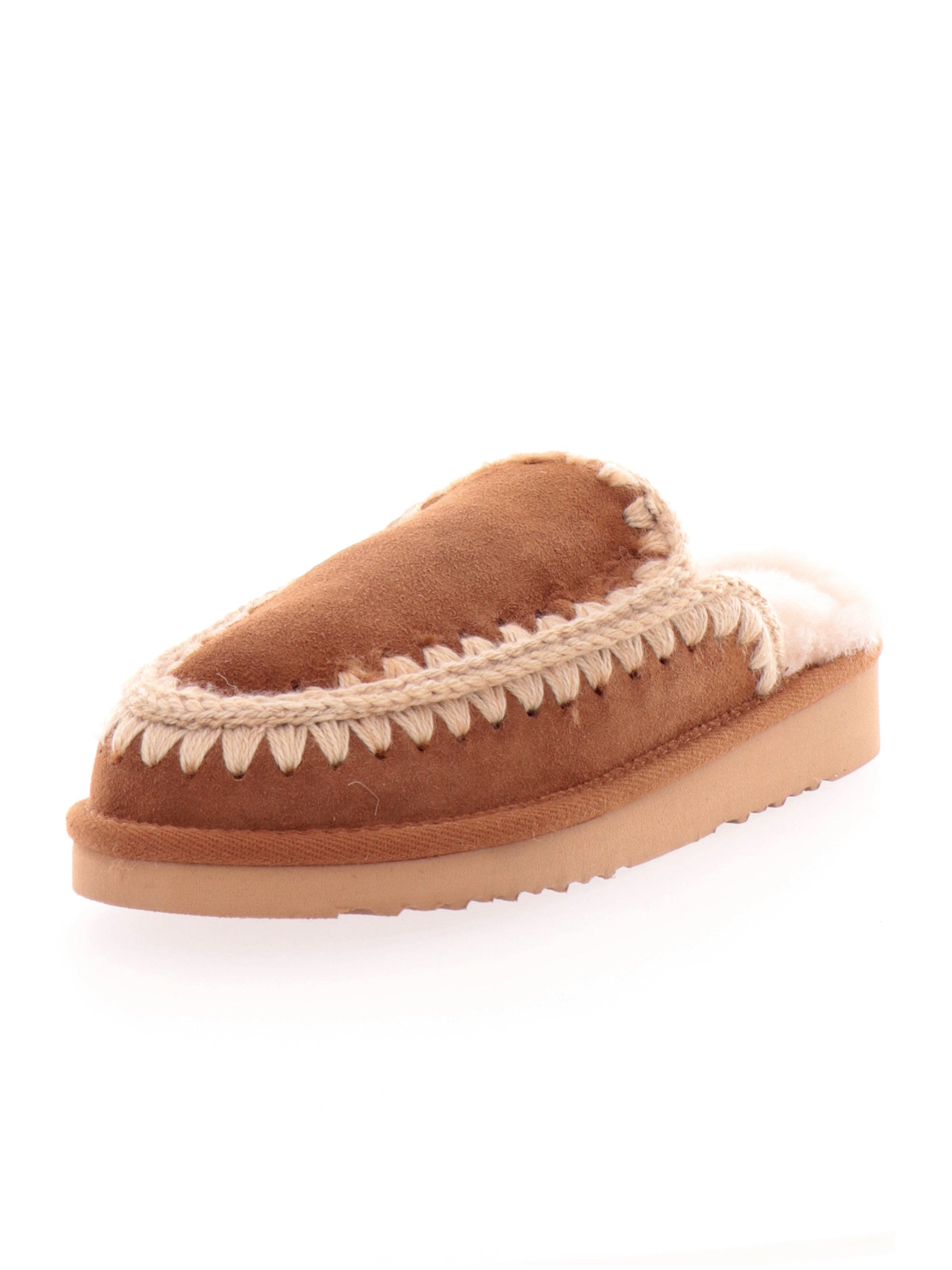 Ciabatte Scarpe Mou donna Eskimo Stitching Clog marroni FW101125. Queste scarpe Mou donna sono caratterizzate da inserti a nodi sul davanti e lana interna. Queste Mou Eskimo Stitching Clog sono le scarpe invernali ciabatte di tendenza che aspettavi.