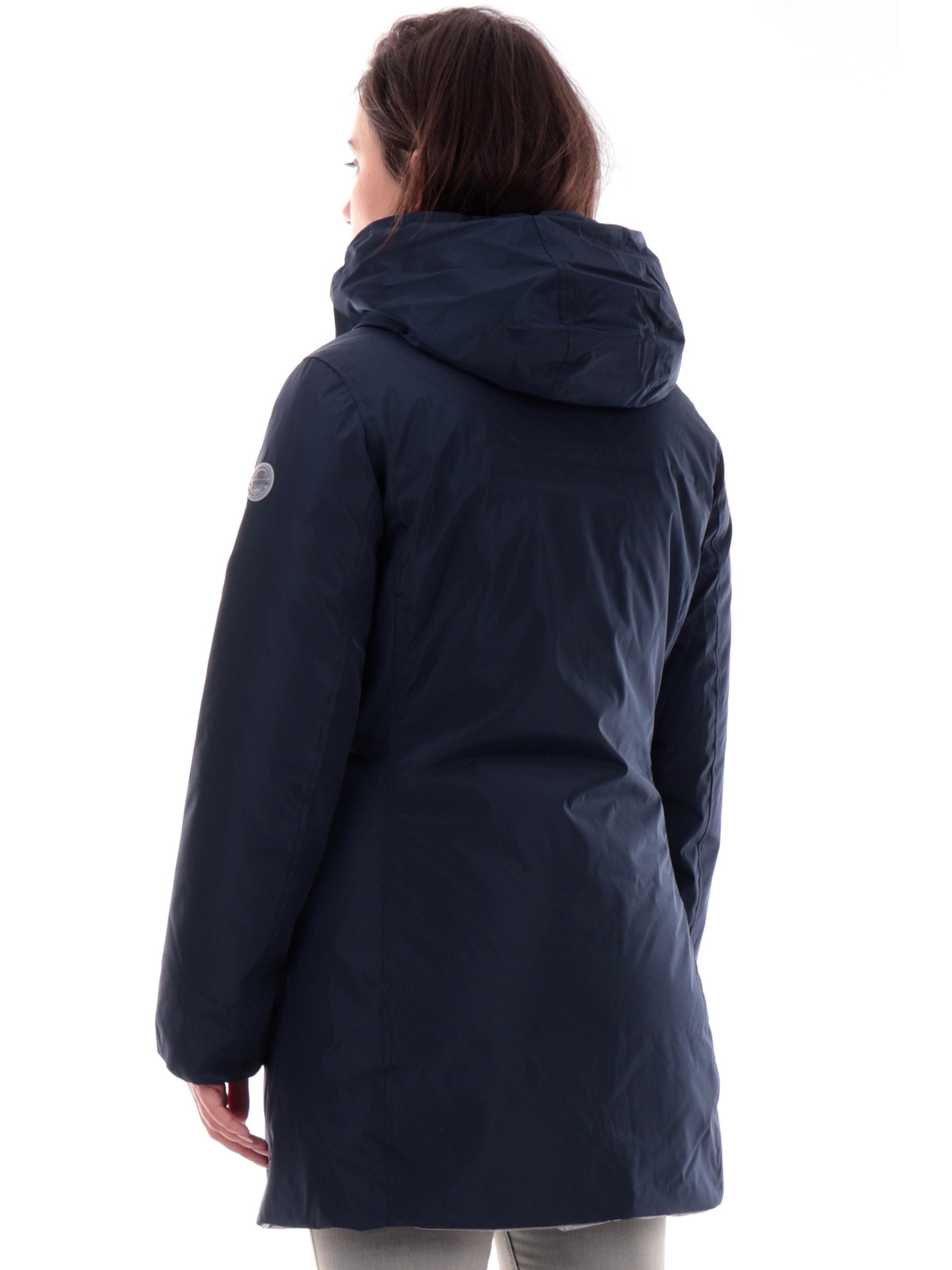 Giacca Museum Daisy reversibile blu e argento da donna JA10NY890, realizzata in tessuto esterno trapuntato da un alto e softshell dall'altro, ha un'allacciatura centrale con zip cromata doppio cursore, tasche laterali con cerniera a scomparsa e polsini elastici. Capospalla elasticizzato, dal taglio sagomato e dalla vestibilità regolare, ha un'imbottitura in morbida piuma che dona una piacevole edimmediata sensazione di calore; la giacca Daisy coniuga il massimo del comfort a un design accattivante.