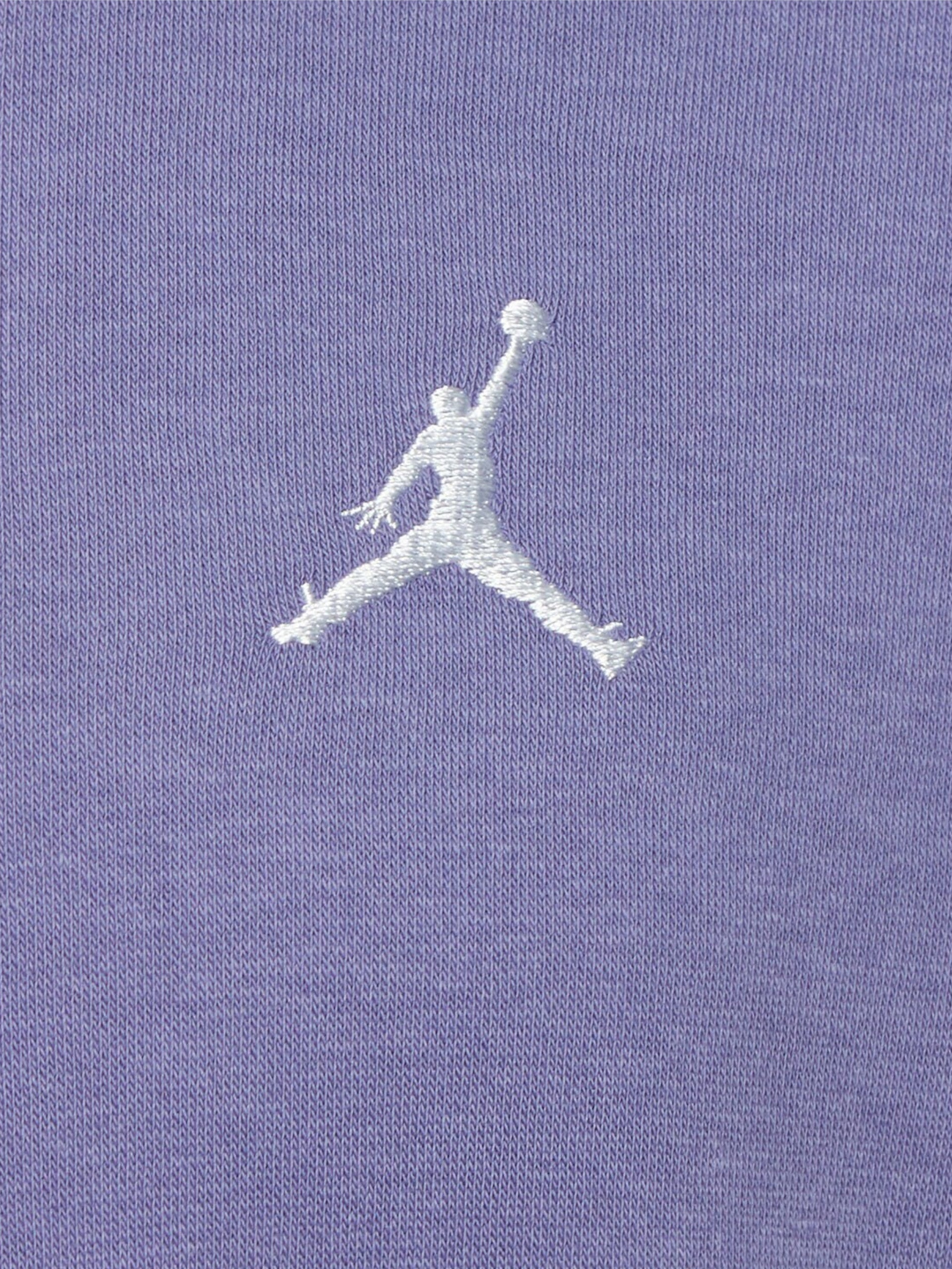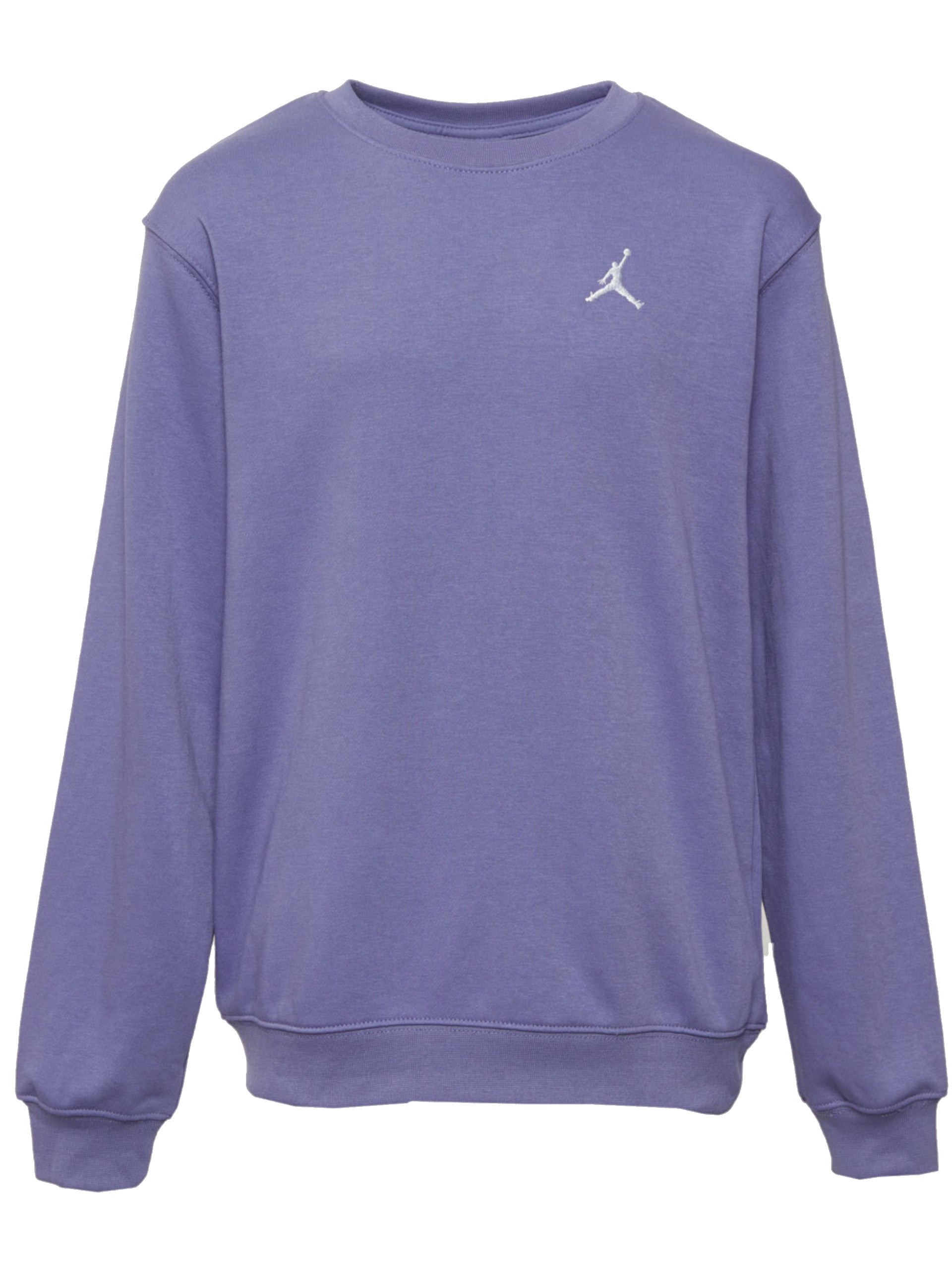 Felpa Jordan viola da bambina cotone garzato 45F122. Questa felpa bambina Jordan viola girocollo ha le maniche lunghe, il logo del brand ricamato lato cuore, polsini e fondo elasticizzati.