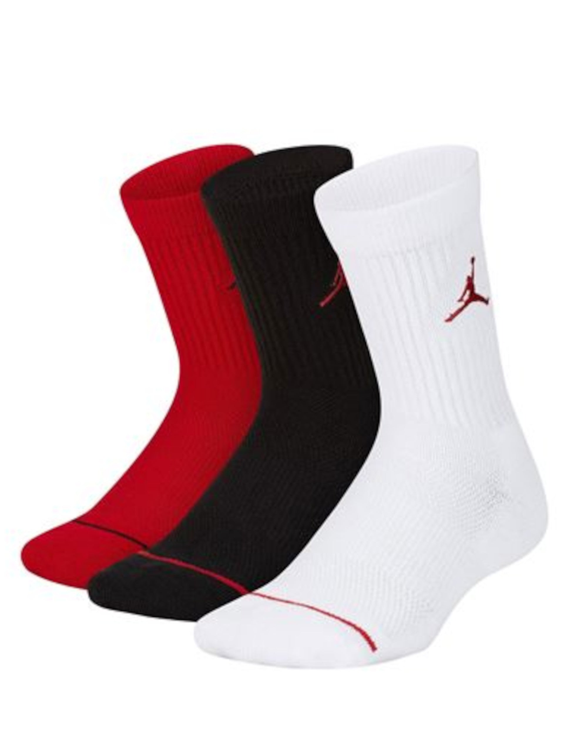 Set calzini Nike Jordan da bambino WJ0010. I calzini presenti sono rossi, bianchi e neri tutti caratterizzati dall'iconico logo jumpman a contrasto.