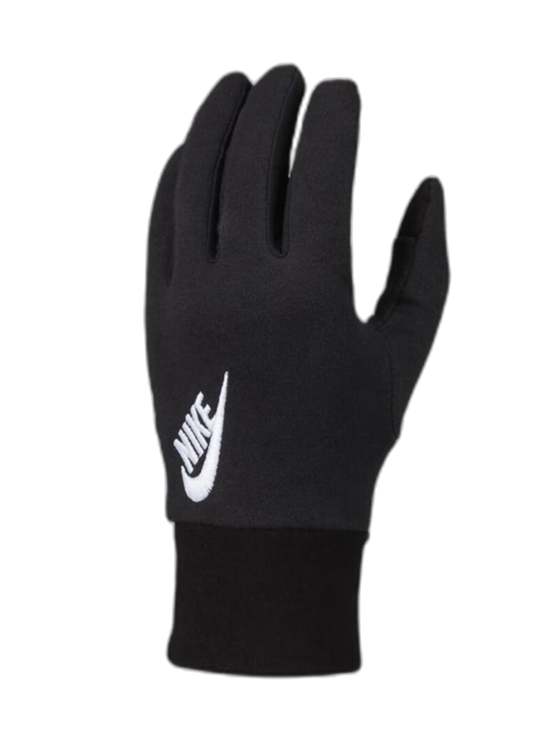 Guanti Nike neri MN Club Fleece Glove interno felpato N1007163, realizzati in cotone. Questi guanti neri Nike hanno il polsino elasticizzato, il logo del brand ricamato a contrasto colore e sono compatibili con tutti gli smartphone.