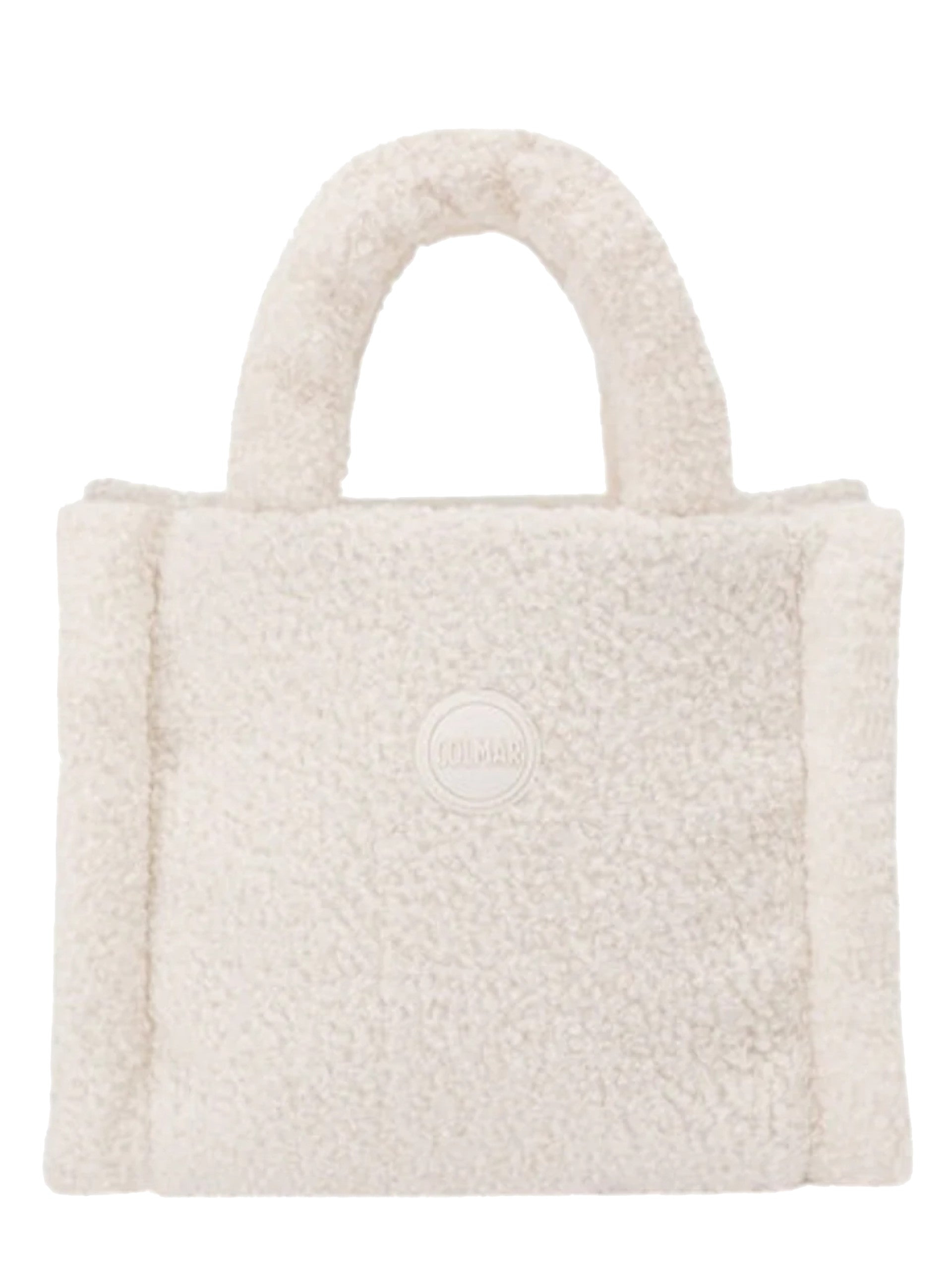 Borsa Colmar bianca ecoteddy da donna. Questa borsa Colmar ha il manico fisso per il trasporto a mano, la chiusura con bottone automatico e il logo Colmar sul davanti. All'interno di questa borsa Colmar troviamo un unico grande scomparto con una tasca aperta