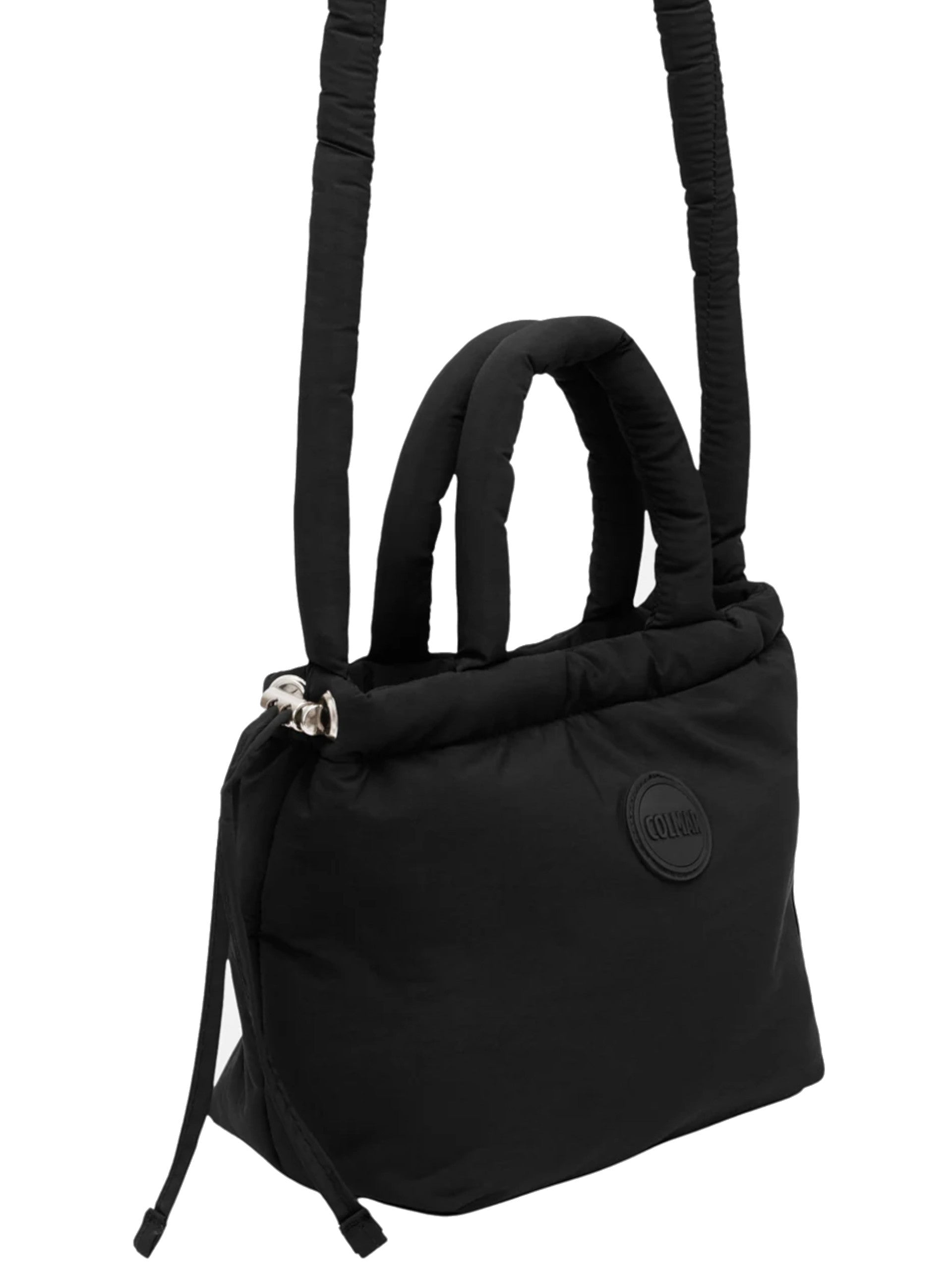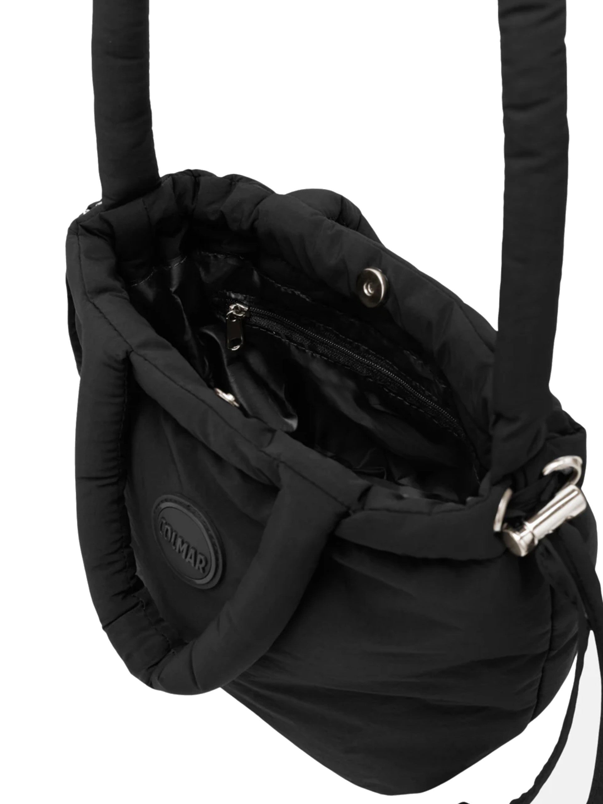 Borsa Colmar nera con tracolla realizzata in tessuto. Questa borsa ha la tracolla, il manico fisso per il trasporto a mano, la chiusura con bottone automatico, le coulisse regolabili e il logo Colmarsul davanti. All'interno di questa tracolla Colmar troviamo un unico grande scomparto con una tasca interna con zip