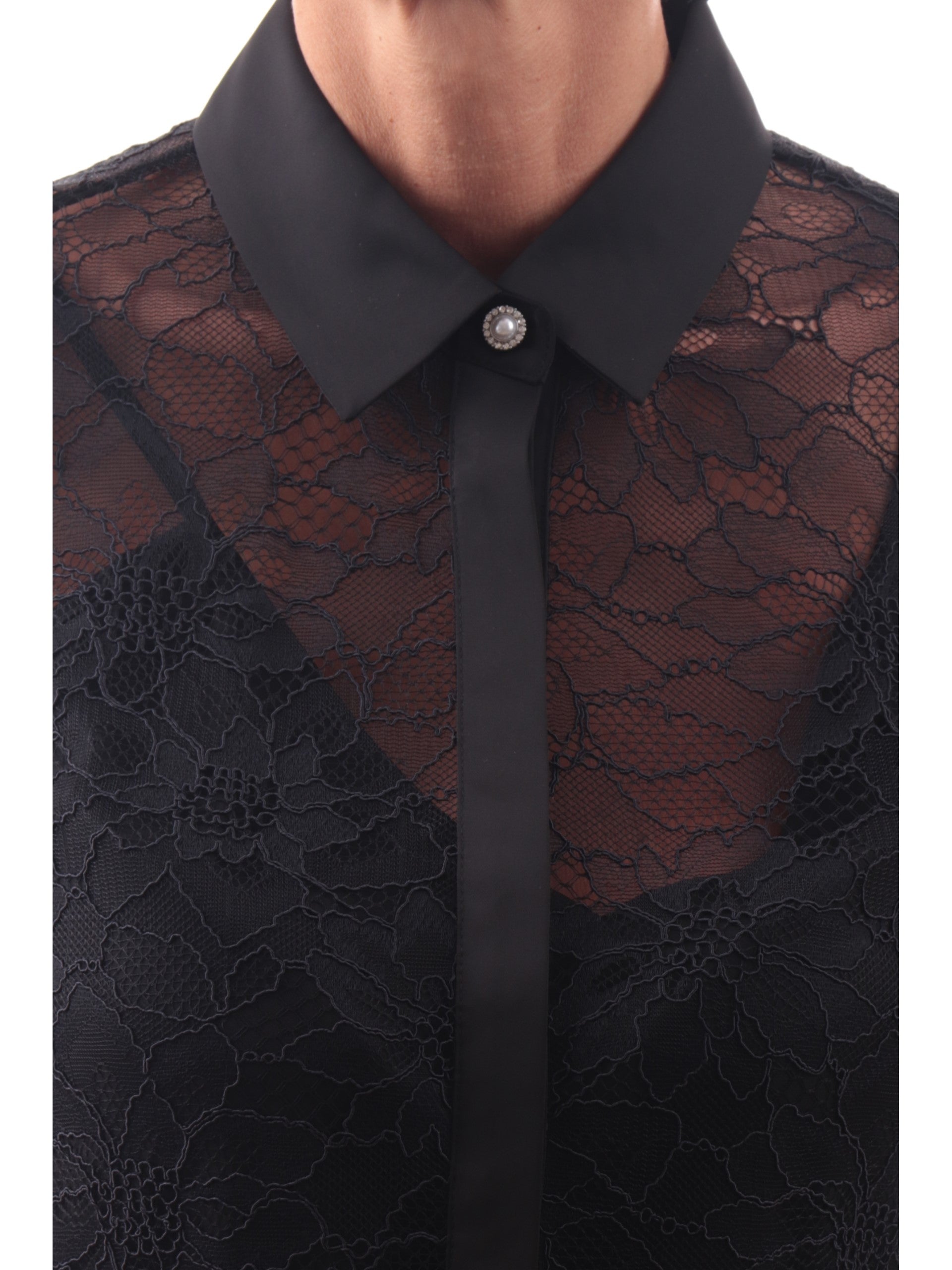 Camicia Guess Donna pizzo nero e bottone gioiello Antoinette Lace W5YH58WHDY0-JBLK