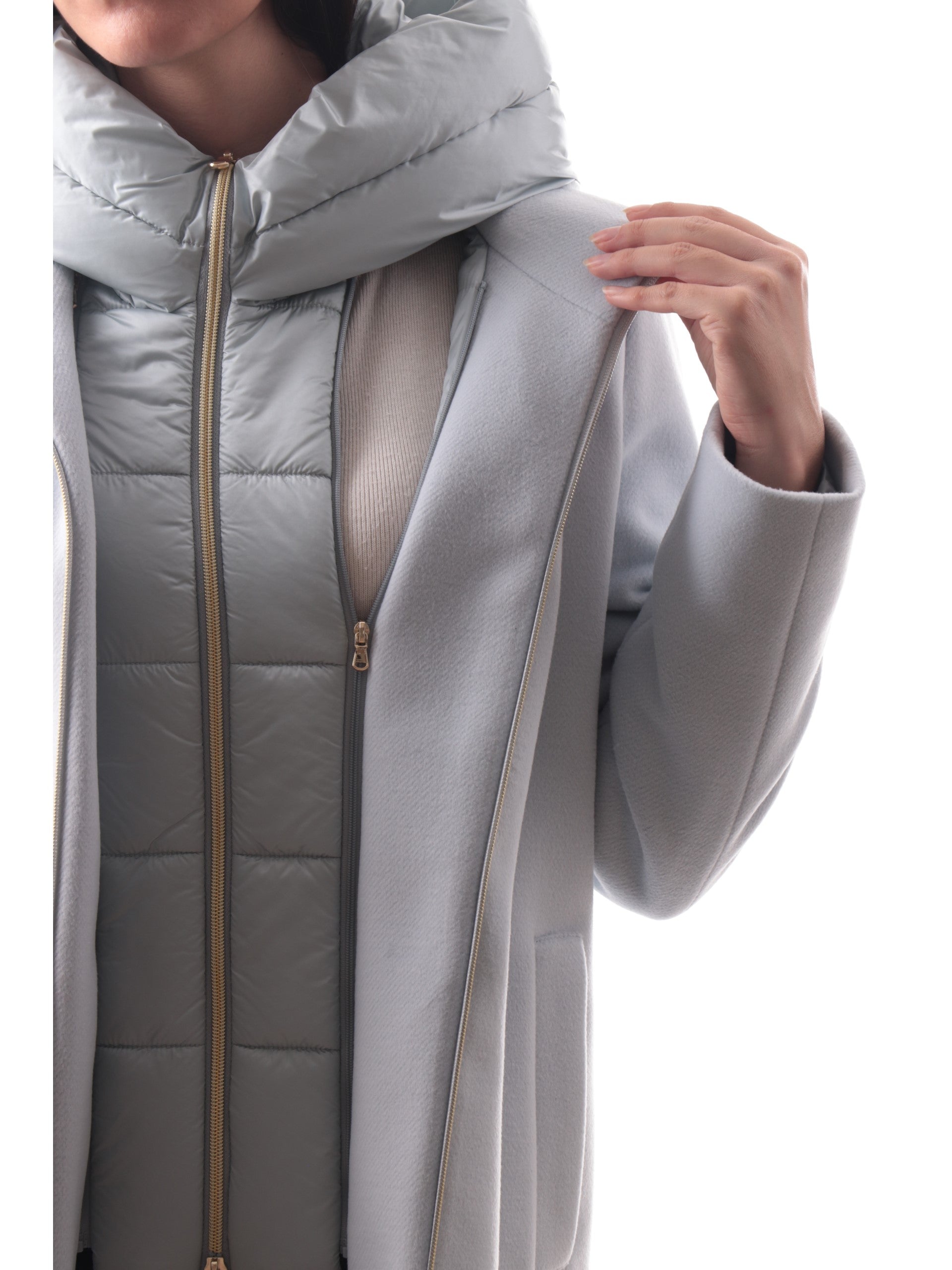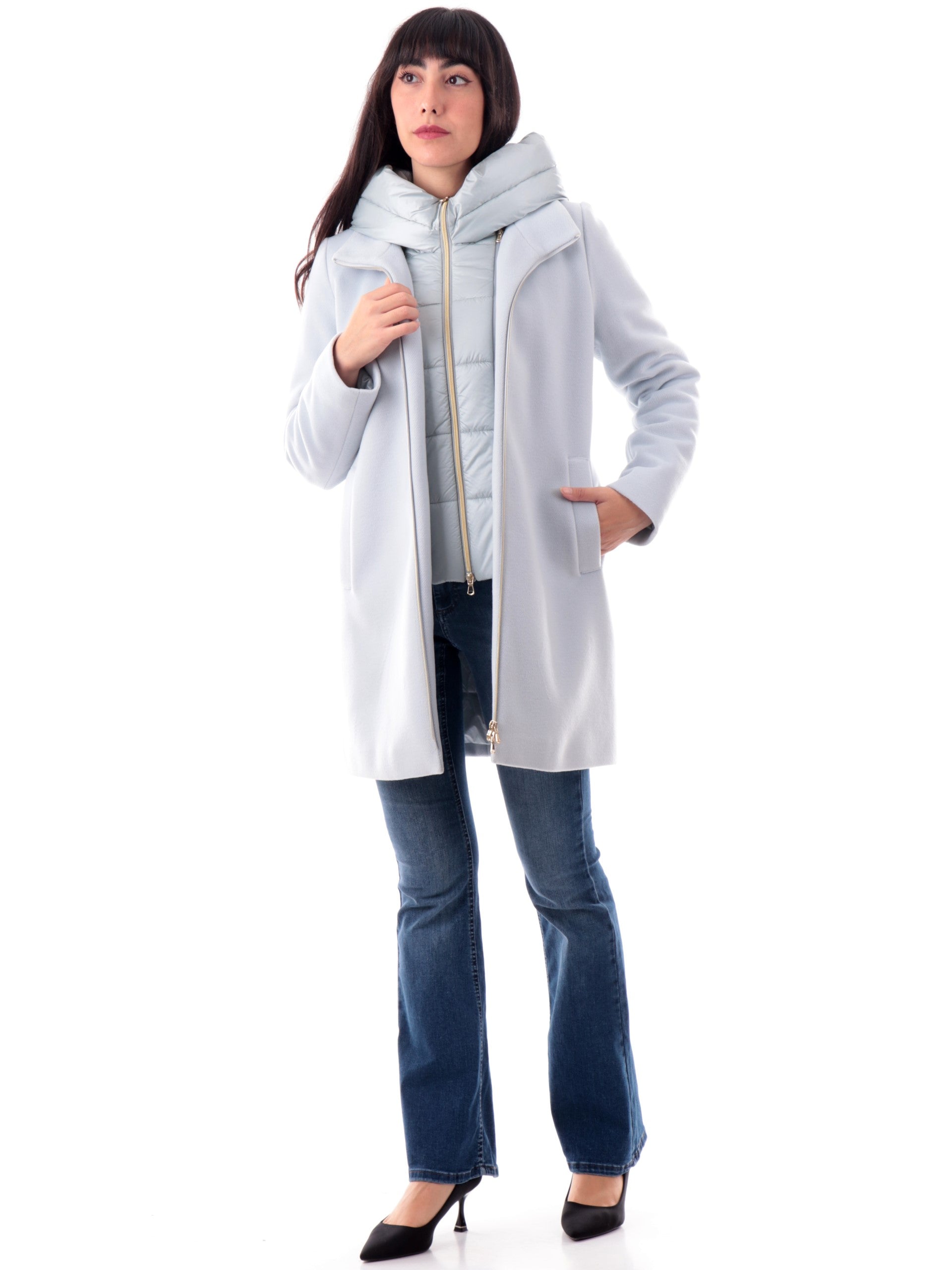 Giacca lunga Emme Marella celeste da donna con cappuccio e gilet interno rimovibile BACIO