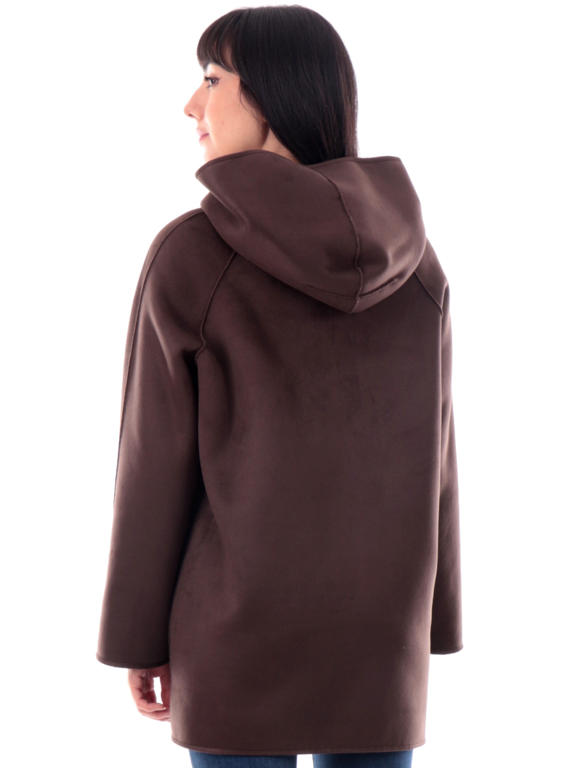 Cappotto Teddy EMME MARELLA marrone da donna reversibile. Questo cappotto Marella marrone reversibile è caratterizzato da cappuccio fisso, due tasche laterali e la chiusura con bottoni. Questa giaccaMarella reversibile e versatile è perfetta per qualsiasi outfit, da un lato marrone in tessuto teddy e dall'altro marrone in tessuto liscio.