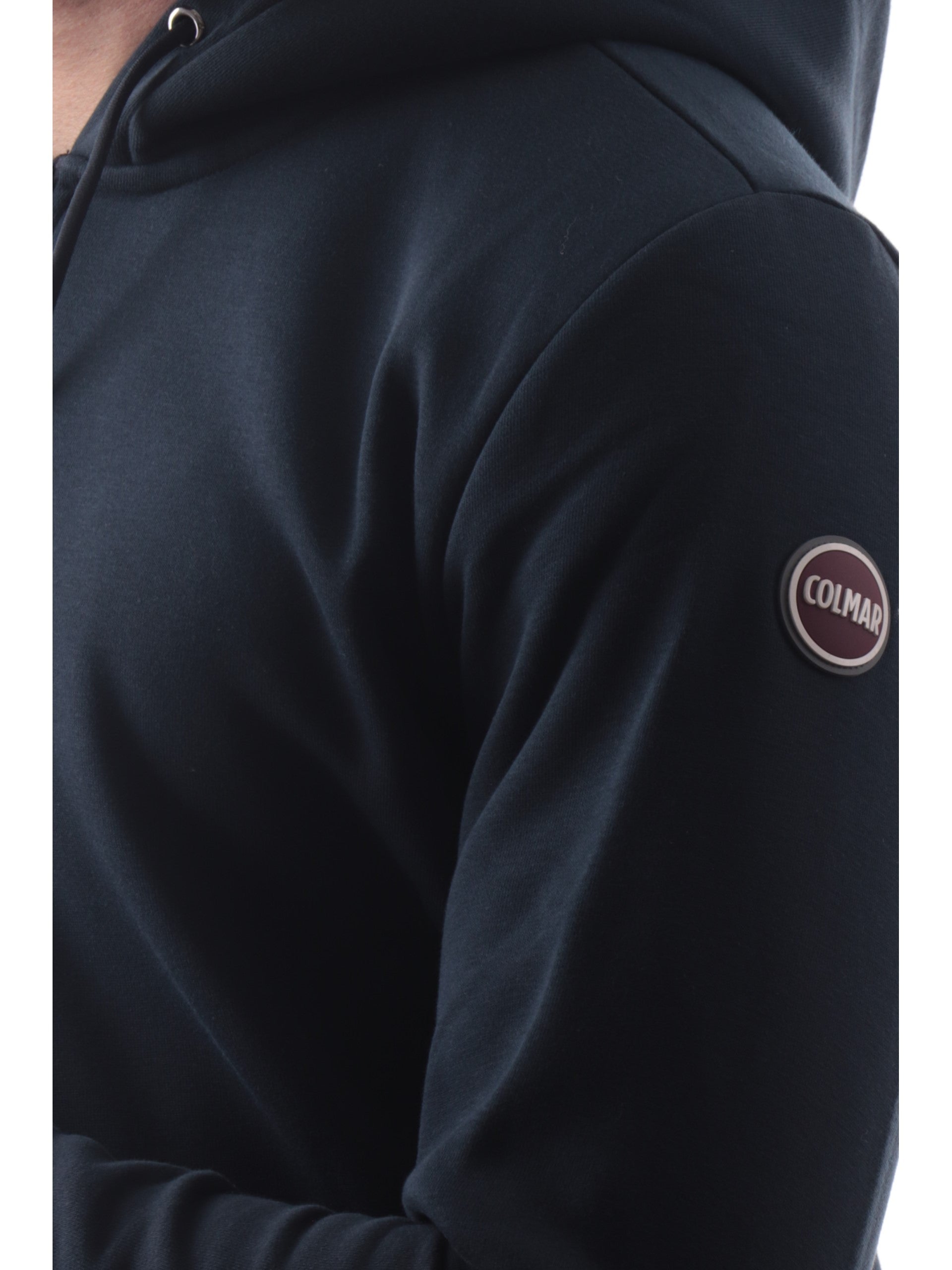 Felpa Colmar blu full zip con cappuccio da uomo patch Colmar gommato 6249R1WX, realizzata in cotone. Questa felpa Colmar uomo ha il cappuccio regolabile con laccetti, la chiusura full zip, le manichelunghe, il patch Colmar gommato applicato sul lato sinistro, due tasche laterali aperte, polsini e fondo elasticizzati.